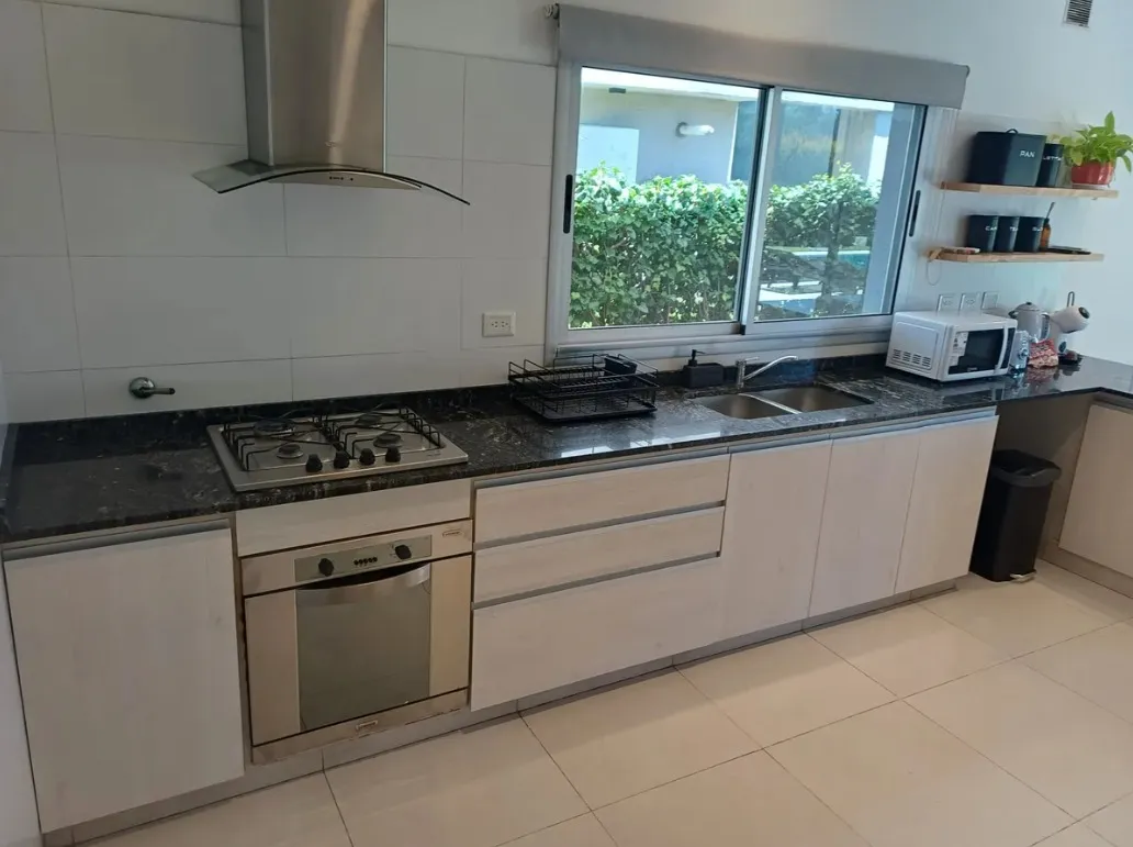 Дом на участке площадью около 300 m² в частном закрытом районе La Comarca, General Pacheco (Tigre), с выходом к озеру и прямым видом. В доме 8 помещений: на первом этаже объединённая гостиная-столовая с окнами от пола до потолка со стеклопакетами и видом на озеро, кухня с обеденной зоной, гостевой туалет, кабинет и/или family, зона для обслуживающего персонала с душем, прачечная и кладовая. Также предусмотрены крытая парковка на 3 автомобиля и открытое место ещё для 2. На втором этаже 4 спальни