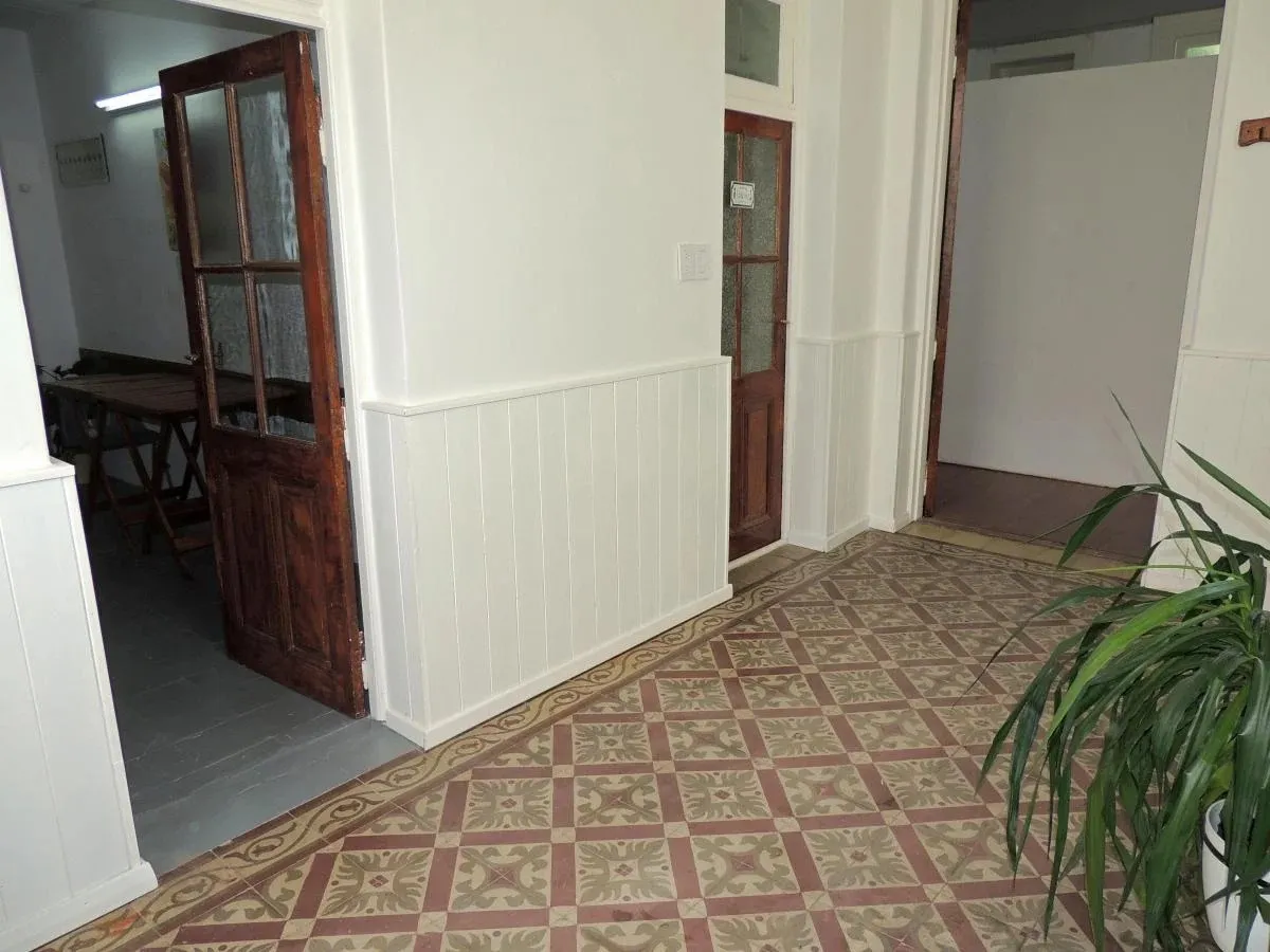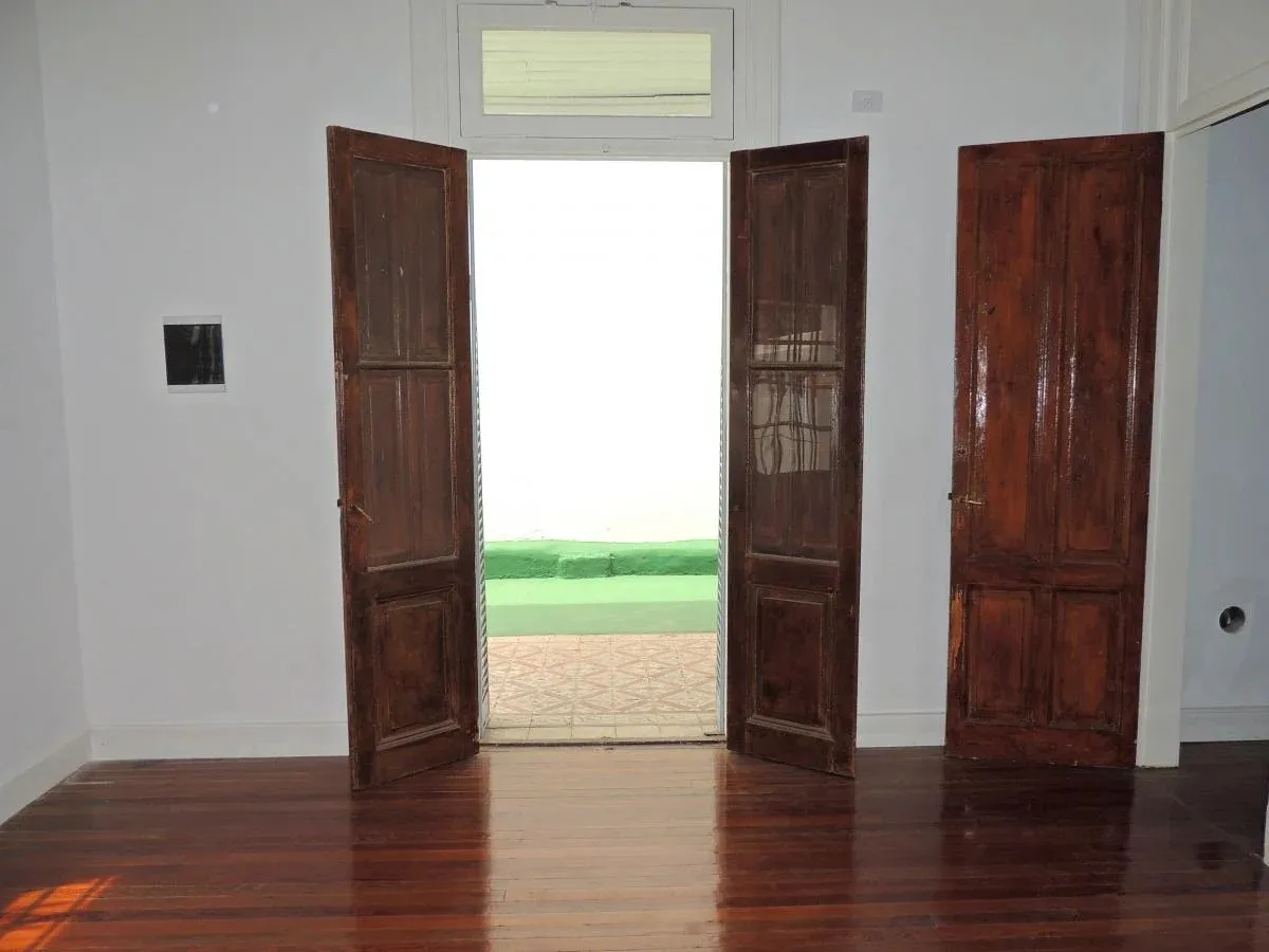 Квартира площадью 469 m², после ремонта. Отдельный вход с железной дверью для пешеходов и въезд через автоматические ворота. На участке предусмотрено парковочное место для двух автомобилей и передний двор 5 x 5 m. Полунакрытая галерея 9,40 x 1,80 m соединяет помещения с гостиной-столовой; сбоку есть открытый проход к задней части с решётчатой дверью, обеспечивающей отдельное перемещение. Спальни по 4,50 x 4,25 m с паркетными полами, окнами на двор, металлическими жалюзи и газовой системой отопле