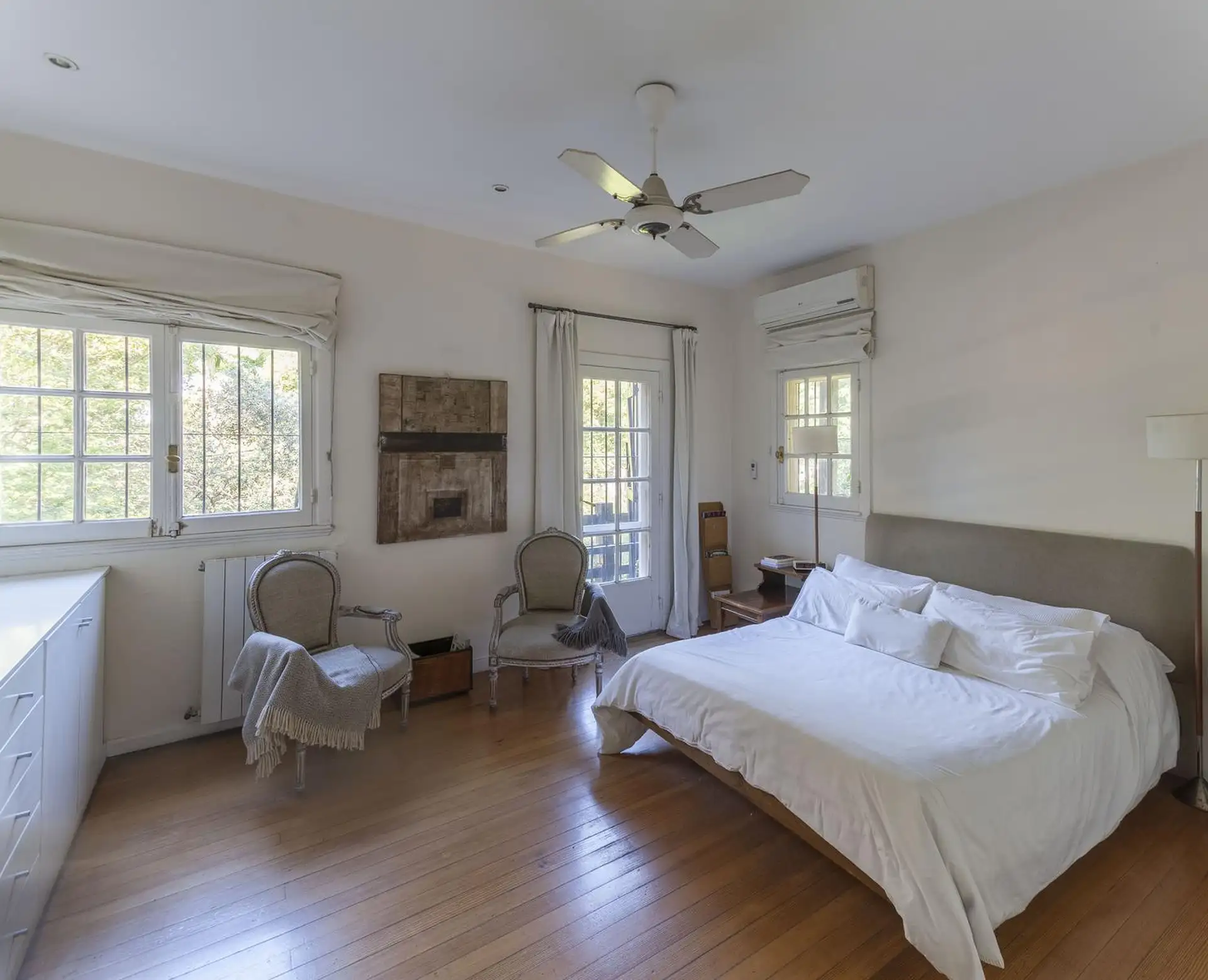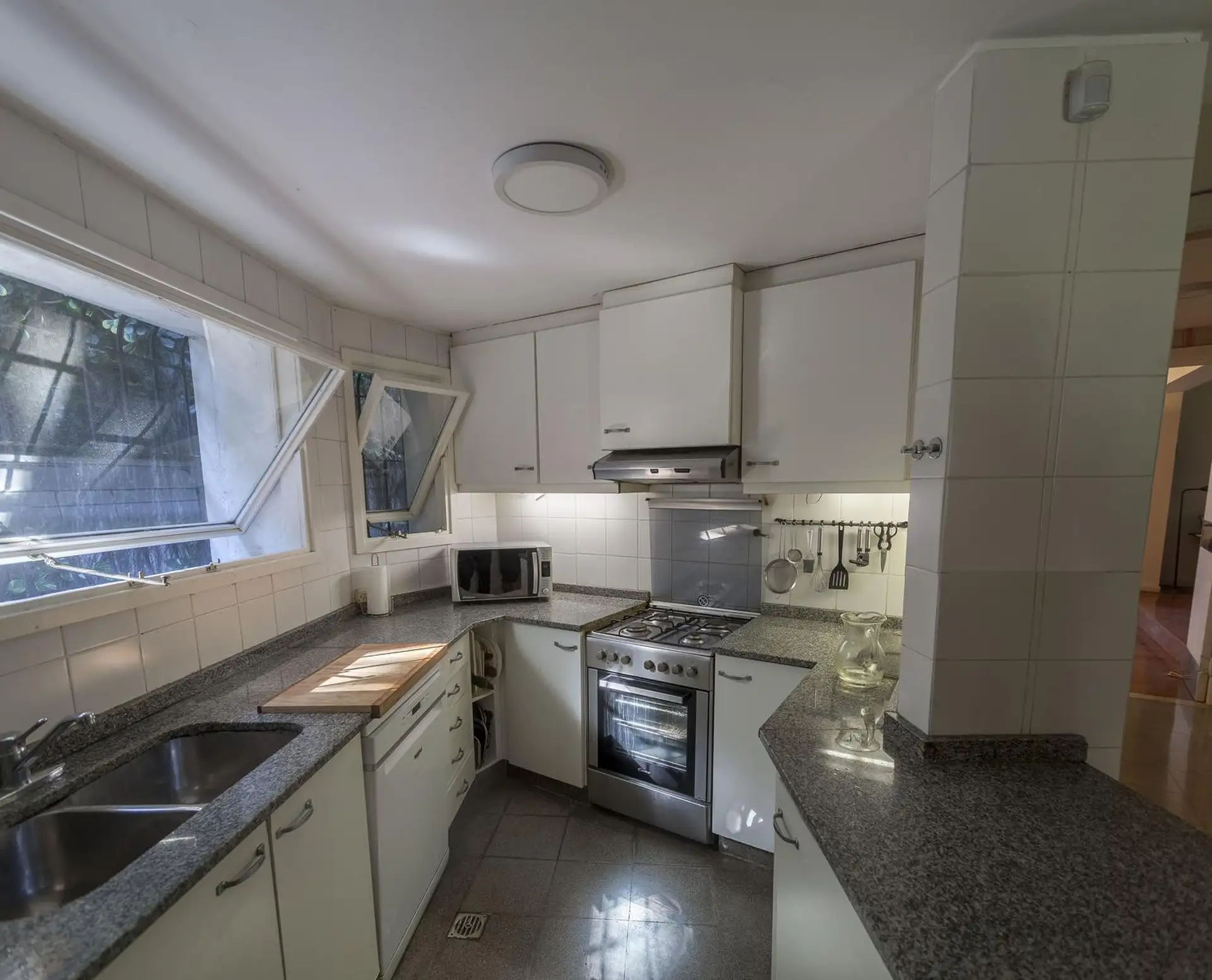 Дом в аренду в La Lucila (Vicente López), 4 спальни. Площадь 300 m² крытых на участке 600 m², двухэтажный. С 1 августа 2026 года; возможно начало на несколько дней раньше. Дом с мебелью и полностью оборудован (вариант аренды без мебели — по запросу). На первом этаже: приёмный холл, гостевой туалет, гостиная с камином, столовая, кухня с обеденной зоной, кабинет, отдельный блок с отдельным входом из сада или из дома с отдельной ванной комнатой, постирочная, служебный санузел, сад с бассейном и зон