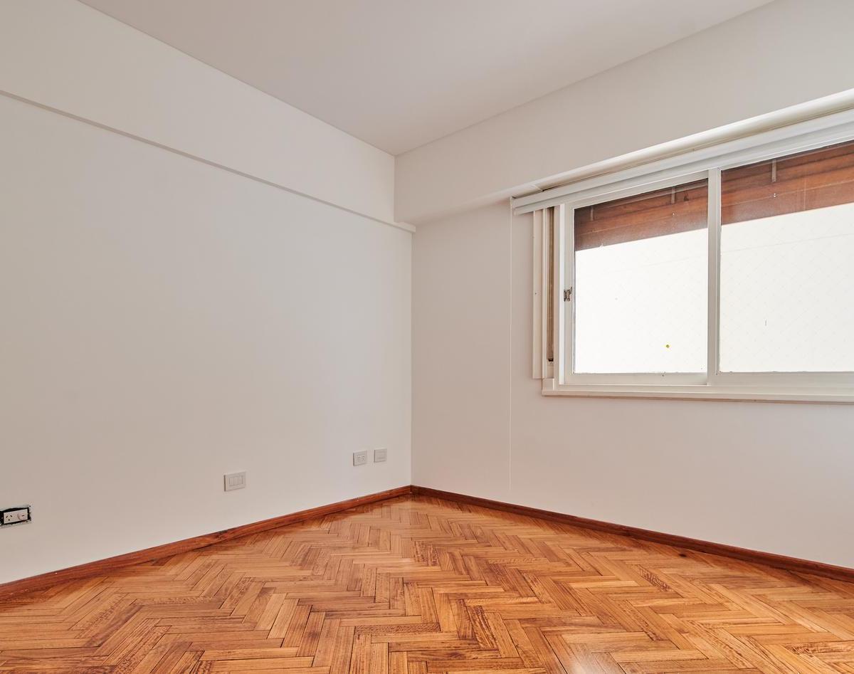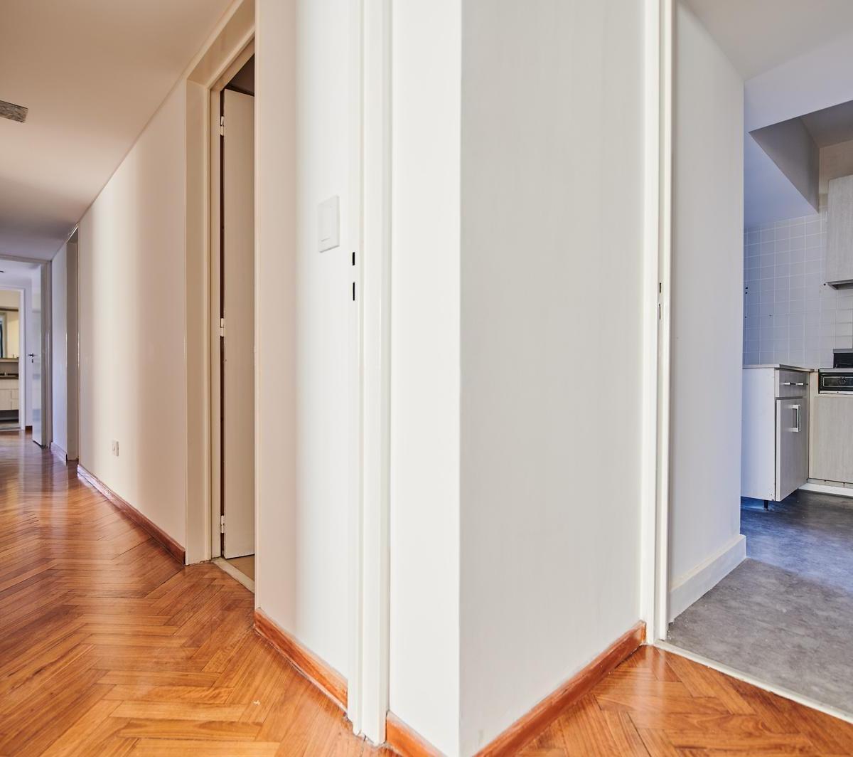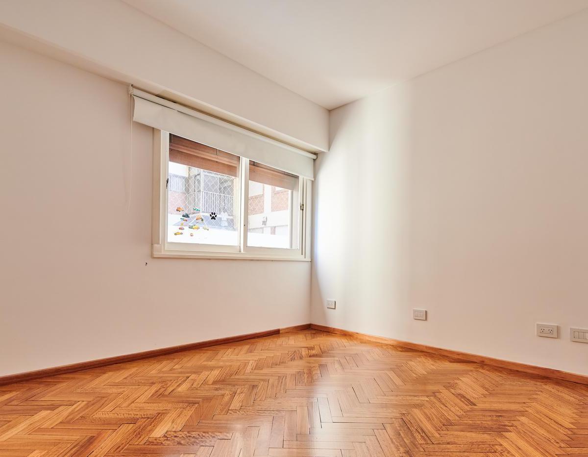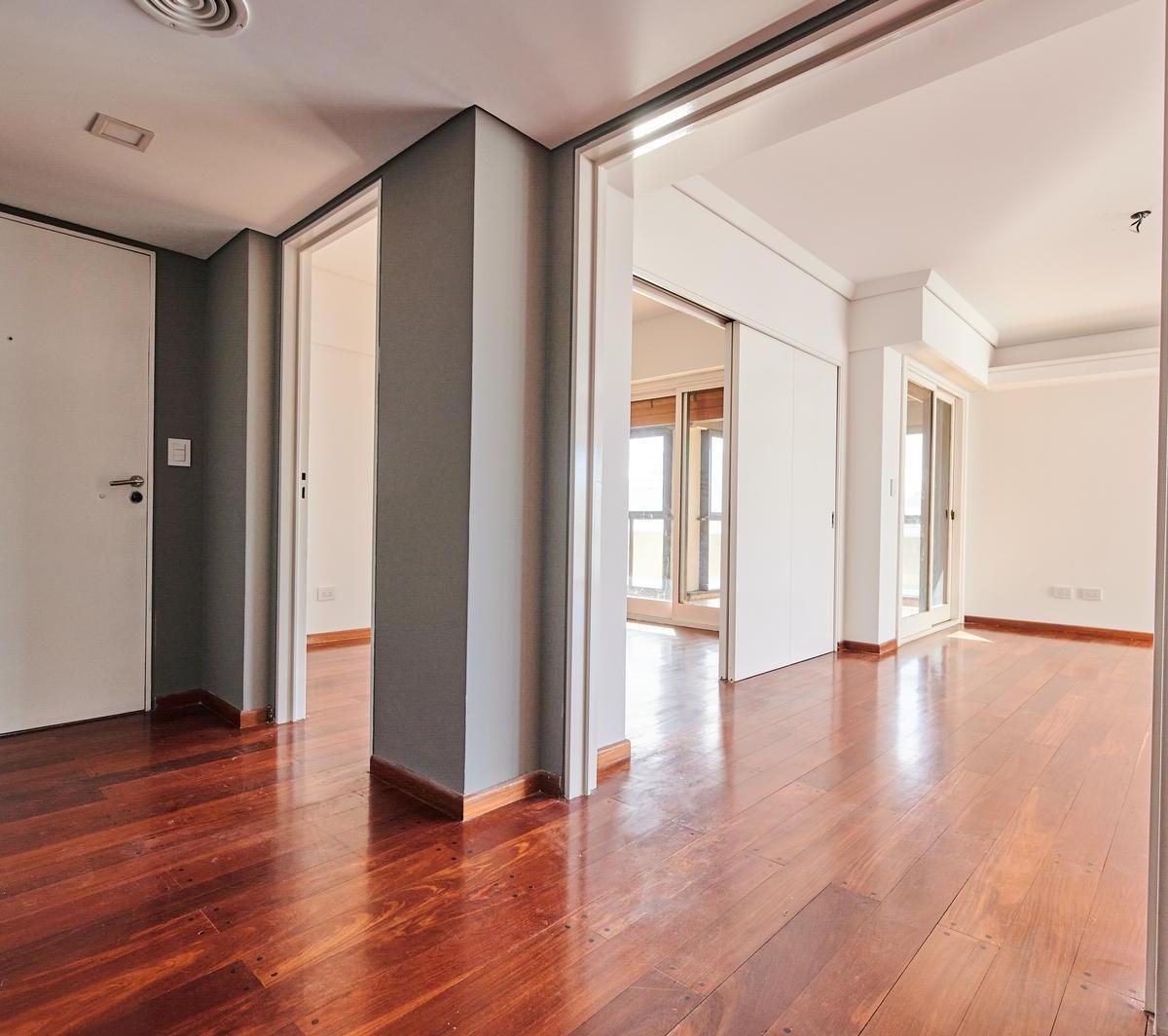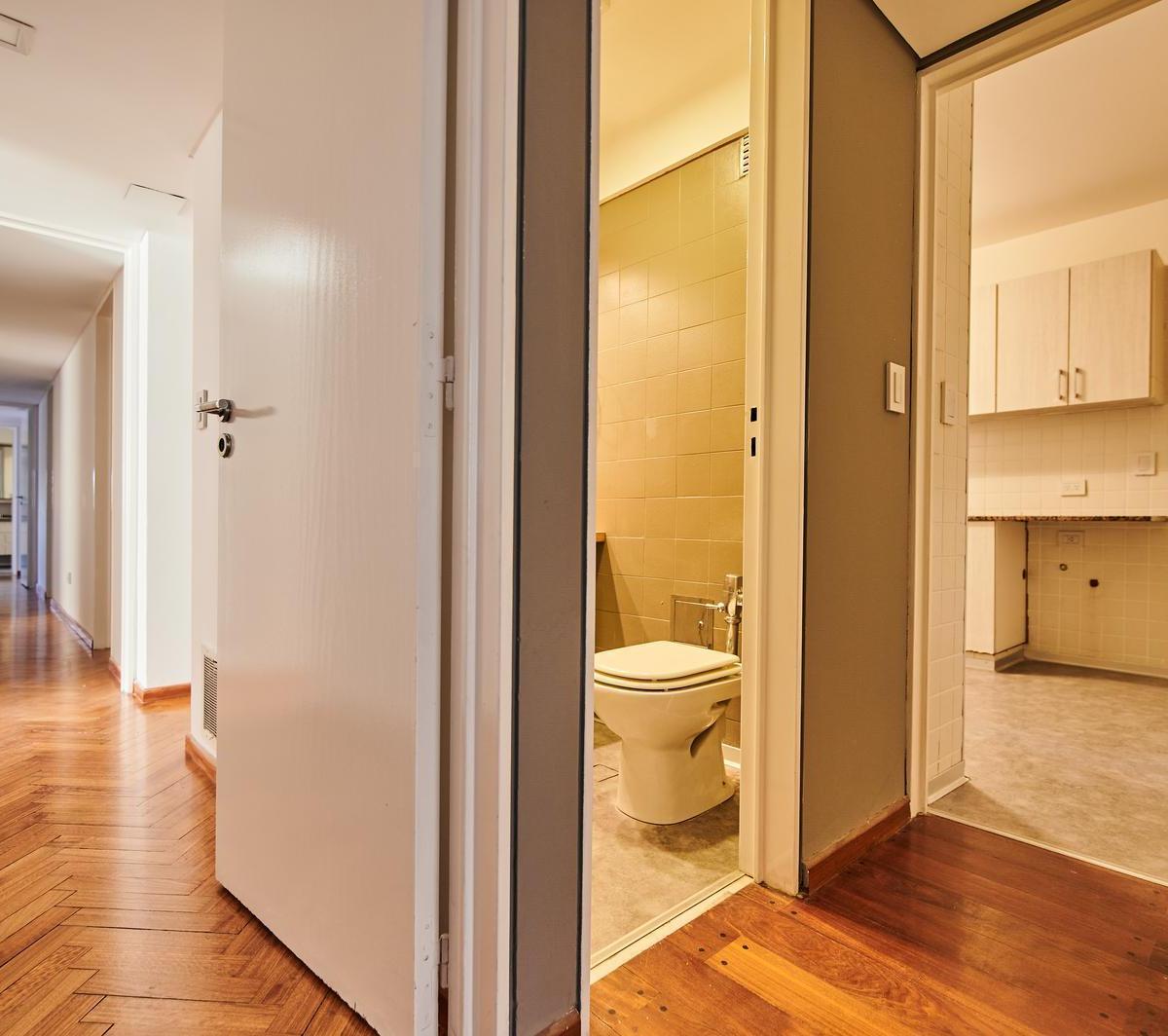 Полуэтажная квартира площадью 205 m² находится на 4-м этаже башни Torre Cinque у Av. Del Libertador (район Olivos). В планировке 3 спальни: главная с master suite, гардеробной и сауной, ещё 2 спальни; в квартире 2 ванные комнаты, гостевой туалет и отдельная комната для прислуги с собственной ванной. Центральная система кондиционирования (холод/тепло), паркетная отделка, в том числе в зоне гостиной и прихожей, кухня с кухонной мебелью. Есть закрытый балкон-терраса и два (закреплённых) крытых парк