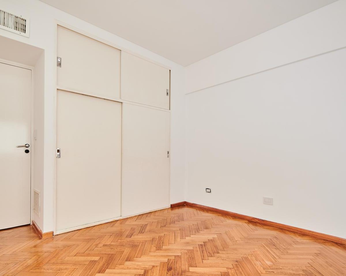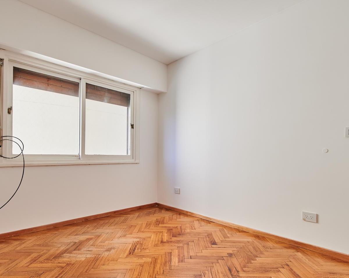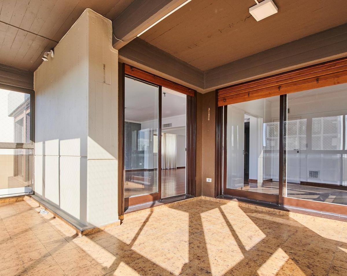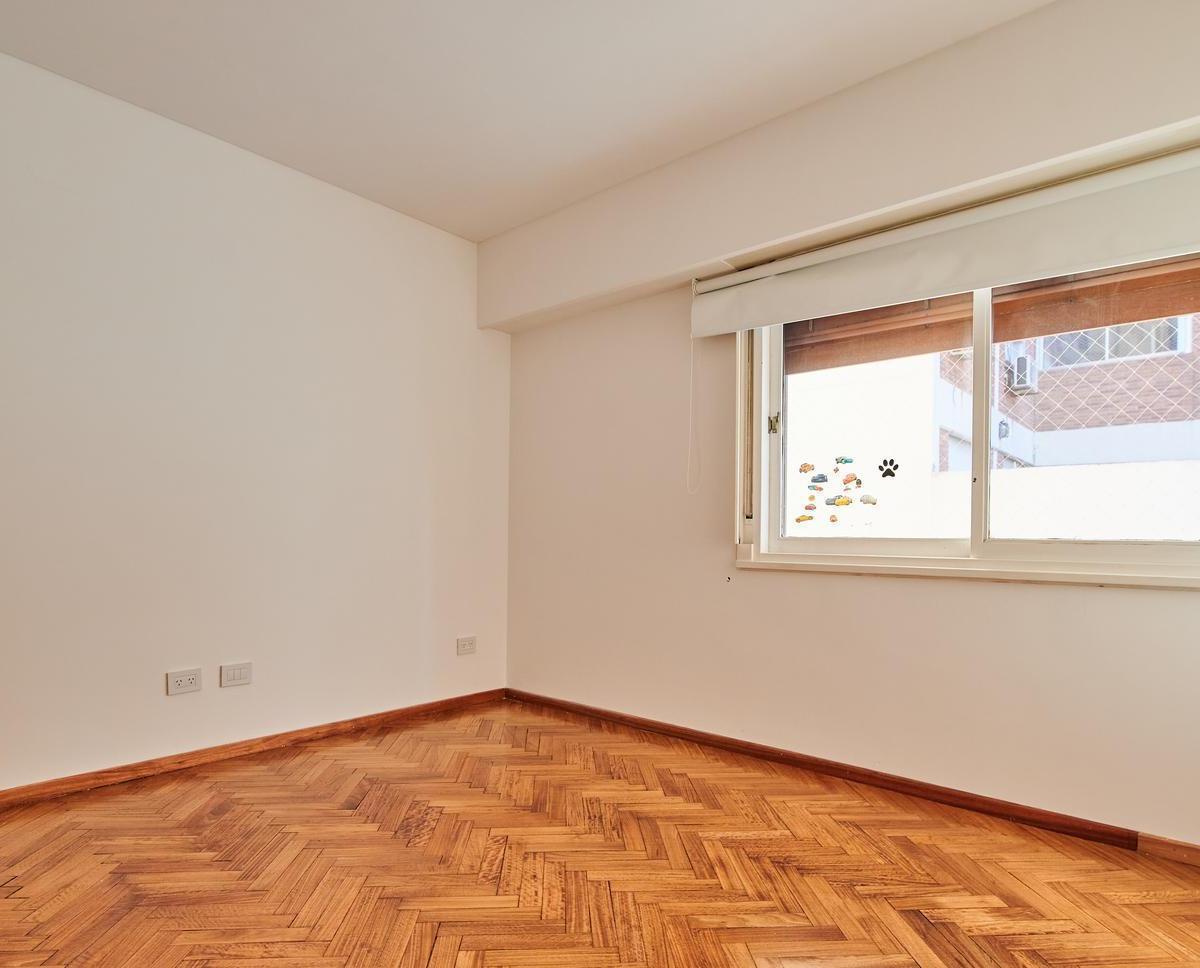 Полуэтажная квартира площадью 205 m² находится на 4-м этаже башни Torre Cinque у Av. Del Libertador (район Olivos). В планировке 3 спальни: главная с master suite, гардеробной и сауной, ещё 2 спальни; в квартире 2 ванные комнаты, гостевой туалет и отдельная комната для прислуги с собственной ванной. Центральная система кондиционирования (холод/тепло), паркетная отделка, в том числе в зоне гостиной и прихожей, кухня с кухонной мебелью. Есть закрытый балкон-терраса и два (закреплённых) крытых парк