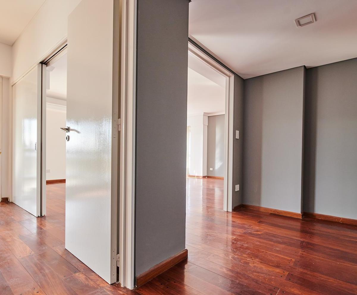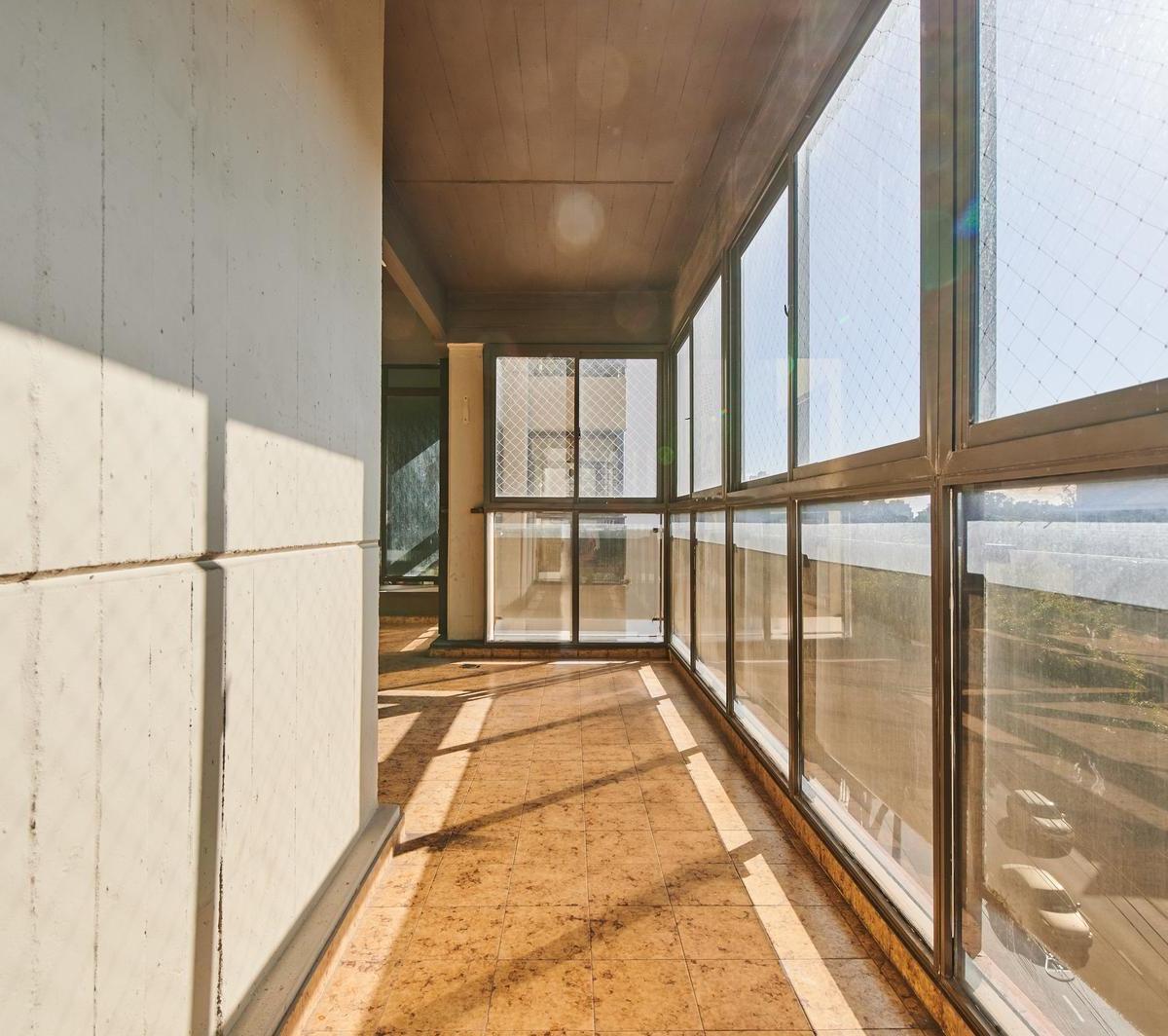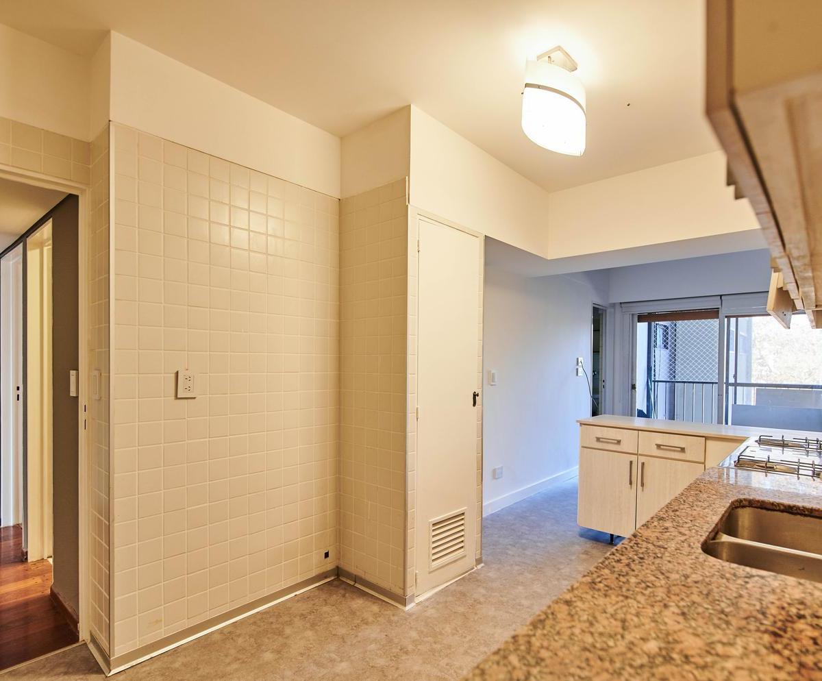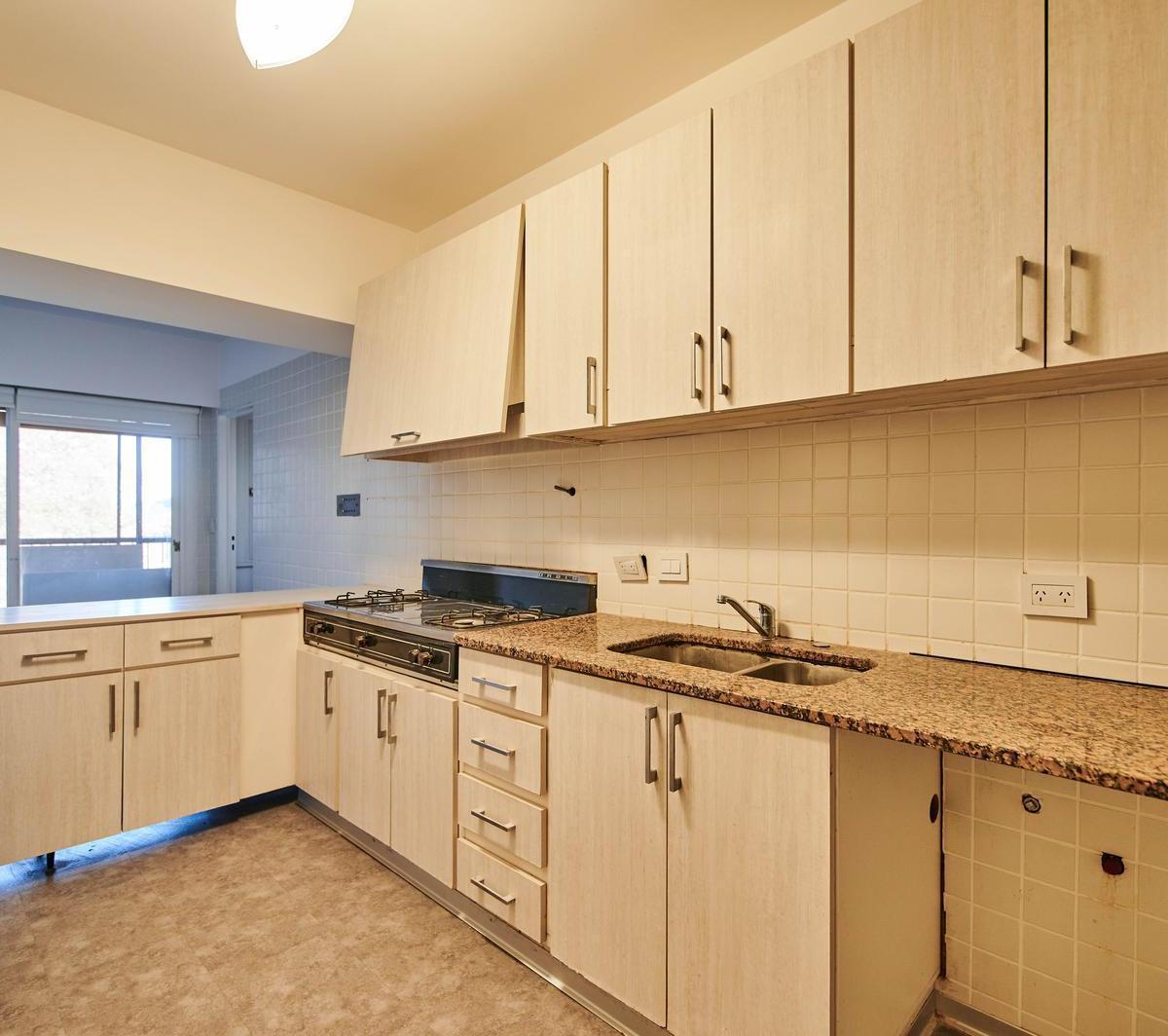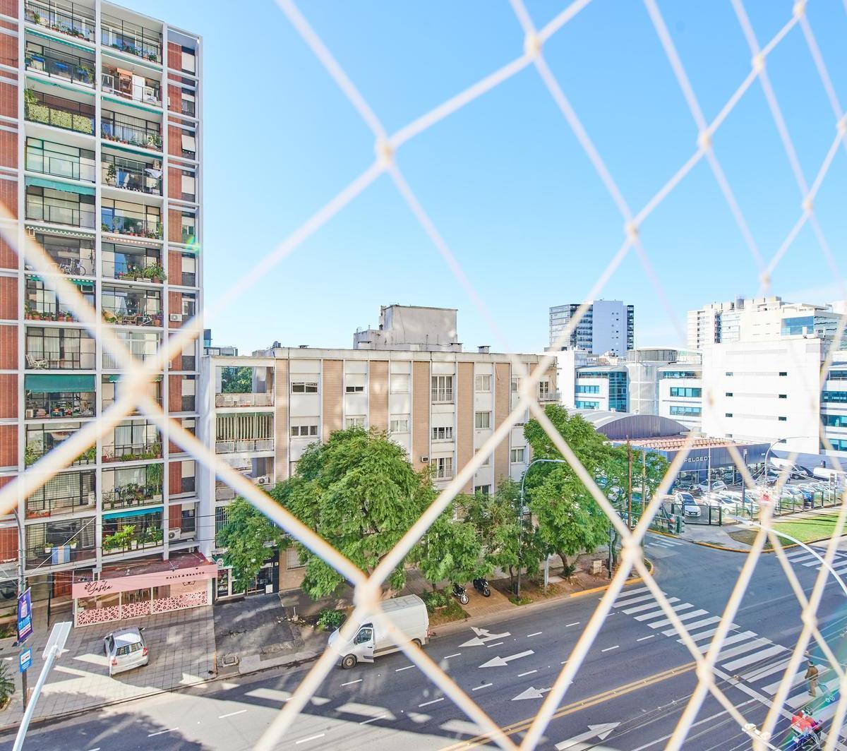 Полуэтажная квартира площадью 205 m² находится на 4-м этаже башни Torre Cinque у Av. Del Libertador (район Olivos). В планировке 3 спальни: главная с master suite, гардеробной и сауной, ещё 2 спальни; в квартире 2 ванные комнаты, гостевой туалет и отдельная комната для прислуги с собственной ванной. Центральная система кондиционирования (холод/тепло), паркетная отделка, в том числе в зоне гостиной и прихожей, кухня с кухонной мебелью. Есть закрытый балкон-терраса и два (закреплённых) крытых парк