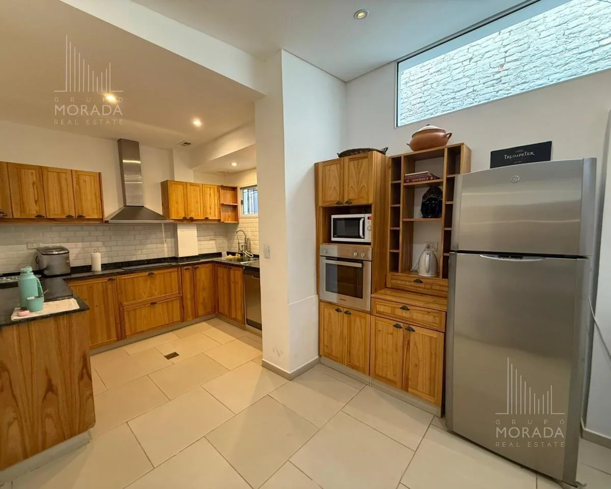 Дом в Villa Crespo в аренду, 3 этажа, 4 спальни. В доме входной холл, большая гостиная-столовая с декоративными элементами, отдельная кухня с мебелью на заказ, местом под посудомоечную машину и большим объёмом хранения, а также обеденная зона. Есть туалет, прачечная и помещения для обслуживающего персонала, (закреплённое) парковочное место для небольшого автомобиля или мотоциклов с возможностью сдвинуть стеклянные витражи для увеличения пространства. На 1-м этаже предусмотрены семейная зона/гимн