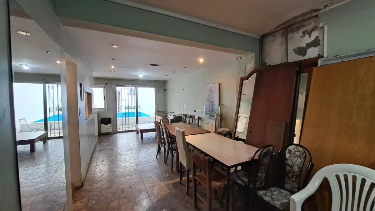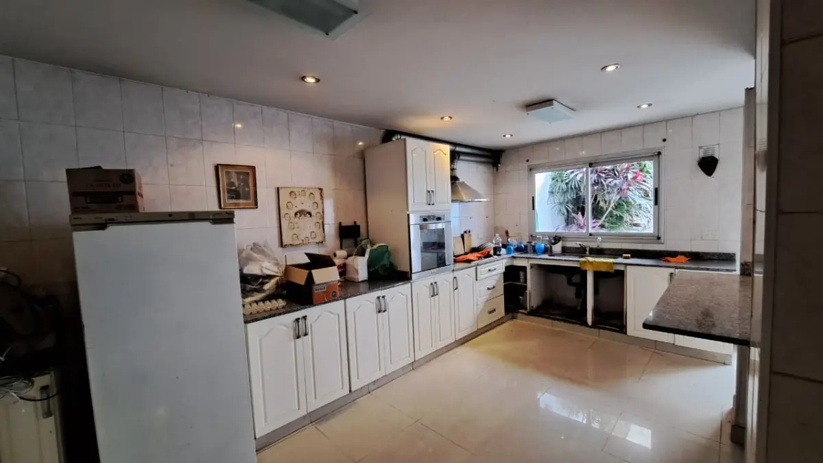Аренда дома с 4 спальнями в Villa Crespo, ориентация на северо-запад. Площадь и этажность в объявлении не указаны, объект подлежит ремонту. Планировка включает просторную приёмную, большую кухню с центральным островом и отдельное помещение для хранения вин. Всего 4 спальни и 5 ванных комнат: главная спальня с ванной в suite, с гидромассажем и lucarna. Внешняя часть: сад, бассейн, зона гриля (quincho) и терраса. Имеются гараж, электрический въездной шлагбаум и бронированная входная дверь. Для зас