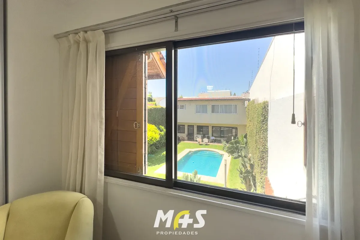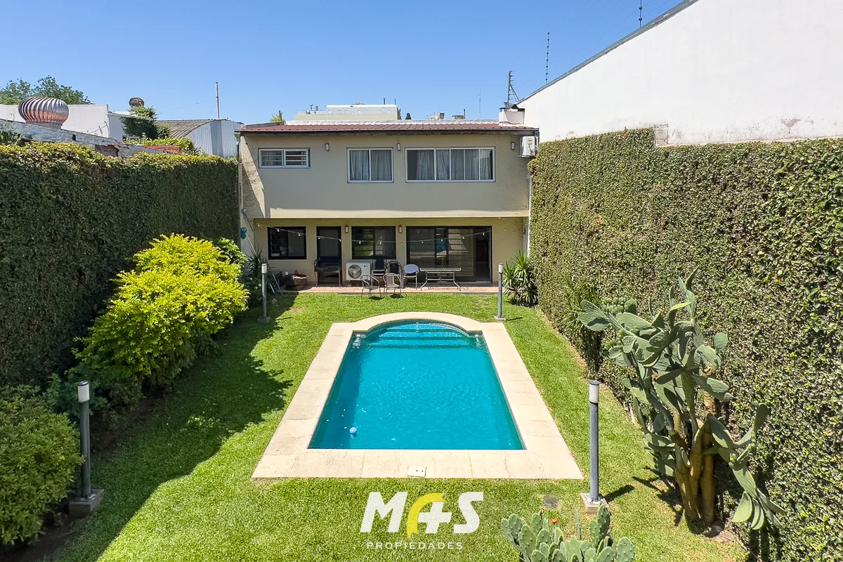 Дом в аренду в районе Villa del Parque. Площадь участка 10 x 37,50 m, все помещения выходят на внешнюю сторону, предусмотрены сад и бассейн. Жилая планировка включает гостиную-столовую, отдельную столовую, независимую кухню с видом в сад, гардеробную зону и туалет, а также прачечную рядом с кухней. На первом и промежуточном уровнях: 2 спальни с окнами на улицу, 1 спальня с окнами во двор, главная спальня с ванной комнатой и гардеробом, дополнительная спальня на антресольном уровне и отдельная по