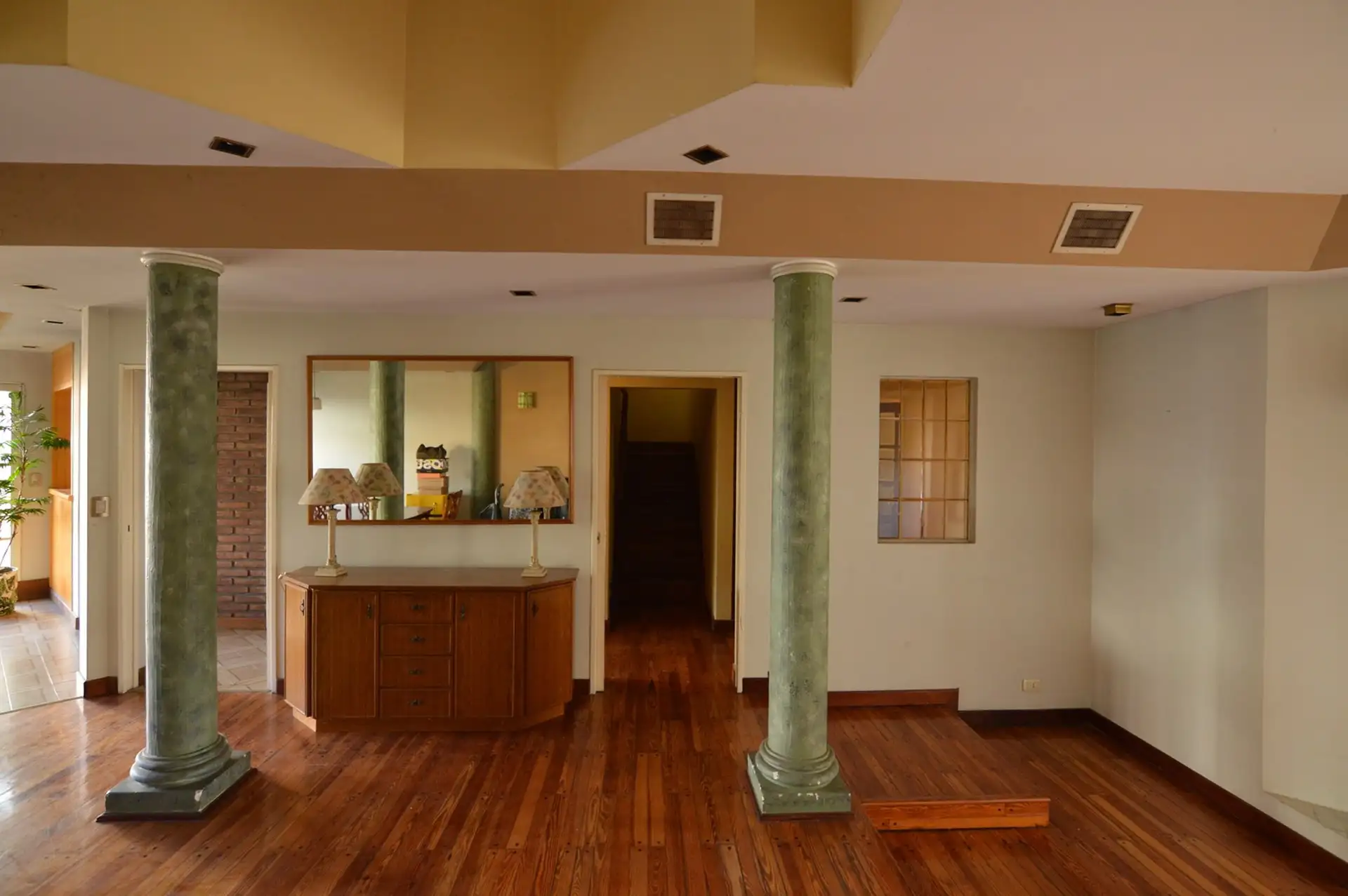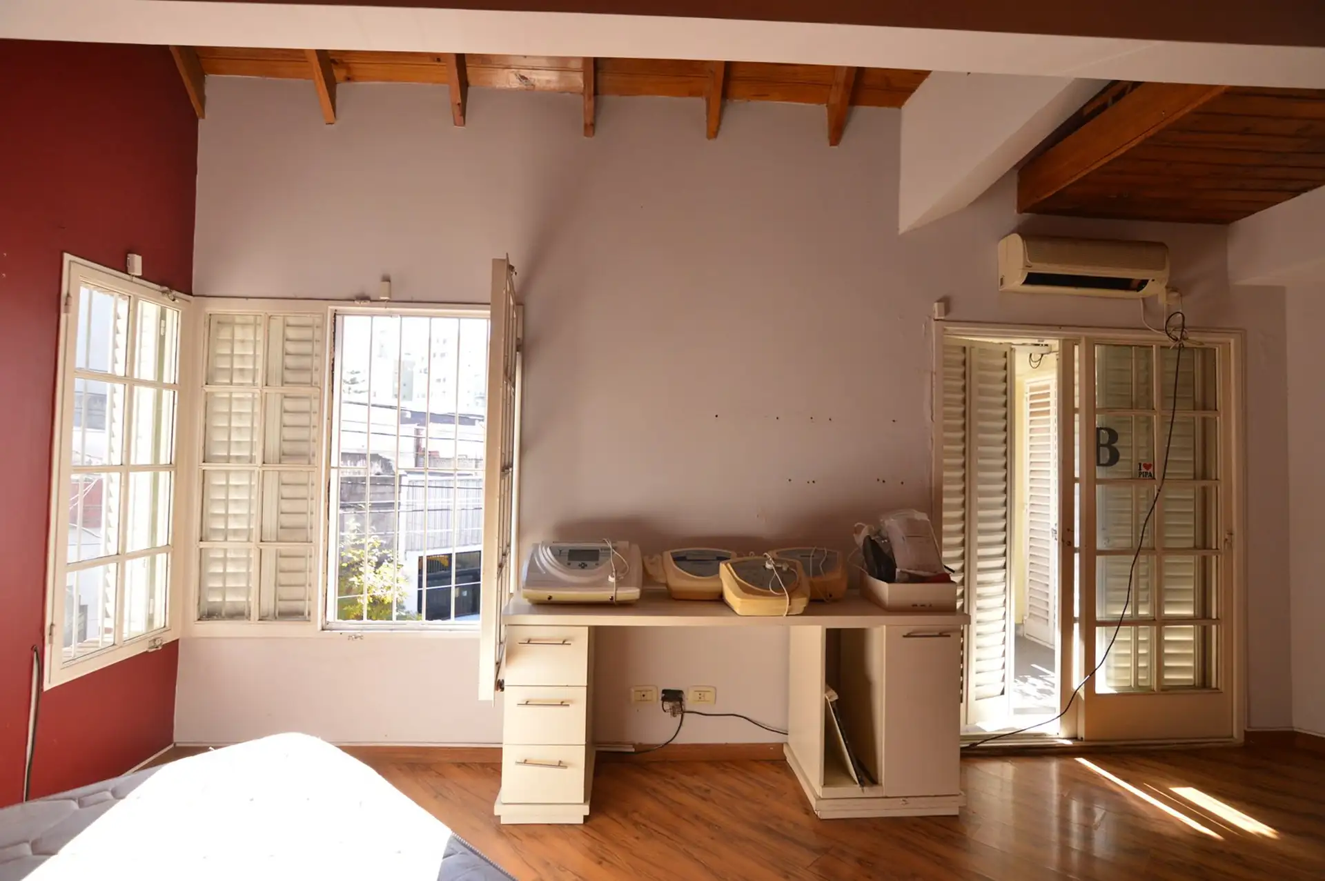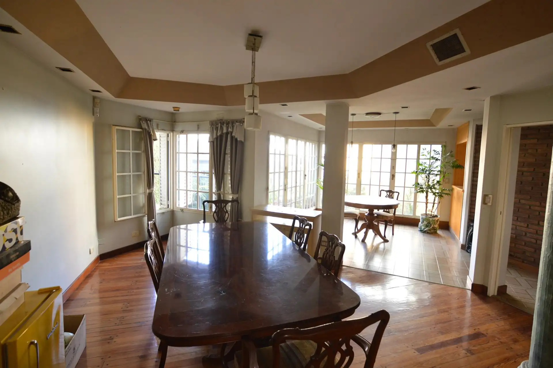 Дом на 6 комнат на участке 10 x 30 в Boedo, в формате triplex. Есть крытое (закреплённое) парковочное место в подвале с двумя автоматическими воротами. В доме 5 спален, 2 санузла и туалет, также предусмотрены гостиная и столовая, кухня-столовая и кабинет/комната у входа. Окна выходят на улицу и во внутреннюю часть (сад с крытым грилем), есть балконы с видом на сад и во двор; установлены сплит-системы, есть камин/саламандра и паркетные полы.
