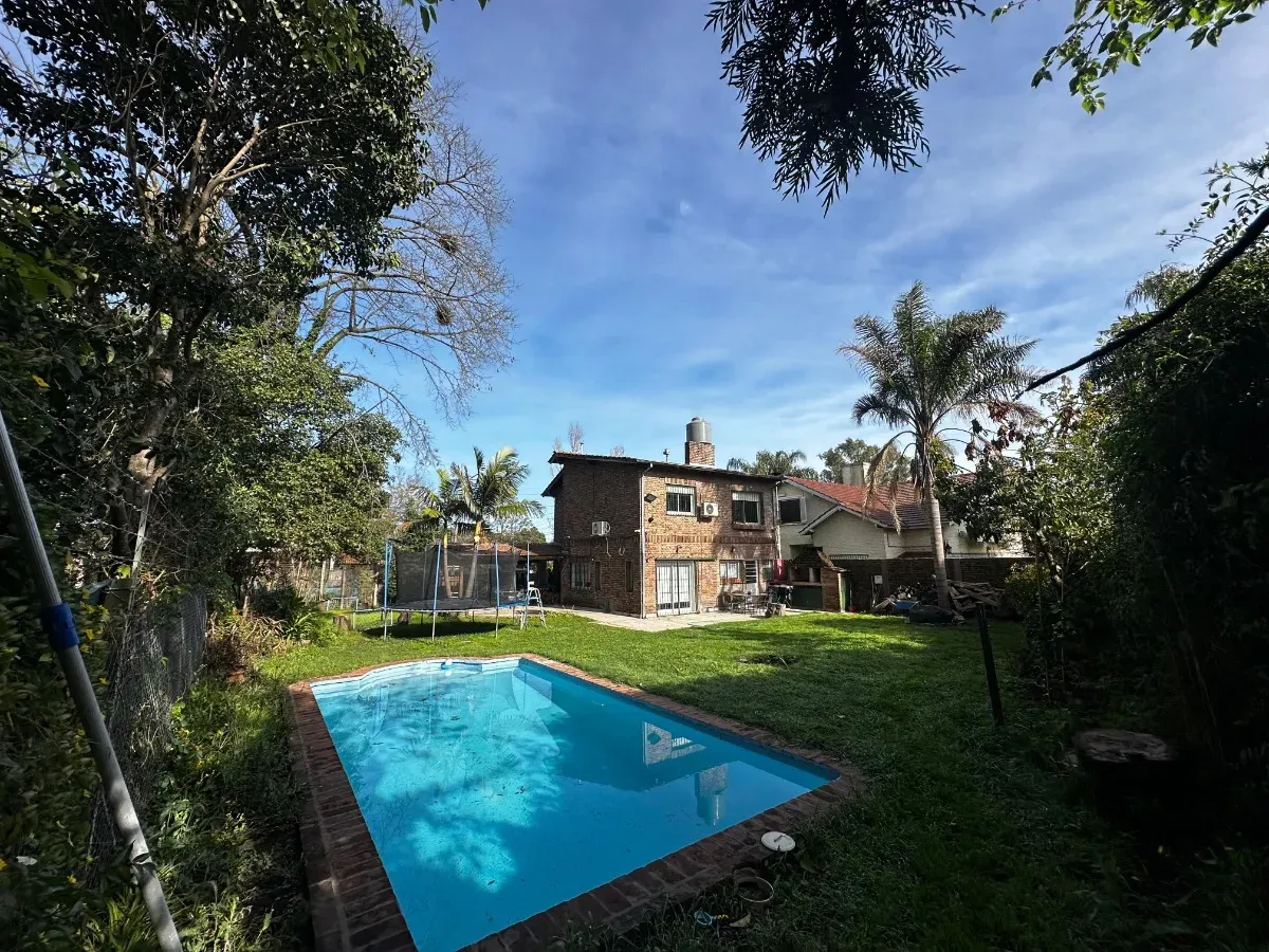 Двухэтажная квартира в Hurlingham Centro, планировка на 4 комнаты. В доме 4 спальни, основной санузел с ванной. На первом этаже: просторная гостиная-столовая, кухня-столовая, гостиная, прачечная, санузел, помещение для обслуживающего персонала с санузлом, полуприкрытое (полукрытое) проходное парковочное место, передний сад. На участке 569 m² (примерно), есть свободная задняя часть с бассейном и зоной гриля, а также окна на “5 esquinas”.