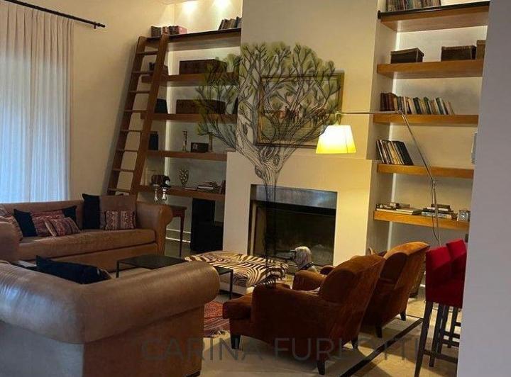 Временная аренда с доступностью с февраля. Стоимость за январь составляет USD 6000, плюс расходы. Указаны характеристики дома: мраморные полы travertino, приёмная и гостиная-столовая на вместимость до 14 человек, зона бара, широкие галереи и бассейн с водопадом. В планировке: туалет, холл, общая ванная комната с раздельной мраморной отделкой для двух комнат, большая главная спальня с гардеробной, сауна, игровая комната с TV, зона гриля, ванная, а также кухня с посудомоечной машиной, блендером, к