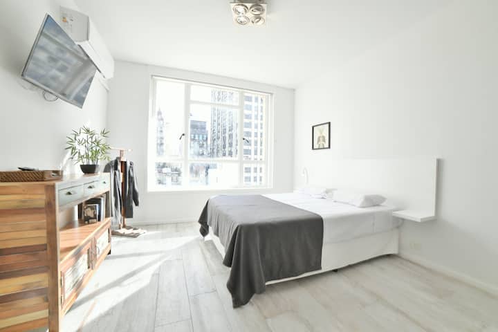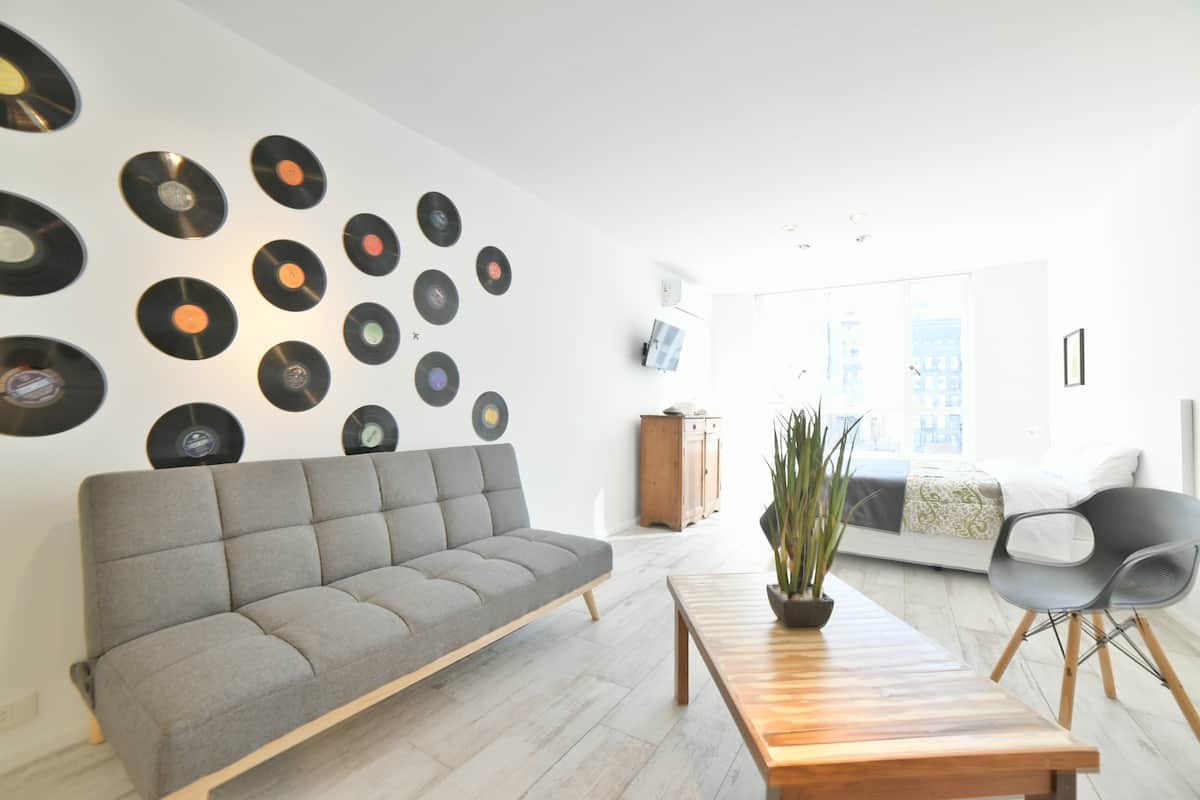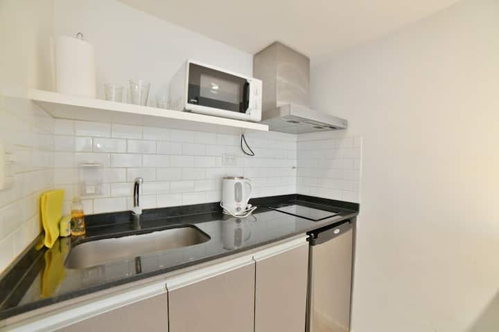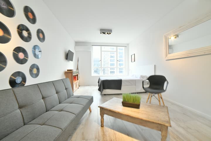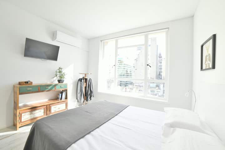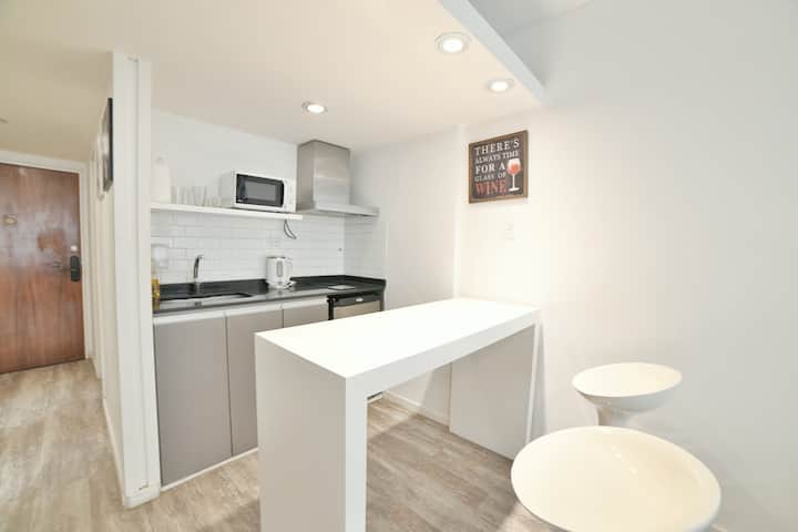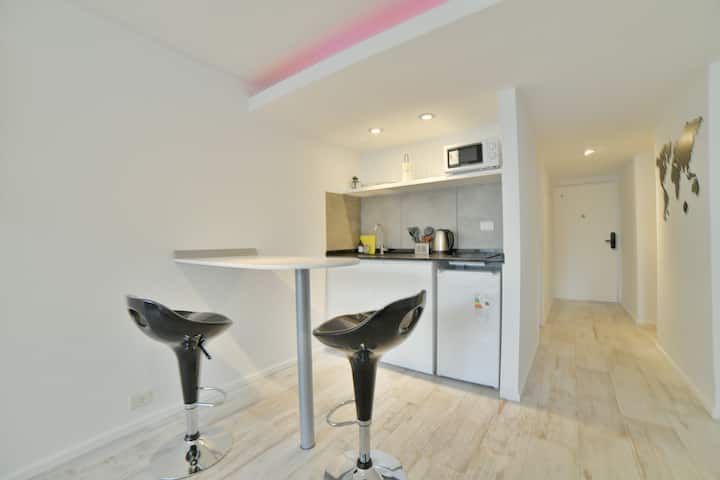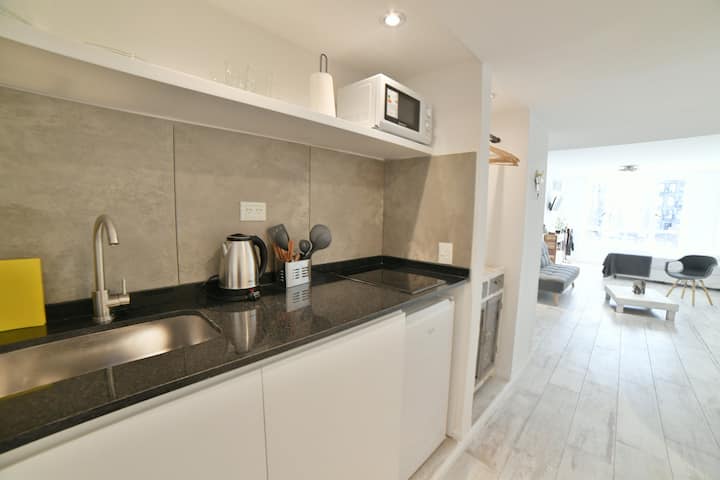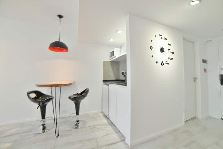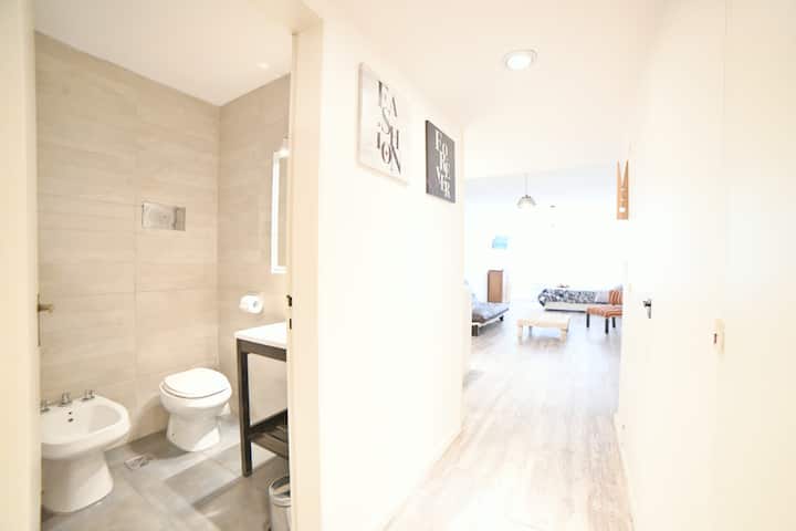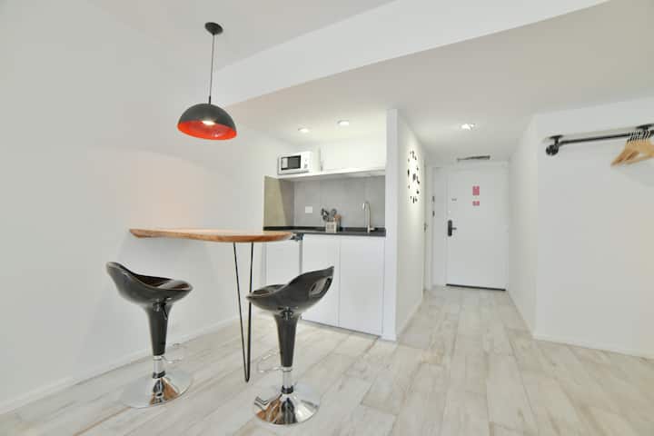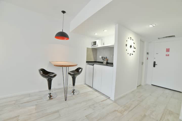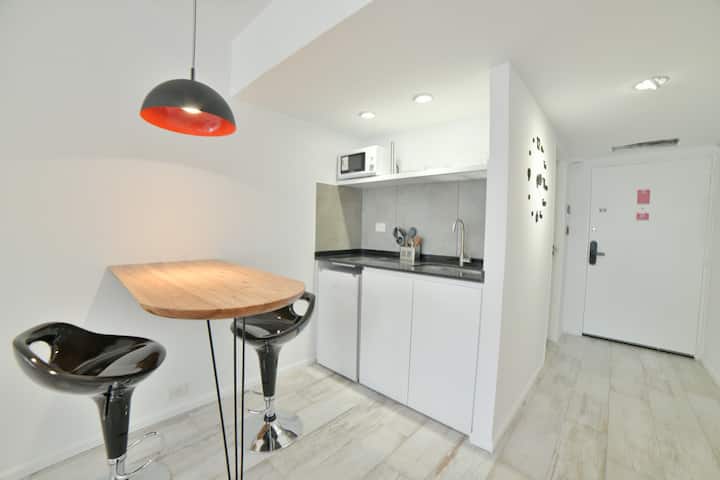 В Retiro в одном здании расположены 5 независимых квартир. Каждая квартира рассчитана на размещение 2 человек. В описании указано, что они предназначены для краткосрочной аренды и не используются другими жильцами в течение года. Сообщается о включённых в стоимость сервисах: электричество, интернет, кабельное телевидение, а также предоставляются постельные принадлежности и полотенца.