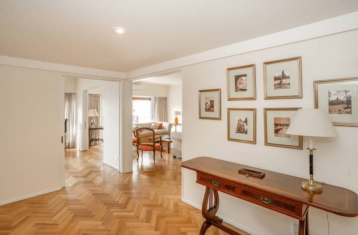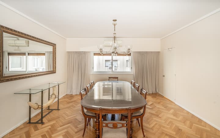 Квартира с 5 спальнями площадью 250 m² в Retiro, с частным балконом. В квартире полностью сделан ремонт; кухня с посудомоечной машиной, есть стиральная машина, Wi‑Fi высокой скорости и Smart TV. Предусмотрены 2 зоны гостиной и обеденный стол, встроенный в гостиную, а также 1 парковочное место. В стоимость включены услуги 24‑часовой стойки регистрации; уборка во время проживания не включена.