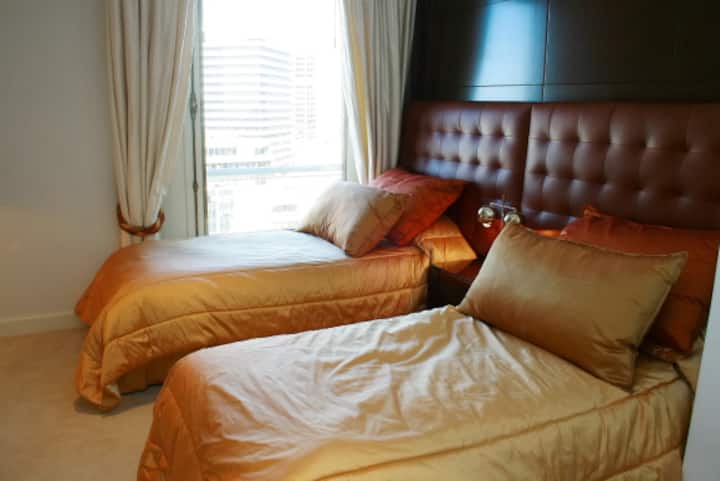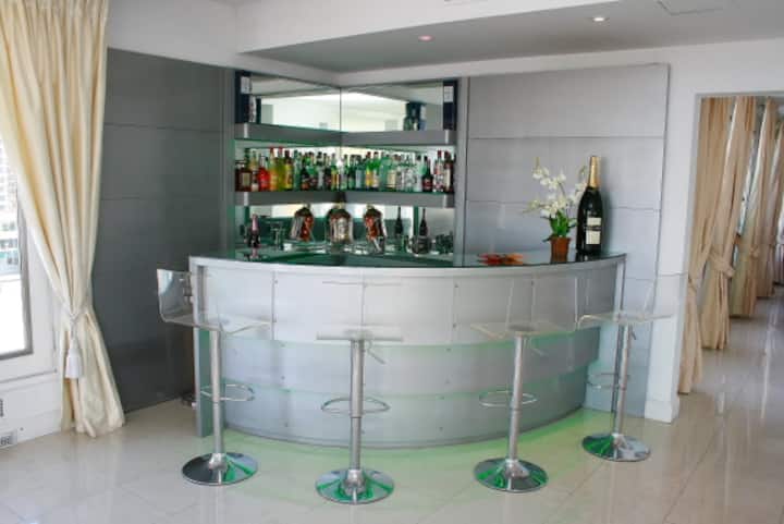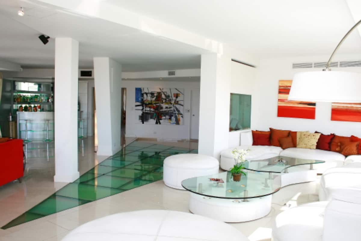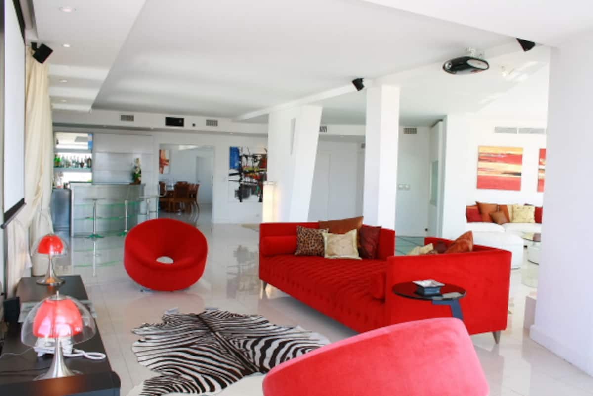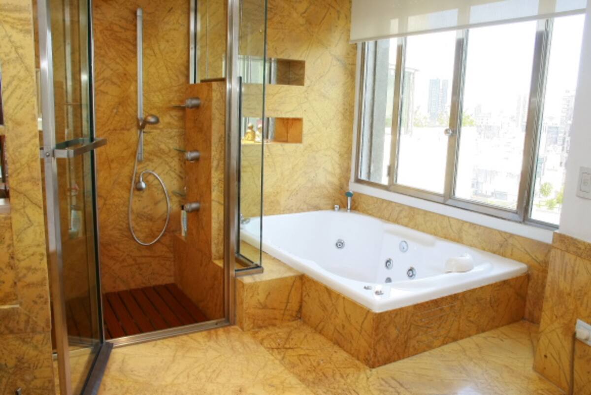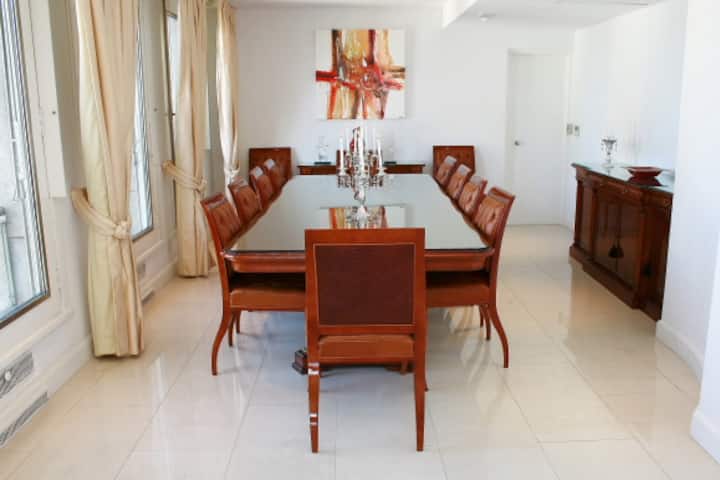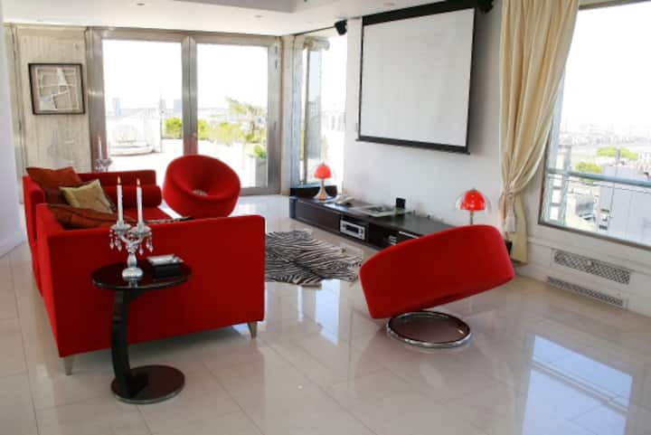 Квартира площадью 855 m² расположена на 14-м этаже в Retiro. В планировке 5 спален: 2 мастер-спальни со своими гардеробными и ванными с джакузи, 3 спальни с ванными en-suite и отдельная комната для прислуги с ванной. В квартире есть 2 частных сада и терраса, большая гостиная с зоной для кино, столовая на 12 мест и кухня с техникой Bosch и окнами с видом на Plaza San Martin. Имеются круглосуточные дежурные у входа. Коммунальные платежи, ABL и AYSA в цену не указаны.
