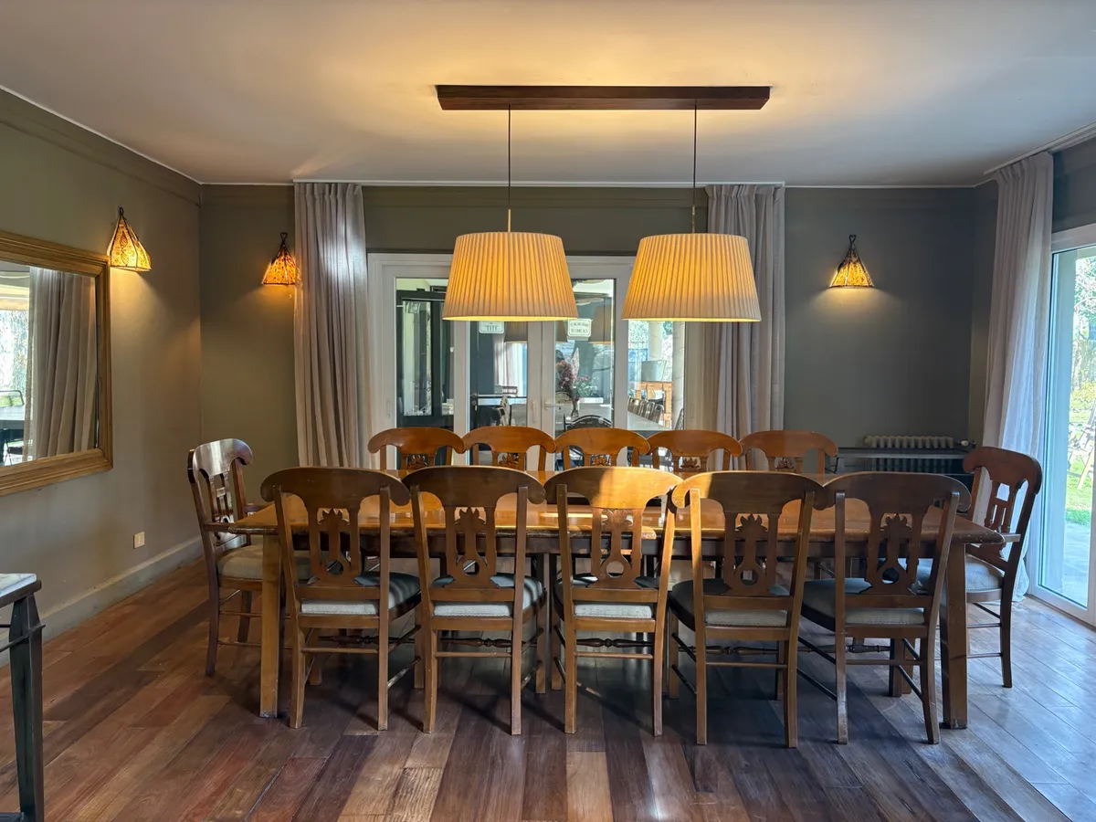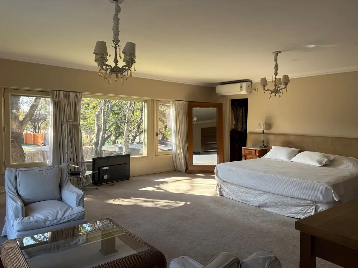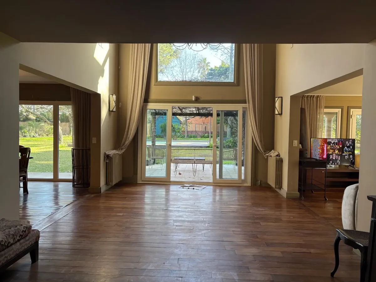 Дом в районе Pacheco в Tigre на участке с парком и почти 3000 m². 5 спален, главная спальня с двумя гардеробными и ванной с джакузи, отдельный сектор, гостиная, кабинет, столовая и столовая-«de diario». Также предусмотрены кухня, прачечная и служебные помещения, большие панорамные окна, двусветное пространство и кондиционер. На участке разбит сад с огородом, есть большая зона у бассейна, бассейн и отапливаемое джакузи, большая галерея с камином и зона гриля, а также солярий и парк.