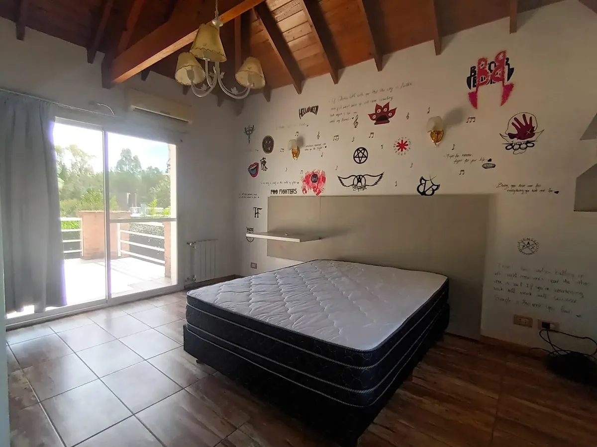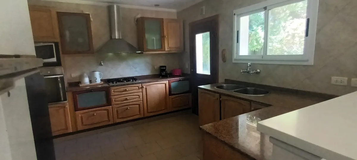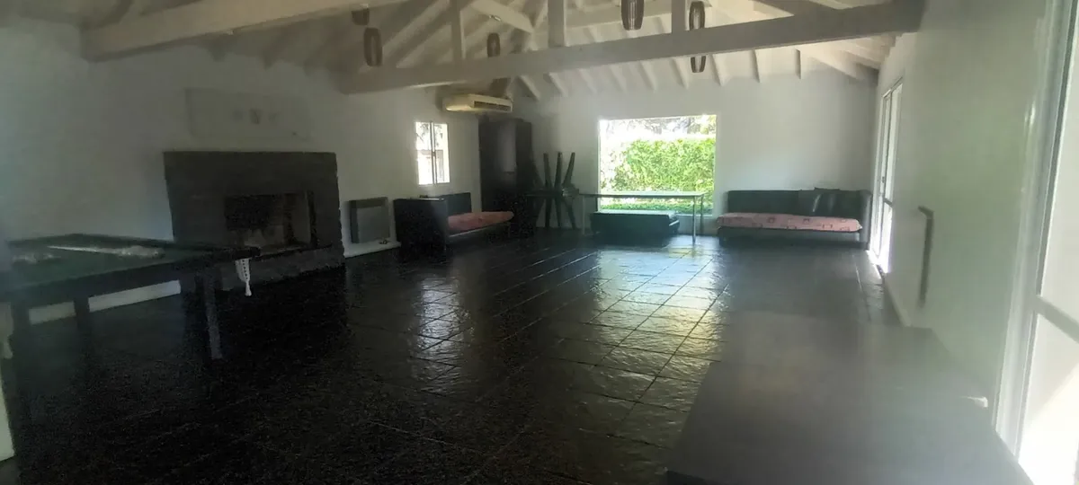 Дом на 2 этажах в Valle Claro, Benavidez, Tigre. На первом этаже: просторная гостиная с камином, столовая с барной стойкой, соединяющей кухню, постирочная с стиральной машиной, гостевой санузел с душем, спальня/кабинет с односпальной кроватью и тележкой с матрасом, спальня с собственным санузлом и отдельным входом, общий лаундж (SUM) с прямым выходом в галерею и зоной гриля. На втором этаже: 1 suite с выходом на балкон (кровать 2 plazas), 2 спальни с кроватями 2 plazas, полноценная ванная комнат