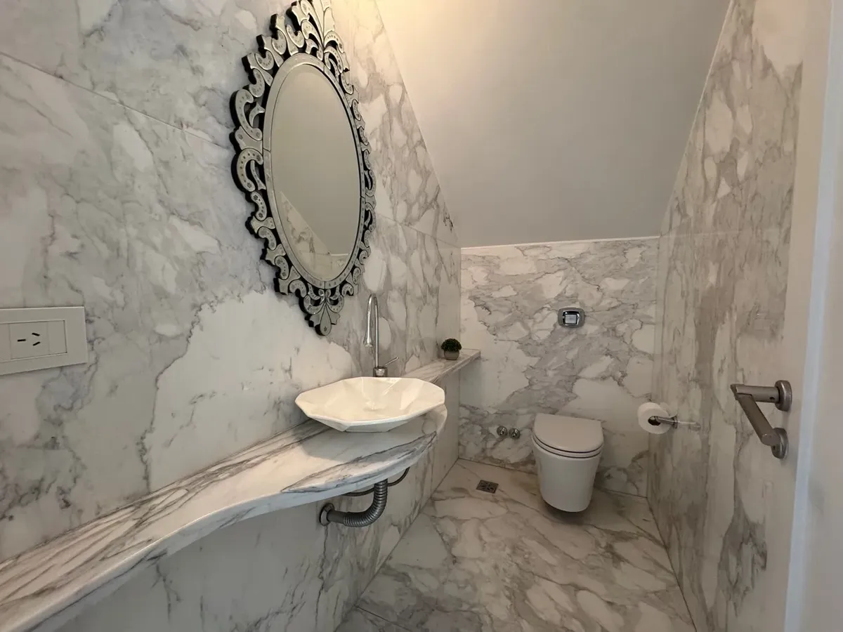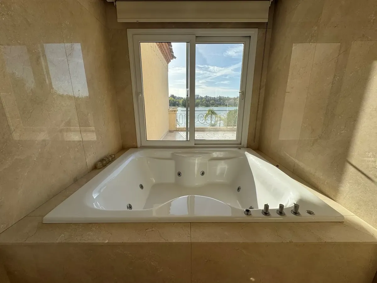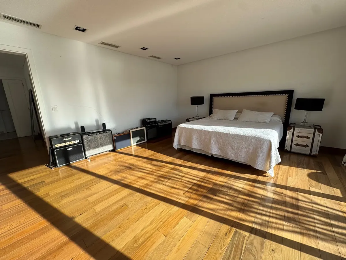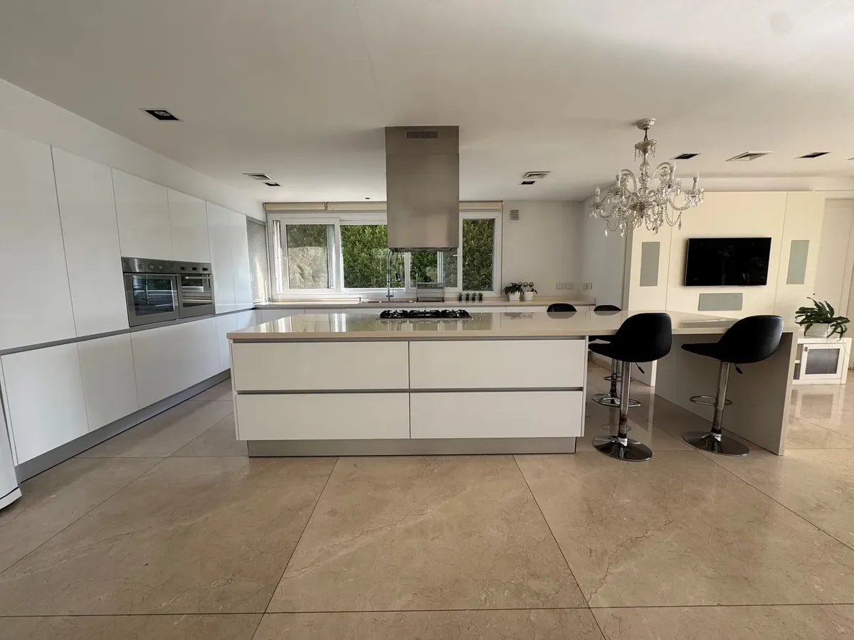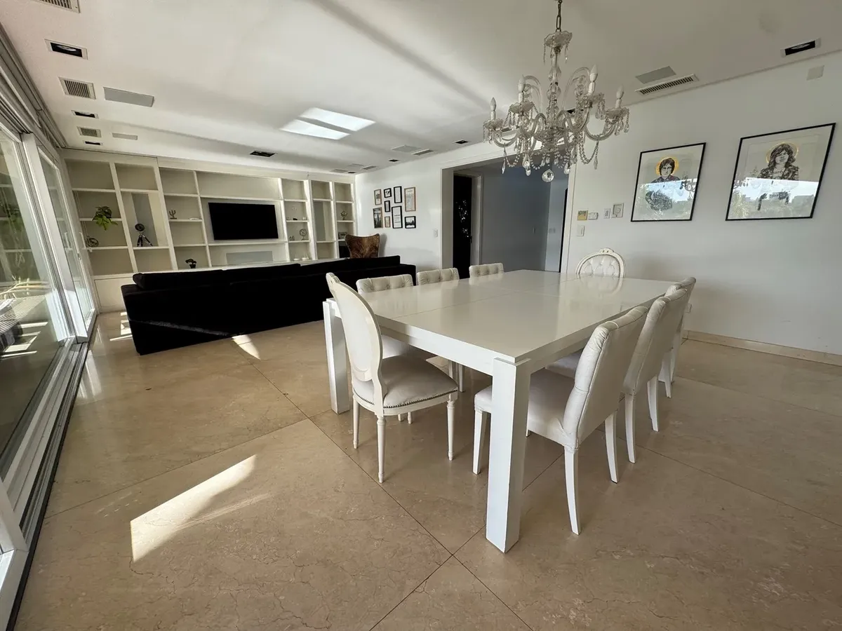 Дом в аренду в Altamira, Rincón de Milberg, Tigre, на участке у лагуны. Два уровня; ориентация не указана. В планировке: 5 спален, основная suite с гардеробной, балконом в сторону сада и ванной с джакузи и двойным душем; на первом этаже гостиная-столовая с видом, большая кухня с островом и family, рабочий кабинет или playroom, гостевой туалет, ванная у бассейна, прачечная, служебная комната с ванной и отдельным входом. Есть собственный причал, бассейн, две крытые галереи, зона гриля с инокс-решё