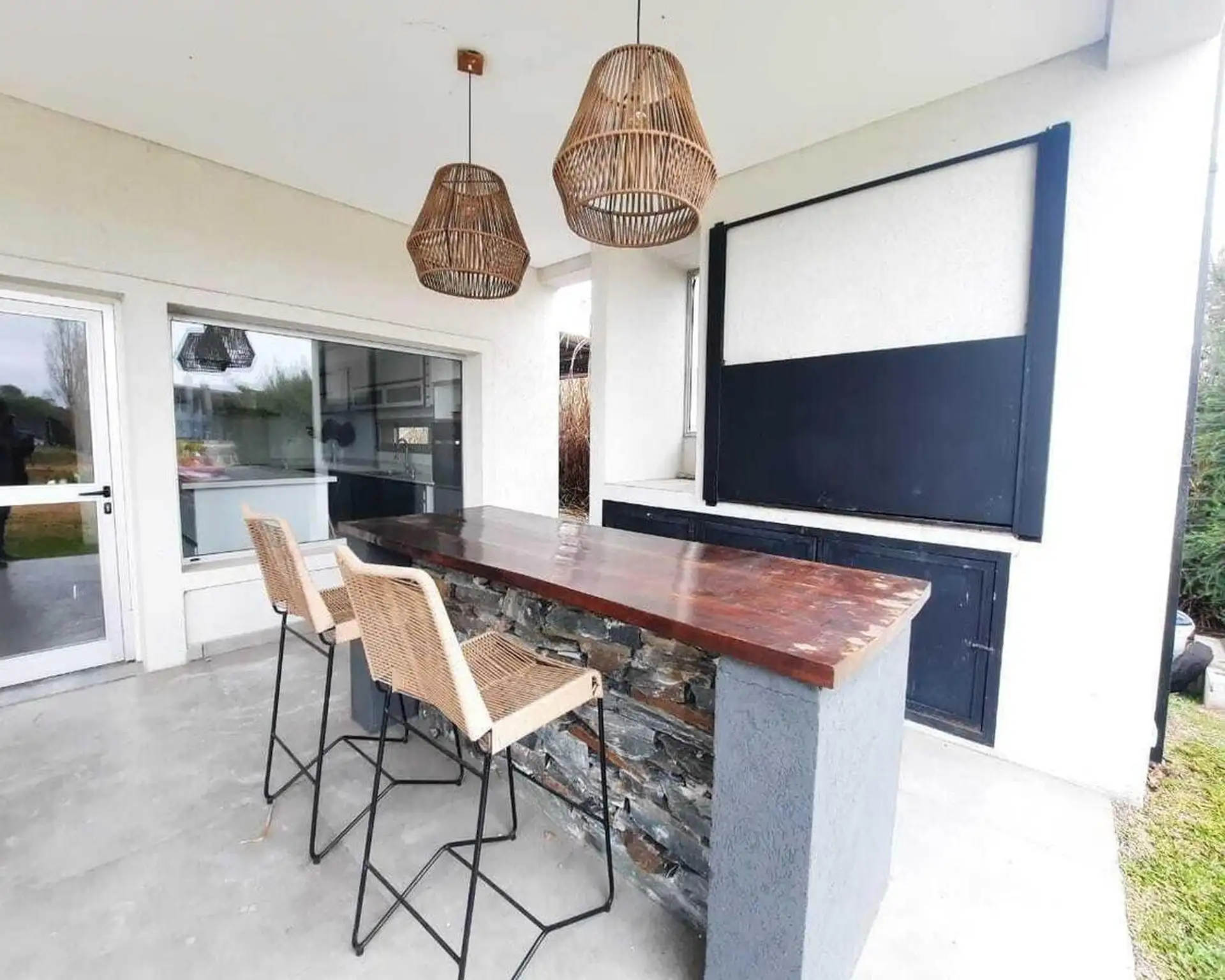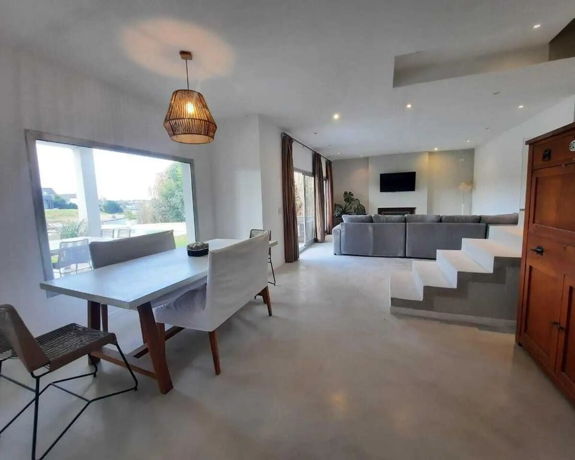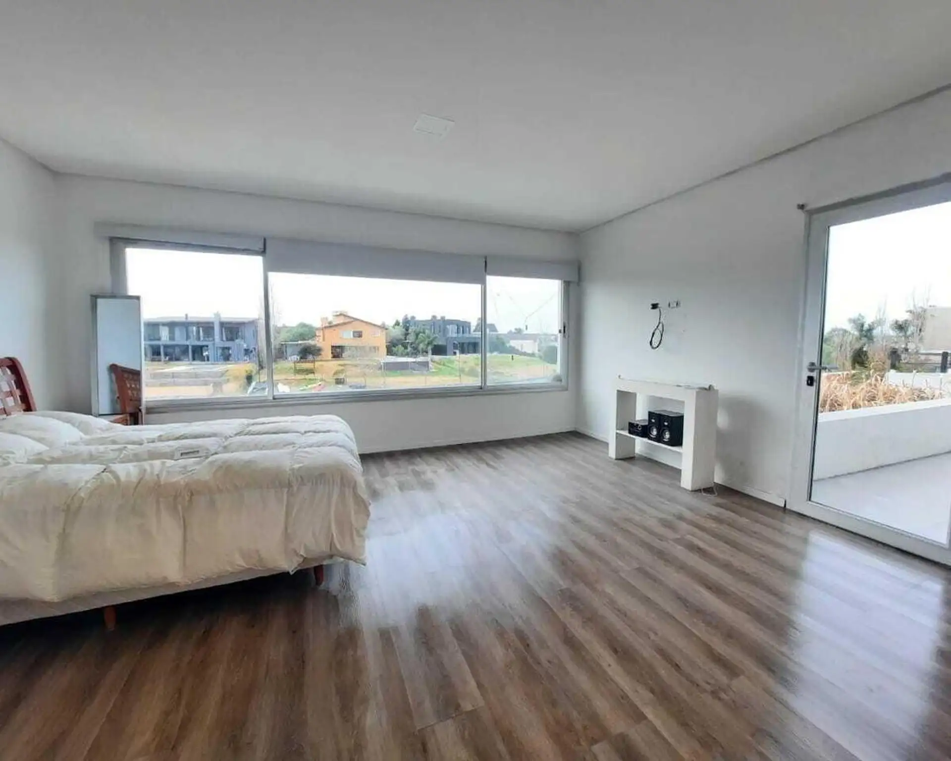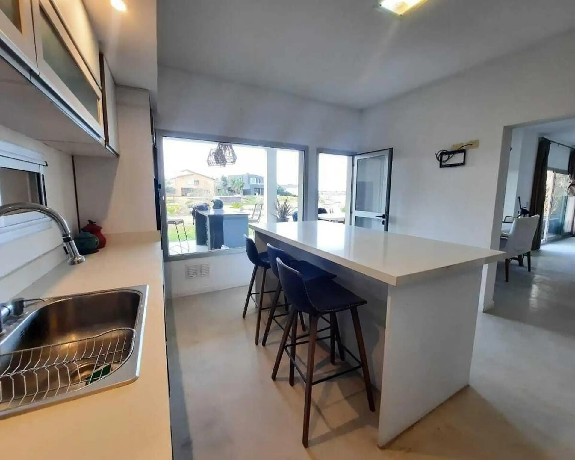 Дом в Santa Clara в Tigre, на 2 этажах. На первом этаже гостиная и обеденная зона с высокими потолками, гостевой туалет, обеденная зона с видом на сад и отдельная зона living с видом на лагуну; кухня с мебелью нижнего и верхнего яруса и центральным островом, большая комната для прислуги с ванной и отдельной прачечной, а также спальня или кабинет. На втором этаже 3 спальни, одна из них с ванной (suite) и видом на лагуну, отдельная ванная для двух других, гардероб, зона сауны. На улице полукрытая