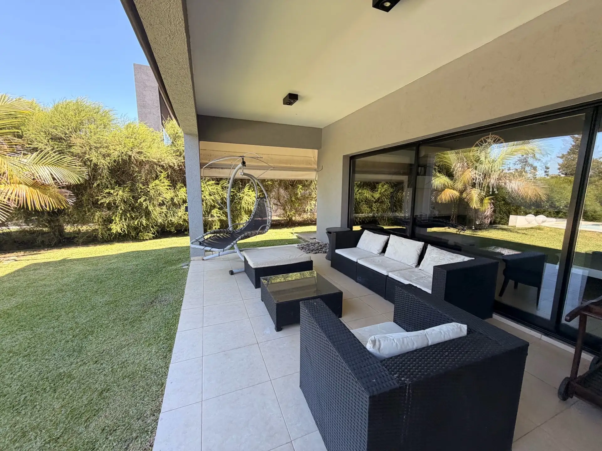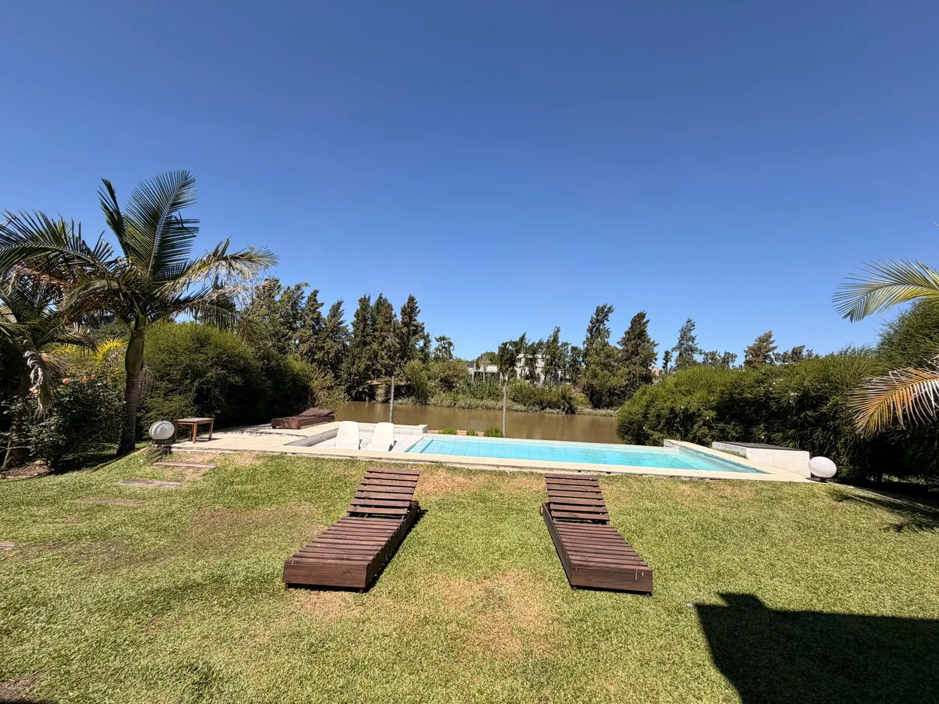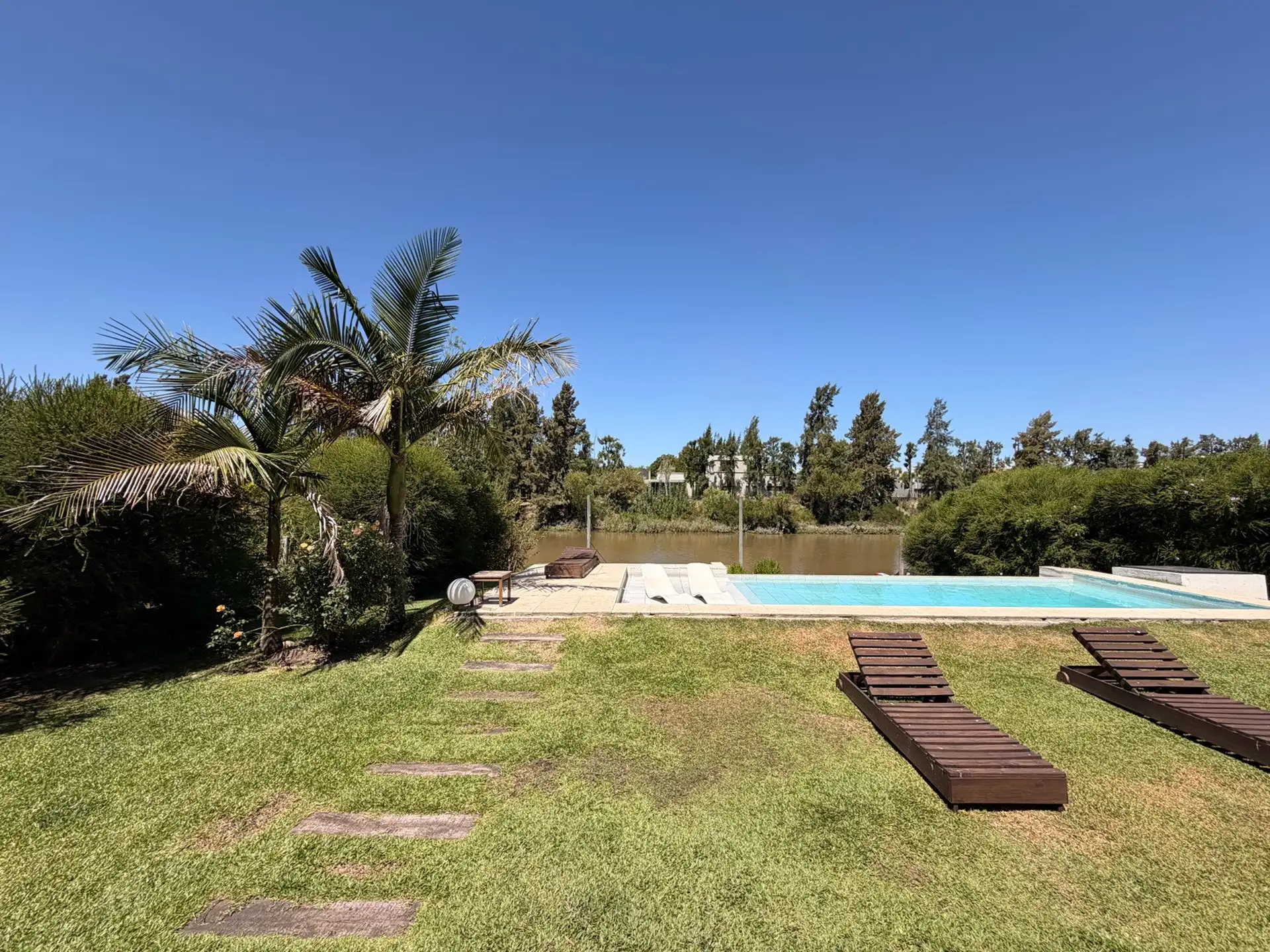 Дом в Villanueva (Barrio Náutico San Benito) в Tigre расположен на участке 1000 m² у реки. Дом построен в 2 этажа, общая площадь указана как около 500 m². На территории есть парк с автоматическим поливом, бассейн с эффектом бесконечного края, причал и собственная швартовка. Внешняя галерея оборудована зоной гриля (parrilla) и ванной комнатой; предусмотрены 2 (закреплённых) крытых парковочных места и открытая площадка для нескольких автомобилей. На первом этаже: большая гостиная-столовая, отдельн