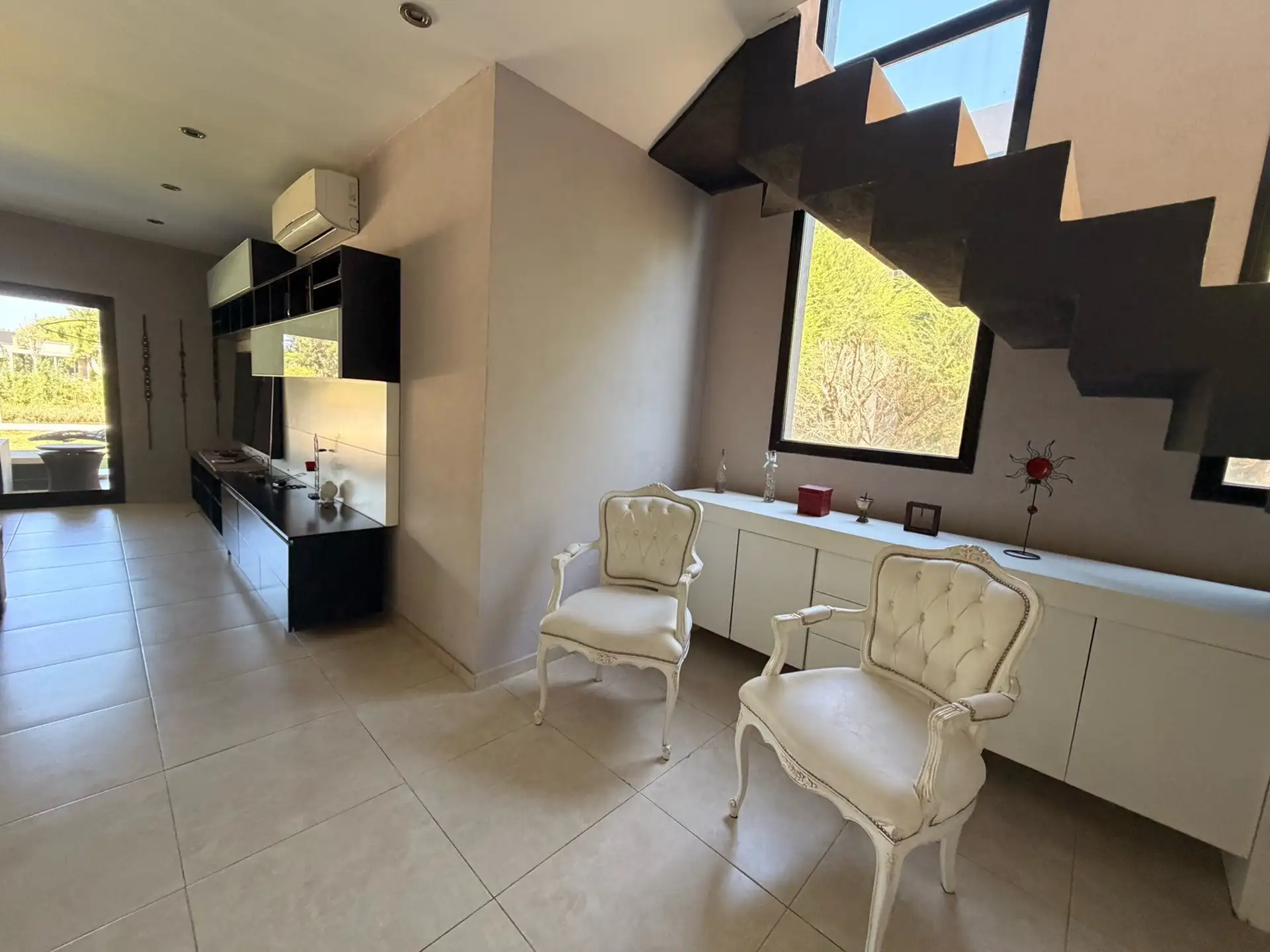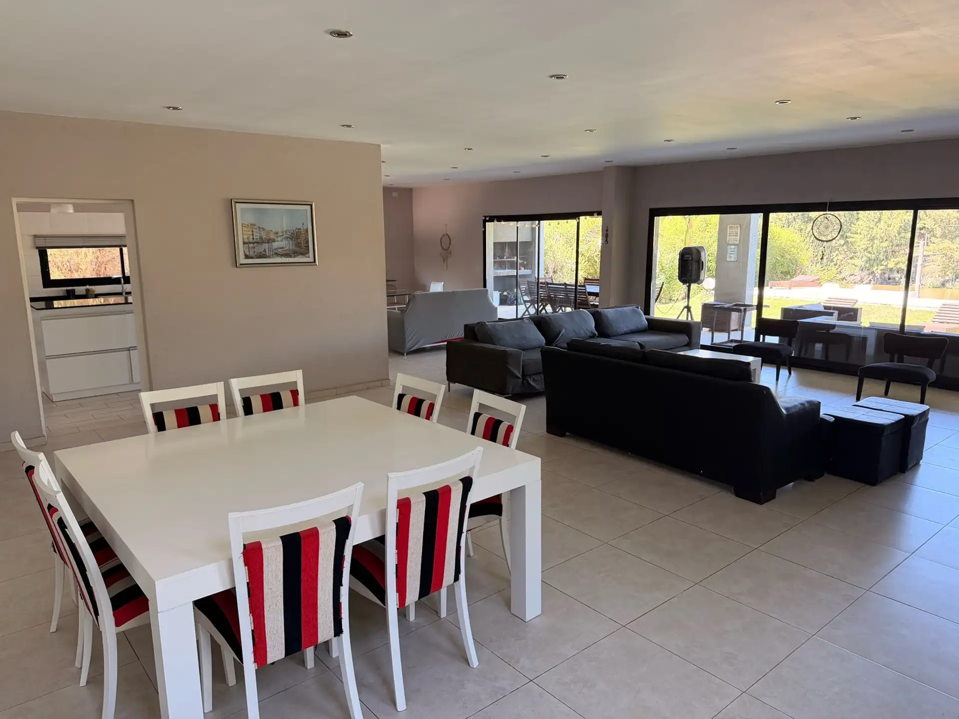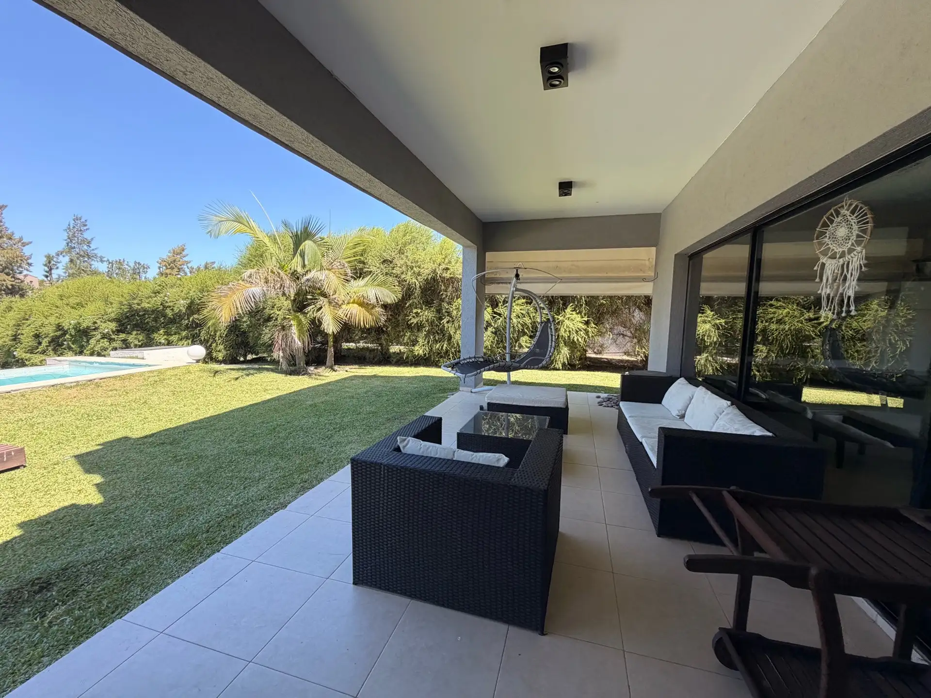 Дом в Villanueva (Barrio Náutico San Benito) в Tigre расположен на участке 1000 m² у реки. Дом построен в 2 этажа, общая площадь указана как около 500 m². На территории есть парк с автоматическим поливом, бассейн с эффектом бесконечного края, причал и собственная швартовка. Внешняя галерея оборудована зоной гриля (parrilla) и ванной комнатой; предусмотрены 2 (закреплённых) крытых парковочных места и открытая площадка для нескольких автомобилей. На первом этаже: большая гостиная-столовая, отдельн