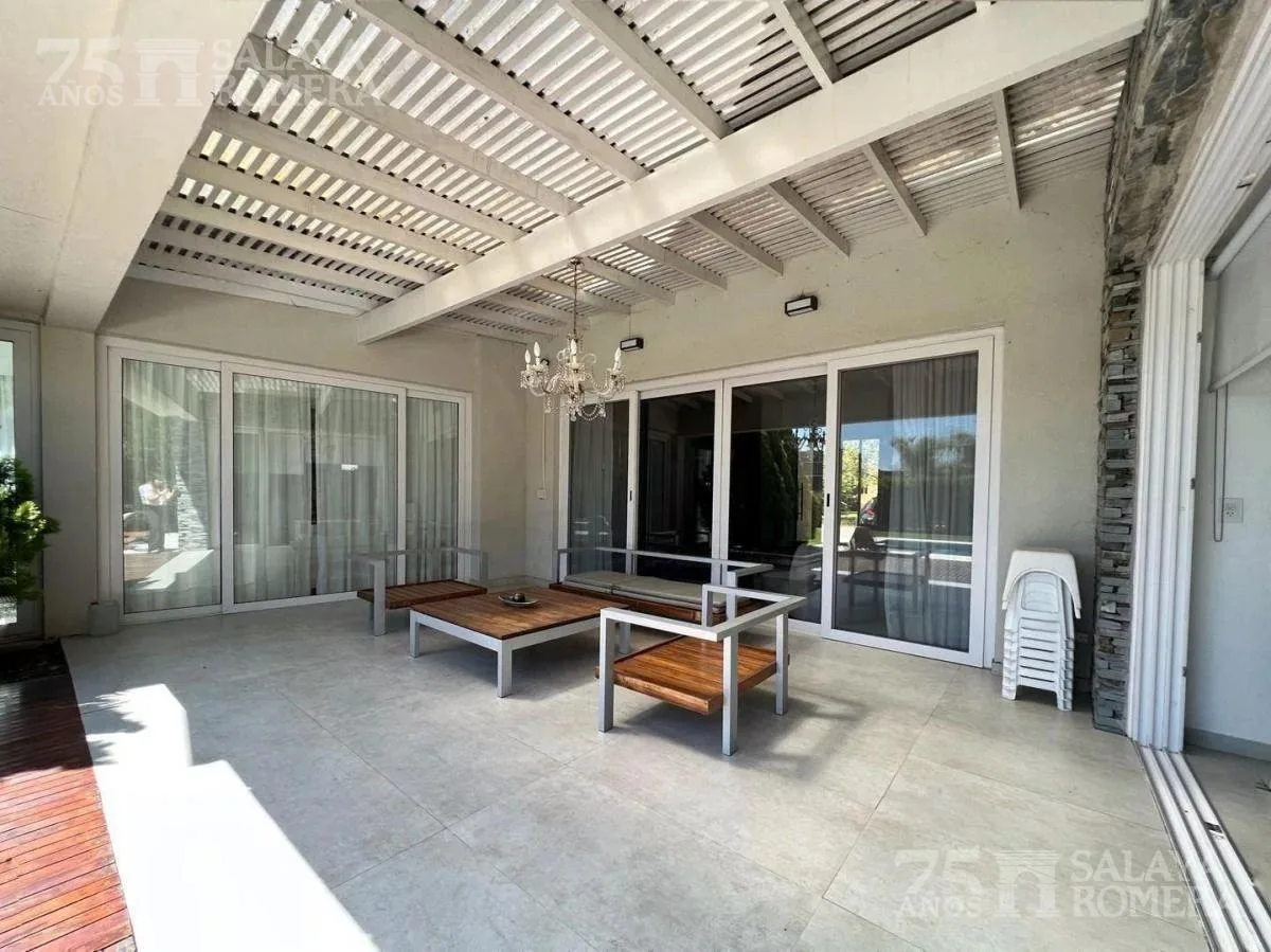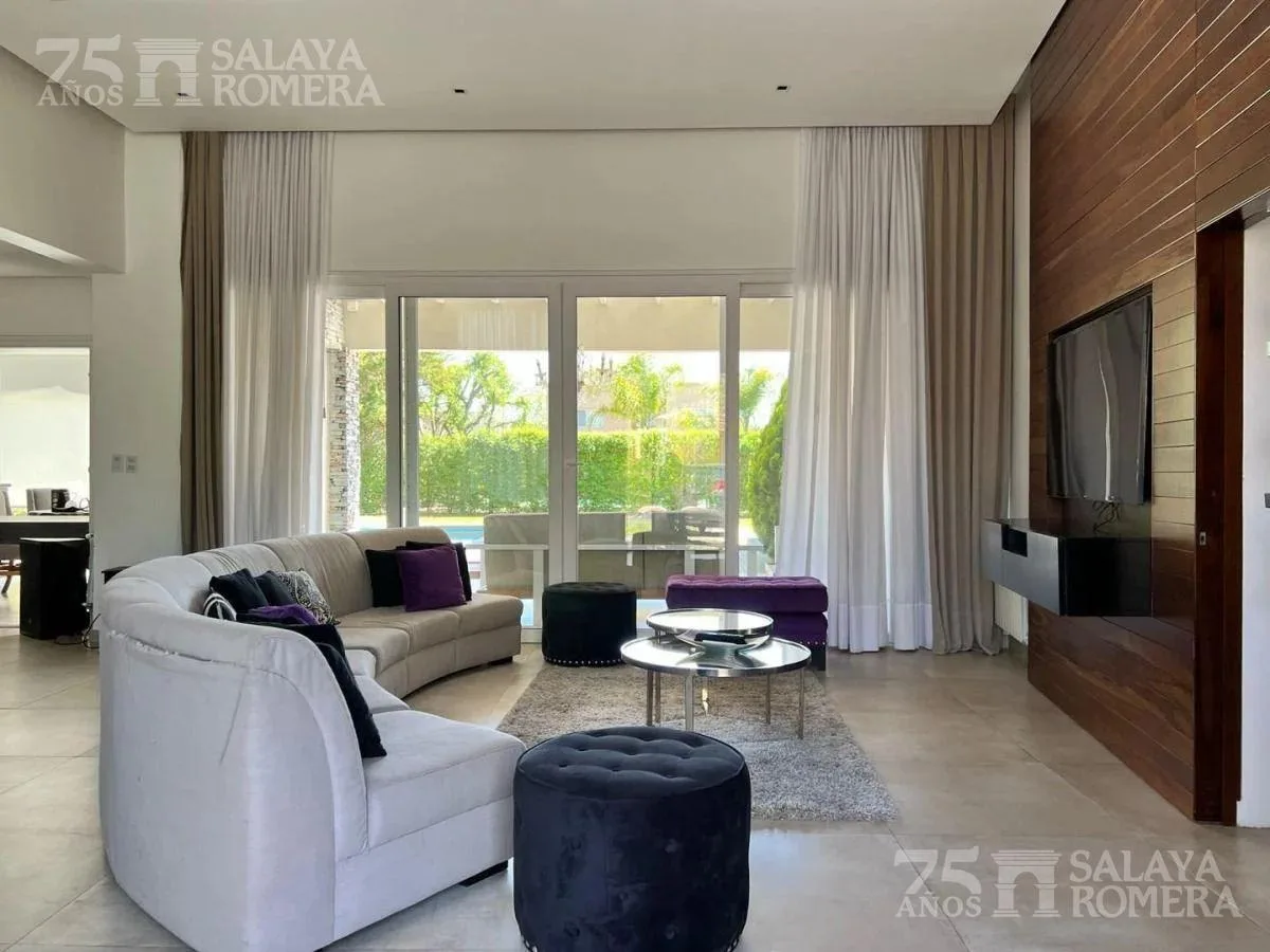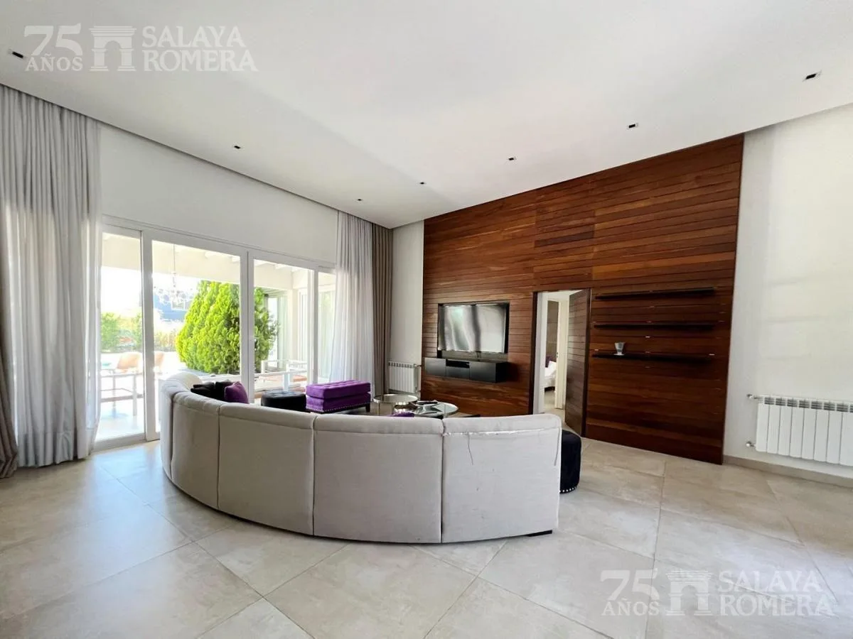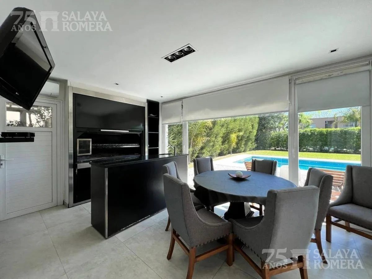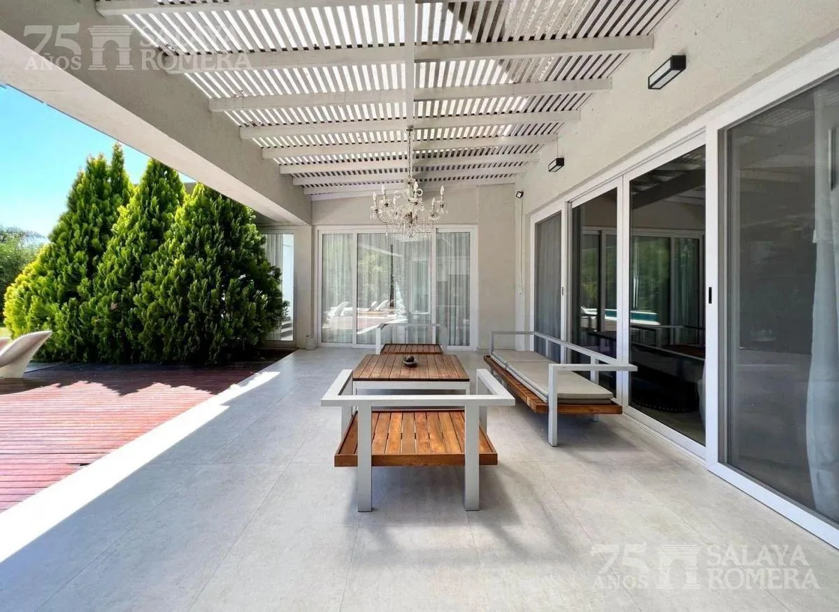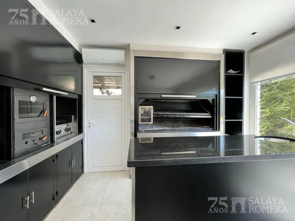 Дом в закрытом районе San Isidro Labrador в Tigre. Планировка включает 6 комнат, 5 спален. В доме есть большая гостиная-столовая, интегрированная кухня с выходом в сад. На участке предусмотрены зона гриля, бассейн с подогревом; в главном люксе есть джакузи и камин на дровах. В районе есть поле для гольфа, теннисные и падельные корты, футбольное поле. Доступно с марта; предусмотрены варианты помесячной и годовой аренды.