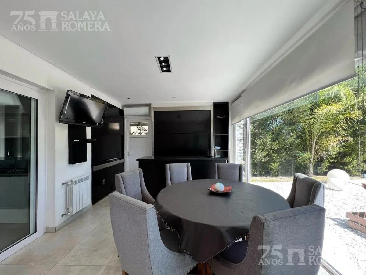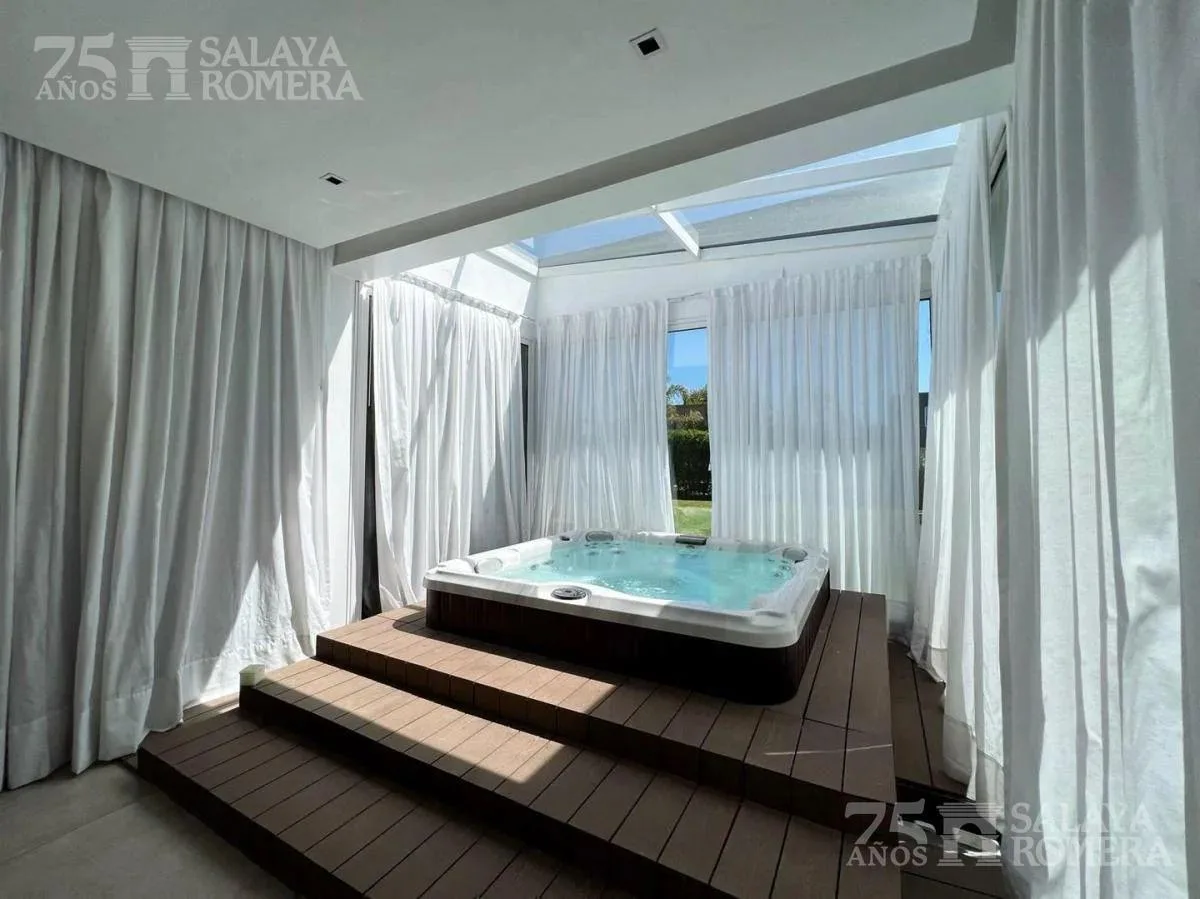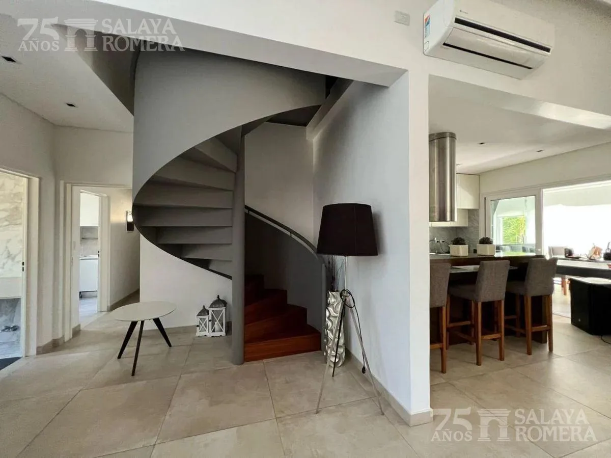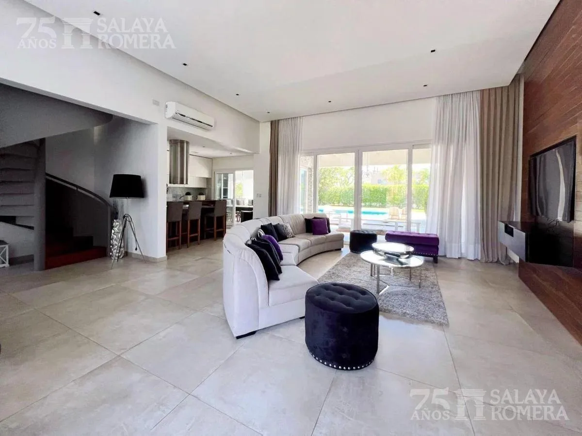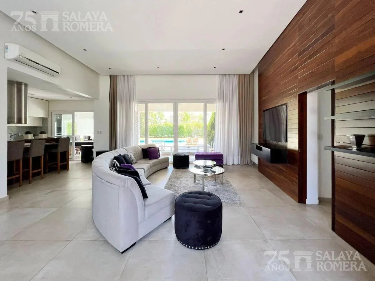 Дом в закрытом районе San Isidro Labrador в Tigre. Планировка включает 6 комнат, 5 спален. В доме есть большая гостиная-столовая, интегрированная кухня с выходом в сад. На участке предусмотрены зона гриля, бассейн с подогревом; в главном люксе есть джакузи и камин на дровах. В районе есть поле для гольфа, теннисные и падельные корты, футбольное поле. Доступно с марта; предусмотрены варианты помесячной и годовой аренды.