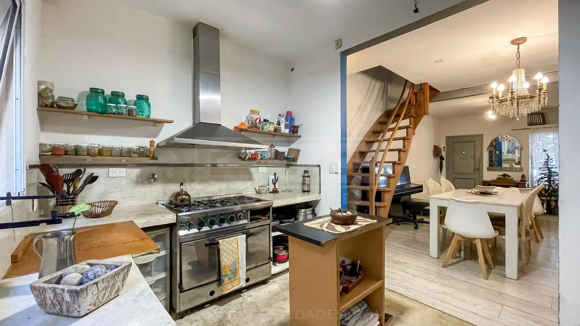 Дом в Vicente López на отдельном участке, без (закреплённого) парковочного места. Планировка на 4 уровня: на цокольном/первом уровне — вход в гостиную-столовую, кухня в формате open space в стиле industrial, гостевой туалет и прачечная. На следующих этажах размещены 3 спальни, включая 1 со своей ванной комнатой; одна спальня с балконом на улицу. Есть зона playroom и терраса. Дом расположен в районе Bajo de Vicente López рядом с Vial Costero и в нескольких метрах от Avda. del Libertador, также бл
