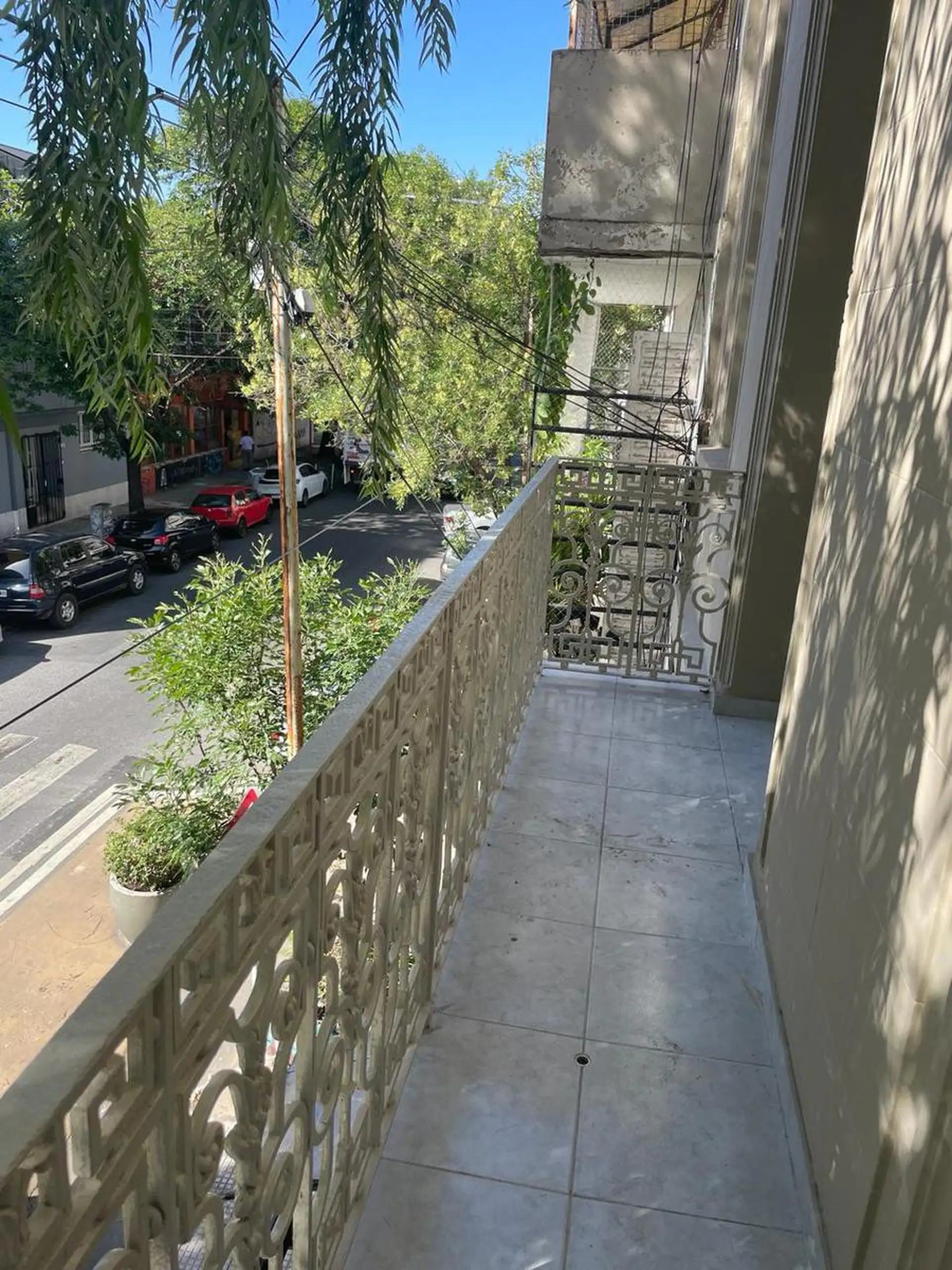 PH в Villa Crespo, вход отдельный. Квартира расположена на первом этаже без лифта, с лестницей. После ремонта, как новая. Имеется 5 спален: 2 спальни на фасаде с выходом на балкон 6x1,10 m², ещё 2 спальни выходят в полуоткрытую галерею, пятая спальня доступна по лестнице и имеет выход на террасу 8,66x9. На первом этаже: кухня 2,60x2,80 и дневная столовая 3x2,60, столовая 5x3, ванная комната с душем и ванная комната. На террасе расположены дополнительная кухня-столовая и ванная комната. ABL указа
