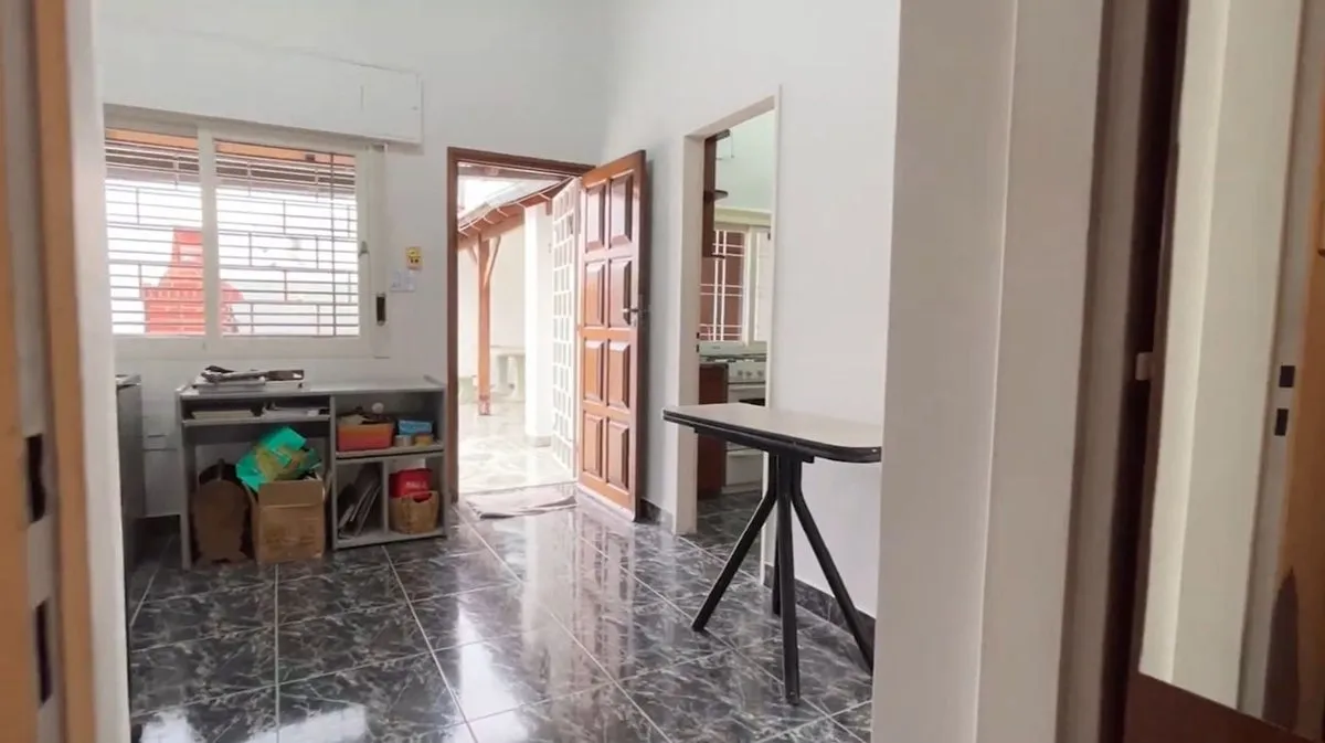 Квартира типа PH в Villa del Parque с отдельным входом, на 3 уровнях. Всего 5 спален: на первом уровне — гостиная, столовая, 2 спальни (одна с ванной комнатой) и 1 полная ванная; кухня отдельная, есть туалет. Все помещения на первом уровне выходят в широкий внутренний двор (патио). На втором уровне — 3-я спальня, отдельный кабинет/комната и доступ к playroom или 4-й комнате. На третьем уровне — отдельная единица с коридором, отдельной кухней, полной ванной, спальней и зоной под гардероб; есть вы