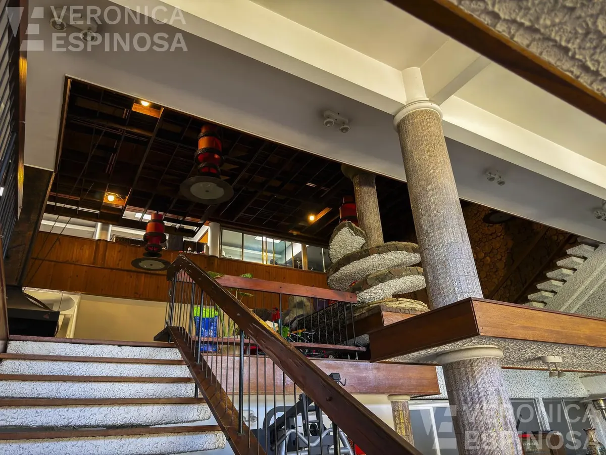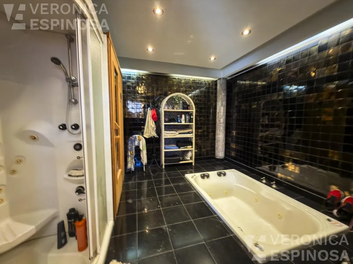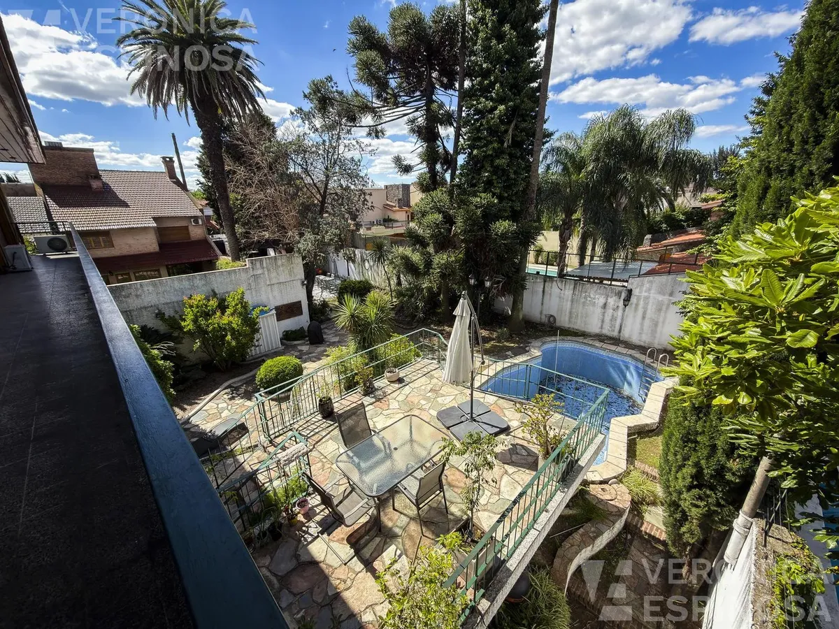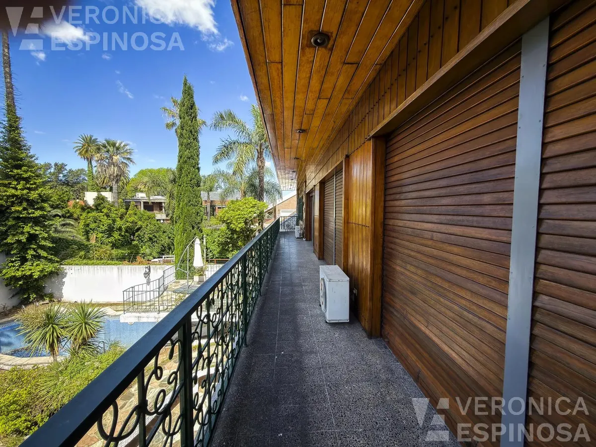 Резиденция в Villa Sarmiento в Morón, на двух участках с двойным въездом (Córdova и Pedro Castelli). В доме более 1.000 m² крытых помещений, 6+ спален, 2 гостиные, столовая-кухня с выходом в парк. В главном люксе есть гардеробная, ванная и балкон; всего 6 ванных комнат (включая туалеты). Также предусмотрены тренажёрный зал, прачечная и отдельное помещение для глажки, балконы-террасы с видом на парк, места для нескольких автомобилей с автоматизированным доступом. На территории: бассейн, зона грил