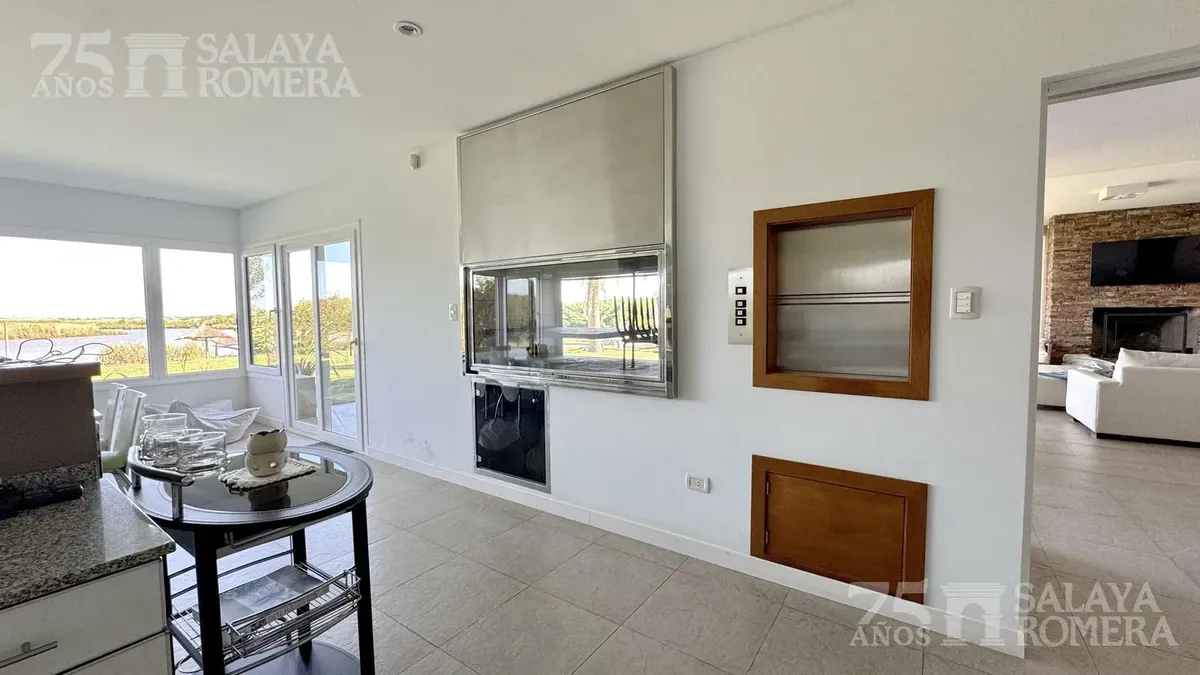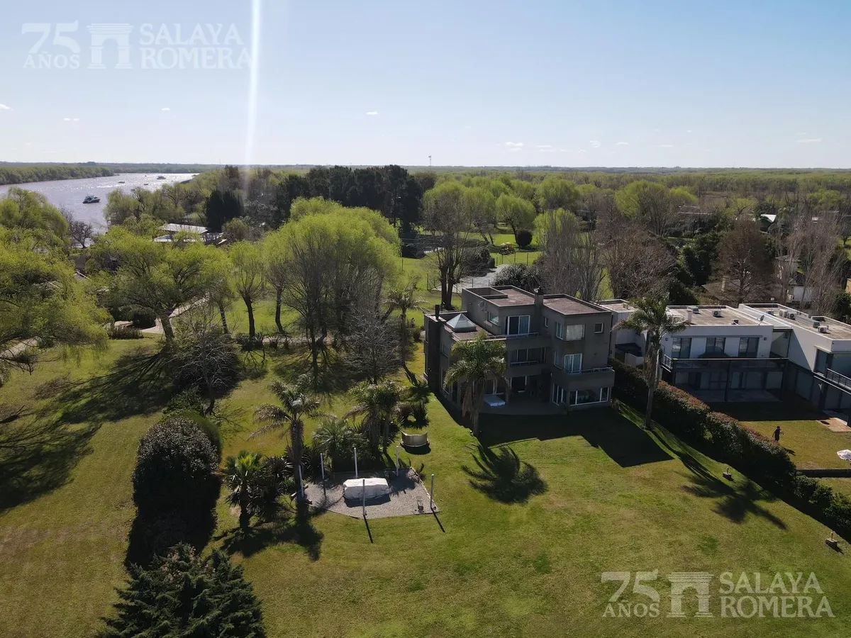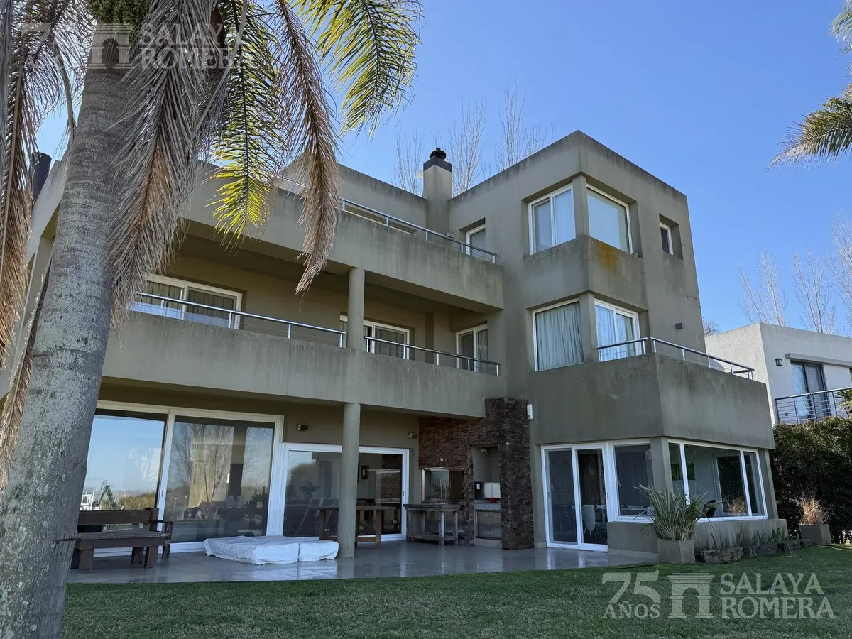 Дом в Isla Santa Mónica, Tigre, с 6 спальнями и общей площадью 3.000 m², построен в 3 уровнях на двух участках. На первом уровне: гостиная, столовая и полностью оборудованная кухня. На втором уровне: четыре спальни en suite, на третьем — большая master suite с гидромассажем и гардеробной. Во внешней части предусмотрена крытая галерея с зоной гриля in-out и грилем, пергола и подъёмник с доступом на все три уровня, а также частный причал и собственный песчаный пляж. Ориентация юго-восточная, с пан