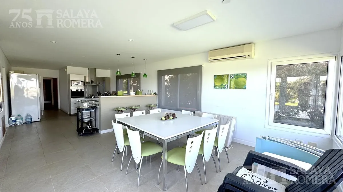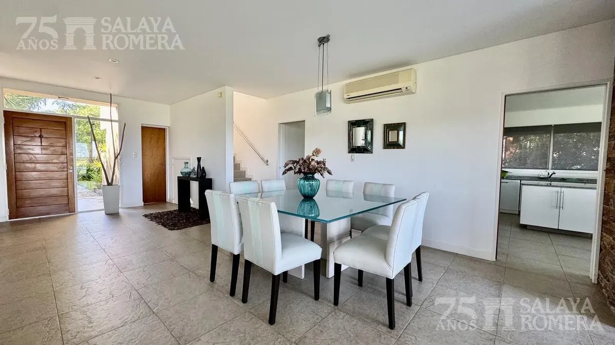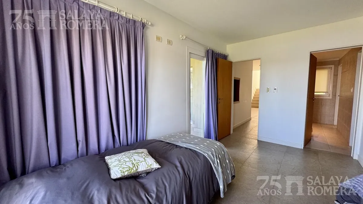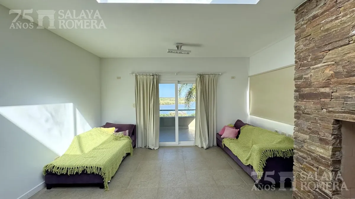 Дом в Isla Santa Mónica, Tigre, с 6 спальнями и общей площадью 3.000 m², построен в 3 уровнях на двух участках. На первом уровне: гостиная, столовая и полностью оборудованная кухня. На втором уровне: четыре спальни en suite, на третьем — большая master suite с гидромассажем и гардеробной. Во внешней части предусмотрена крытая галерея с зоной гриля in-out и грилем, пергола и подъёмник с доступом на все три уровня, а также частный причал и собственный песчаный пляж. Ориентация юго-восточная, с пан