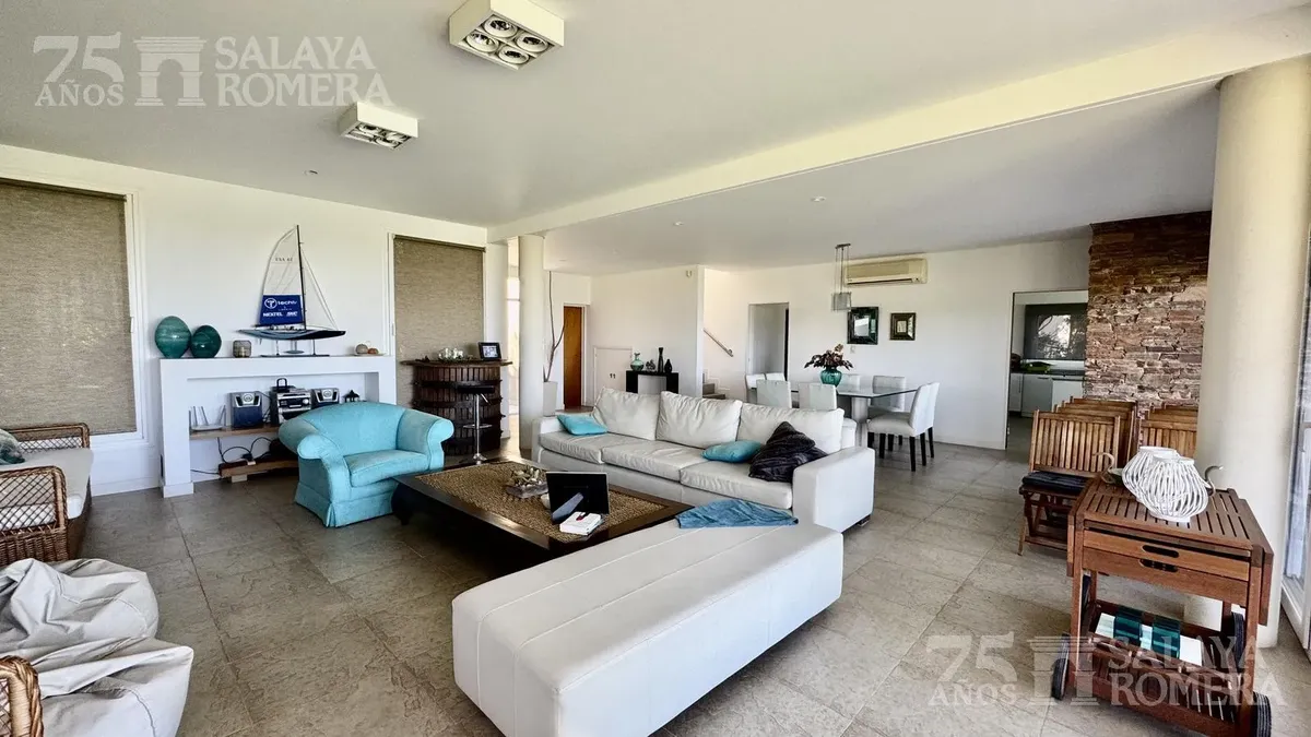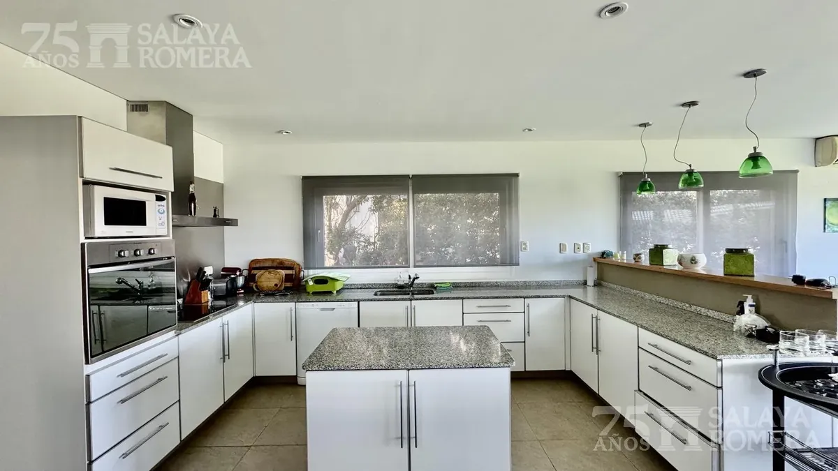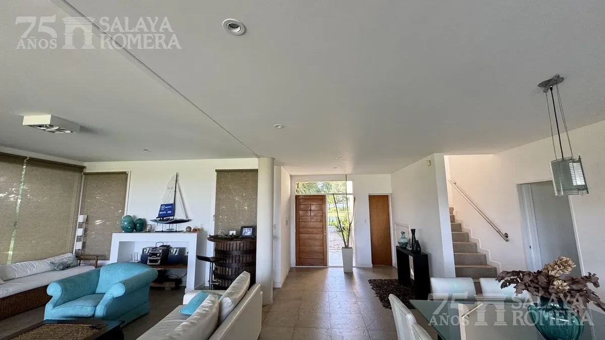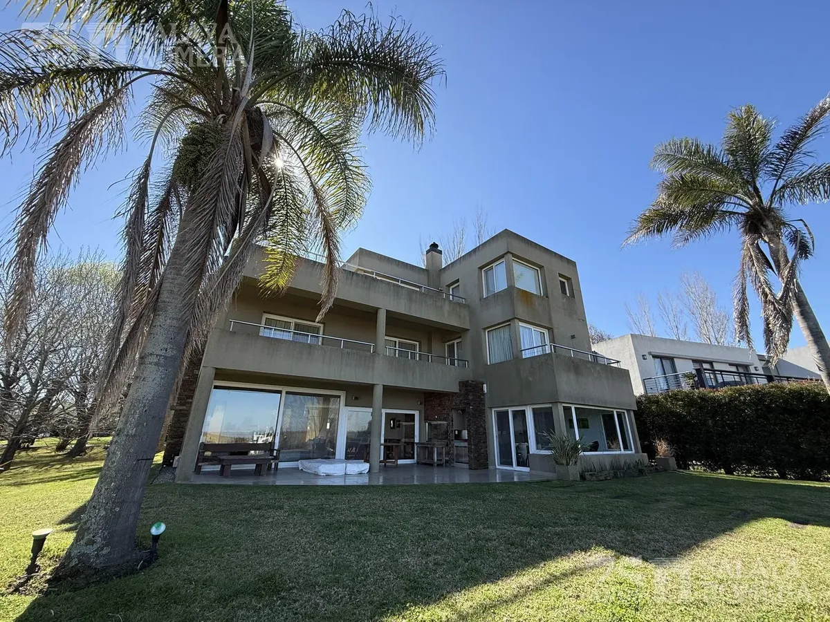 Дом в Isla Santa Mónica в Tigre: 6 спален, 3 этажа, общая площадь 3.000 m². На первом уровне предусмотрены гостиная, столовая и полностью оборудованная кухня. На 2-м этаже — четыре спальни с собственными ванными, на 3-м — большая master suite с гидромассажем и гардеробной. Внешняя часть включает крытую галерею с зоной гриля in-out и грилем, перголу и подъёмник с доступом ко всем трём уровням, а также частный пирс с проходом к марине с закреплённым причалом и собственный песчаный пляж на берегу.