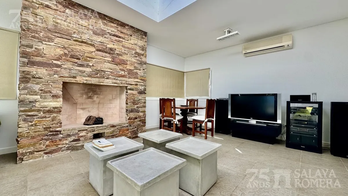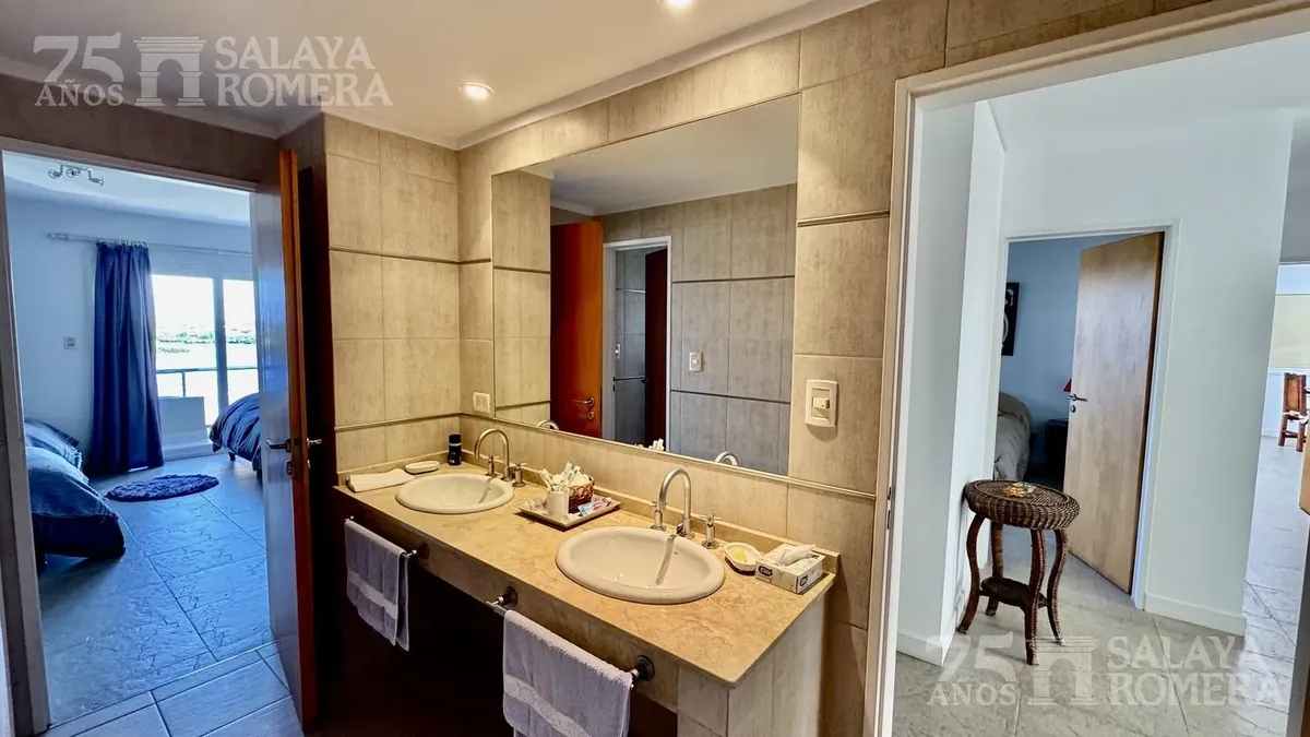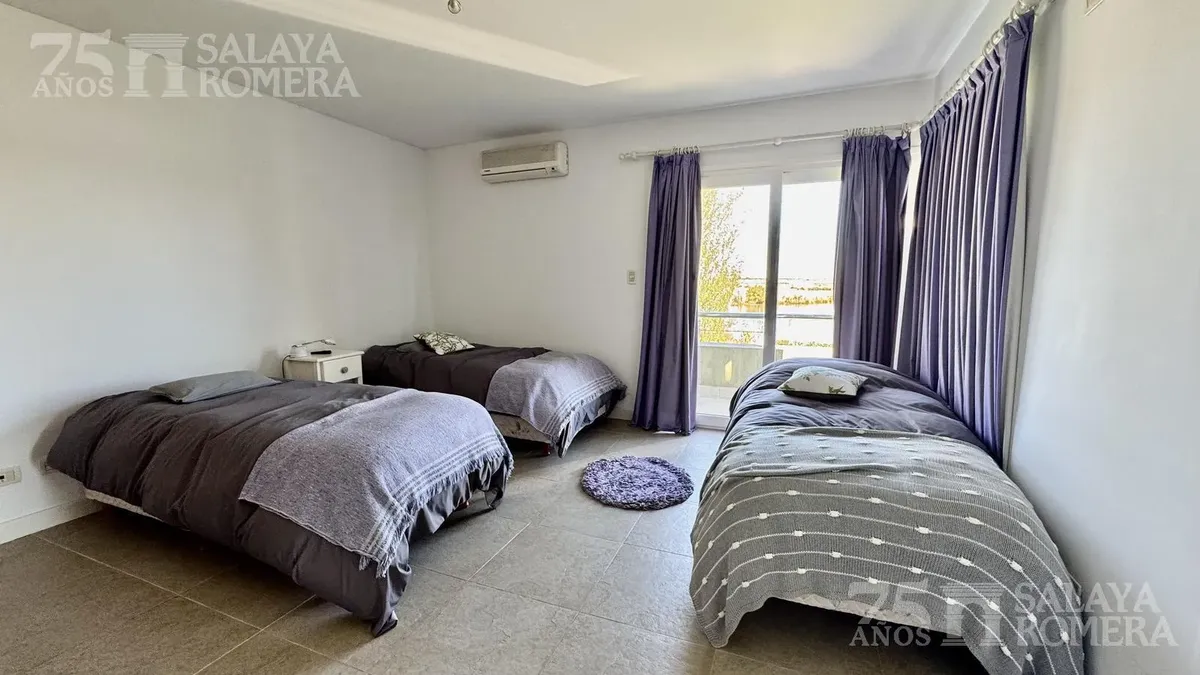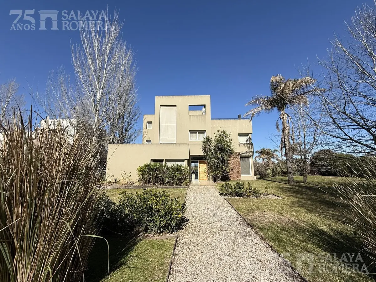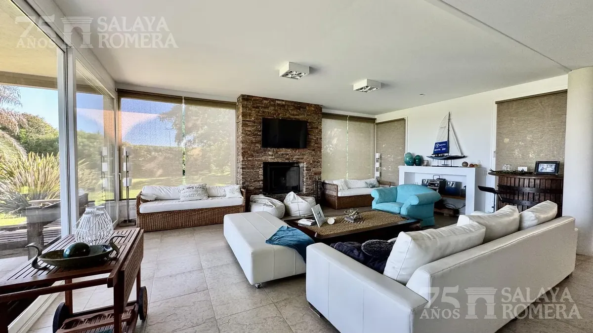 Дом в Isla Santa Mónica в Tigre: 6 спален, 3 этажа, общая площадь 3.000 m². На первом уровне предусмотрены гостиная, столовая и полностью оборудованная кухня. На 2-м этаже — четыре спальни с собственными ванными, на 3-м — большая master suite с гидромассажем и гардеробной. Внешняя часть включает крытую галерею с зоной гриля in-out и грилем, перголу и подъёмник с доступом ко всем трём уровням, а также частный пирс с проходом к марине с закреплённым причалом и собственный песчаный пляж на берегу.