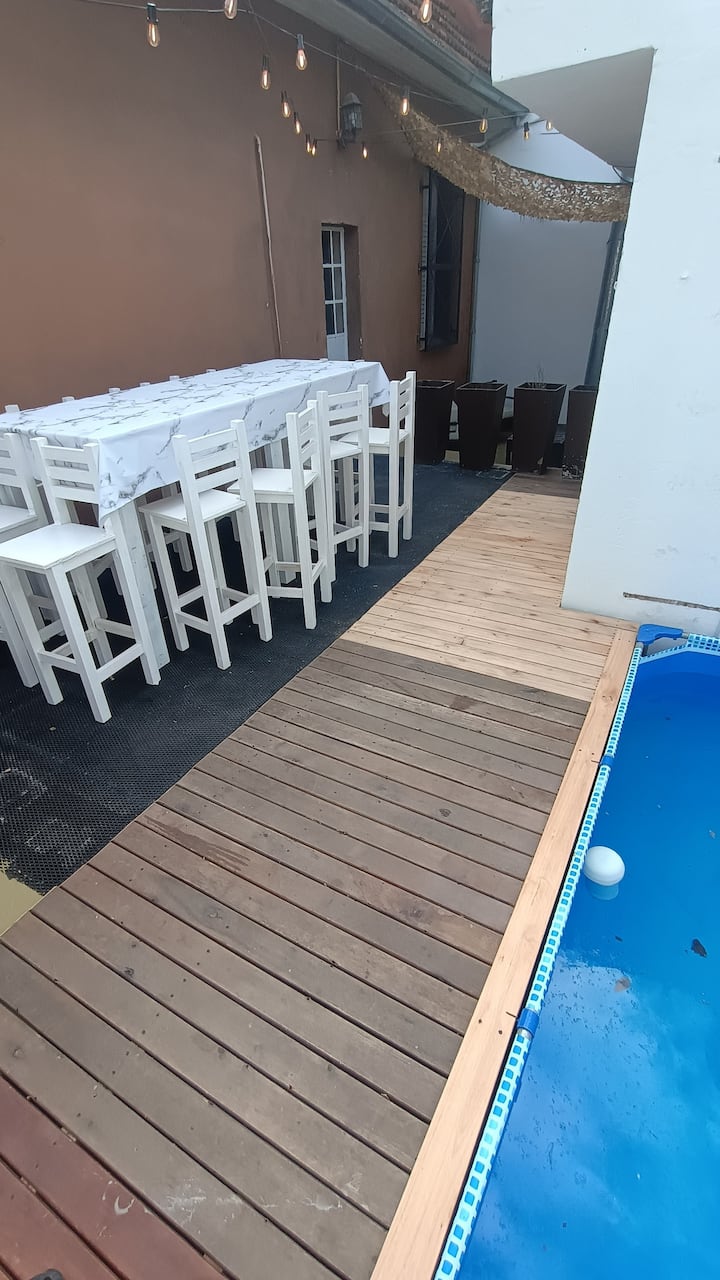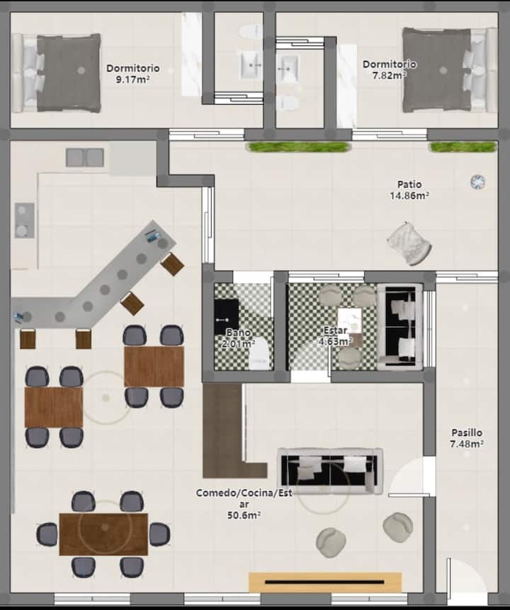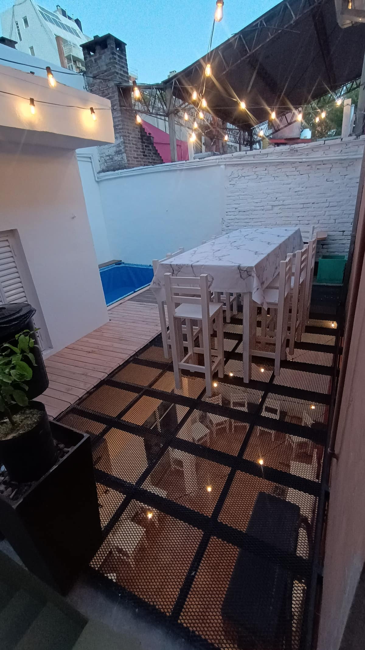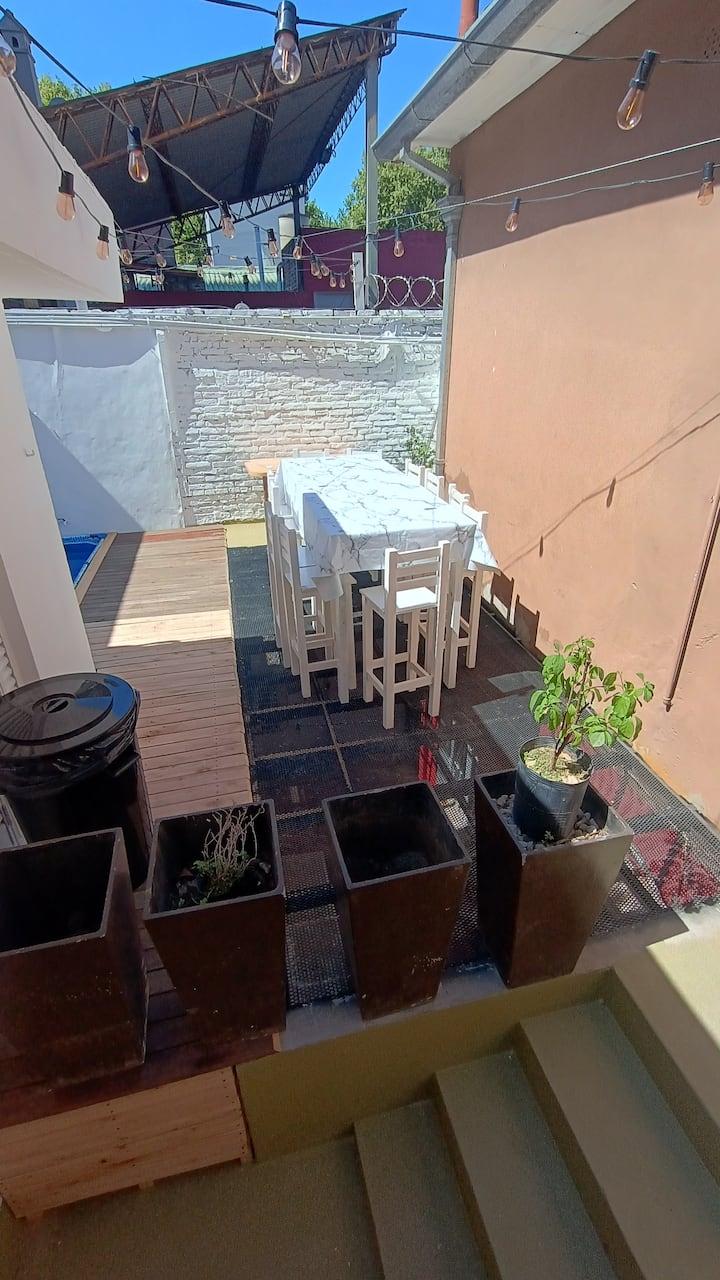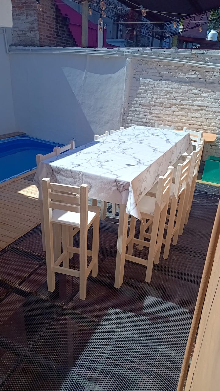 Апартаменты в Palermo с несколькими спальнями: 7 спален. На первом этаже есть кухня с барной стойкой и обеденная зона с 4 столами, 2 комнаты со Smart TV, внутренний патио и 2 двуспальные люкса на первом уровне (PB) с собственными ванными. На верхнем этаже: 2 комнаты на 4 человека, 1 комната на 3 человека с большой ванной с тремя душевыми кабинами, 2 двухместные спальни в люксе и пентхаус для 10 гостей. Указаны бассейн и терраса. Расположение: в 2 кварталах от Shopping Los Arcos.