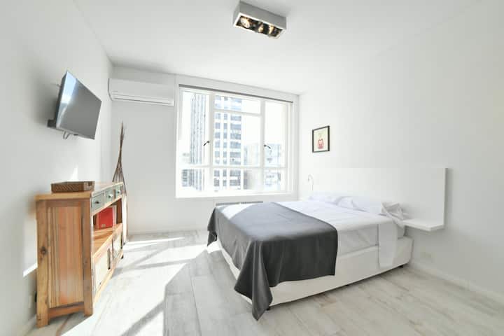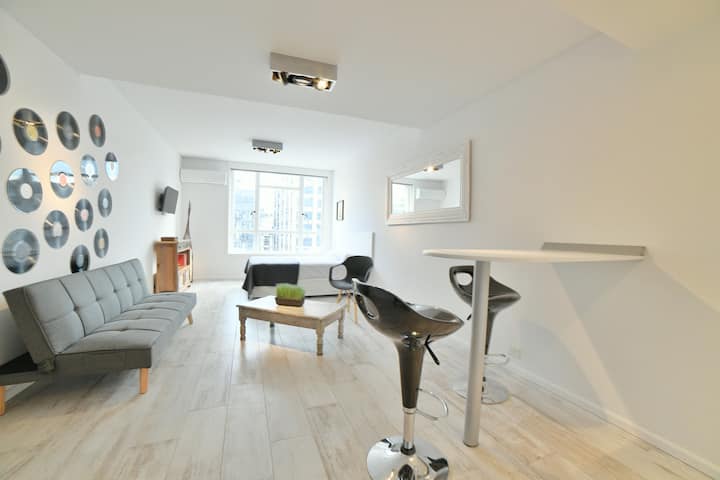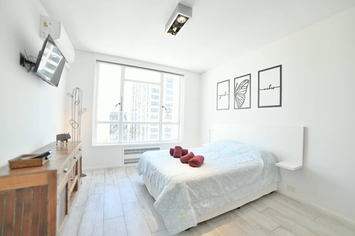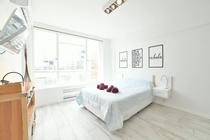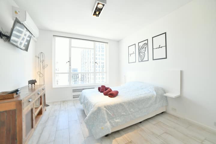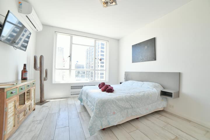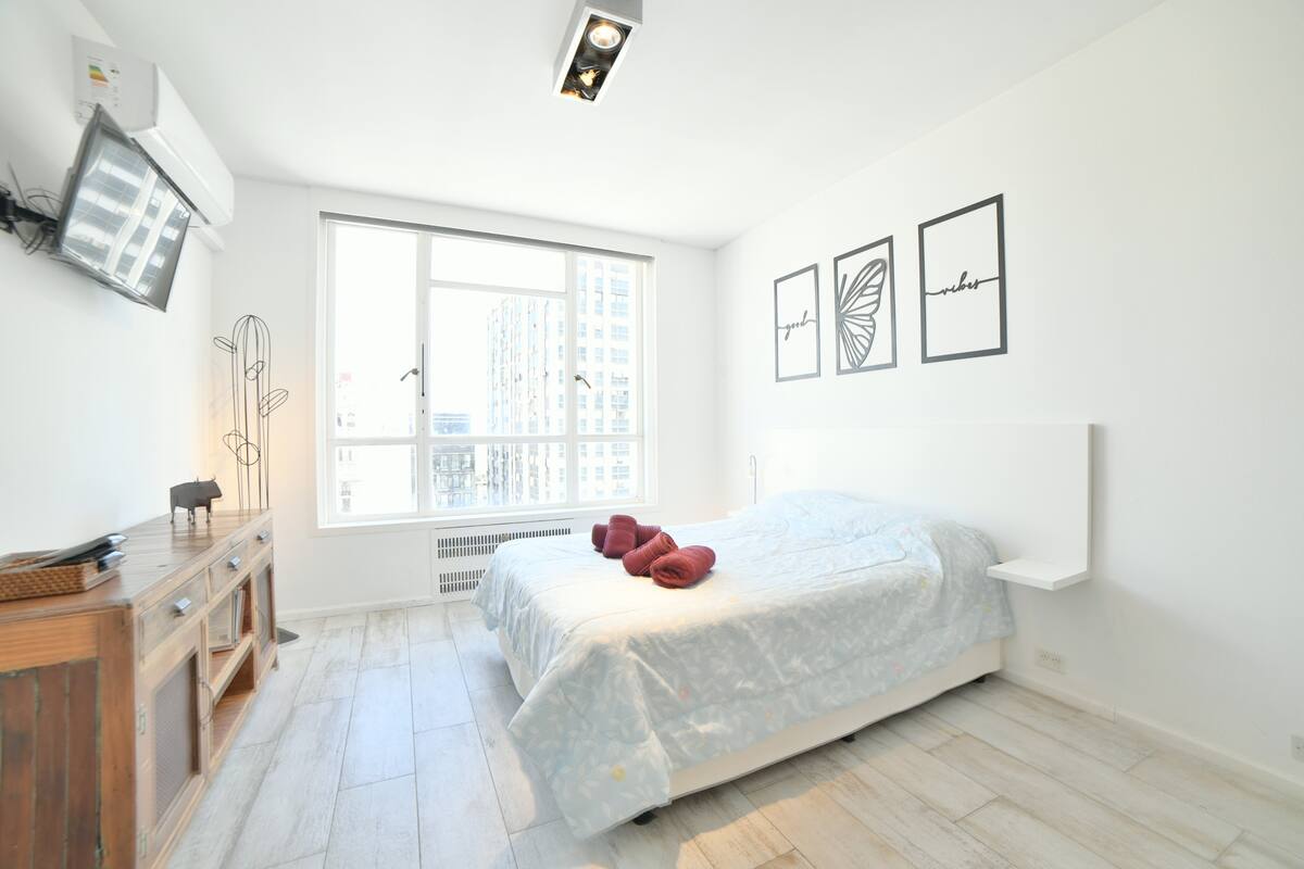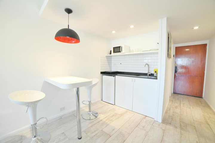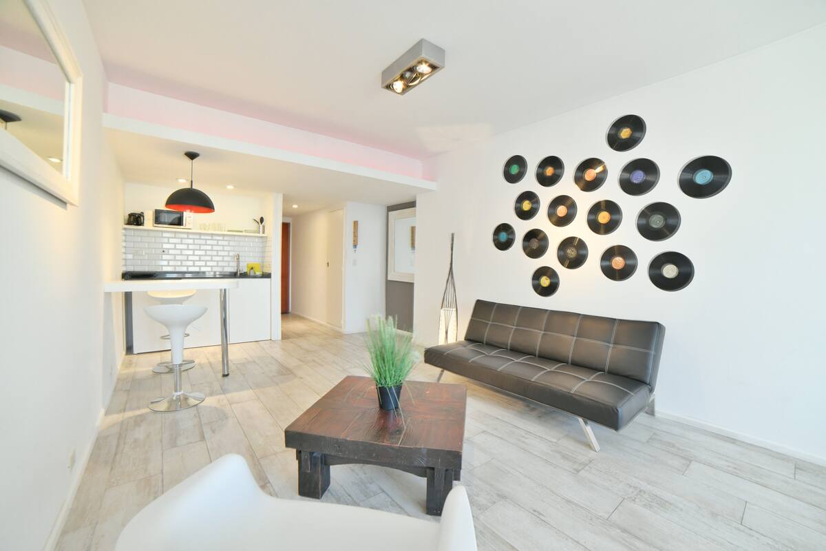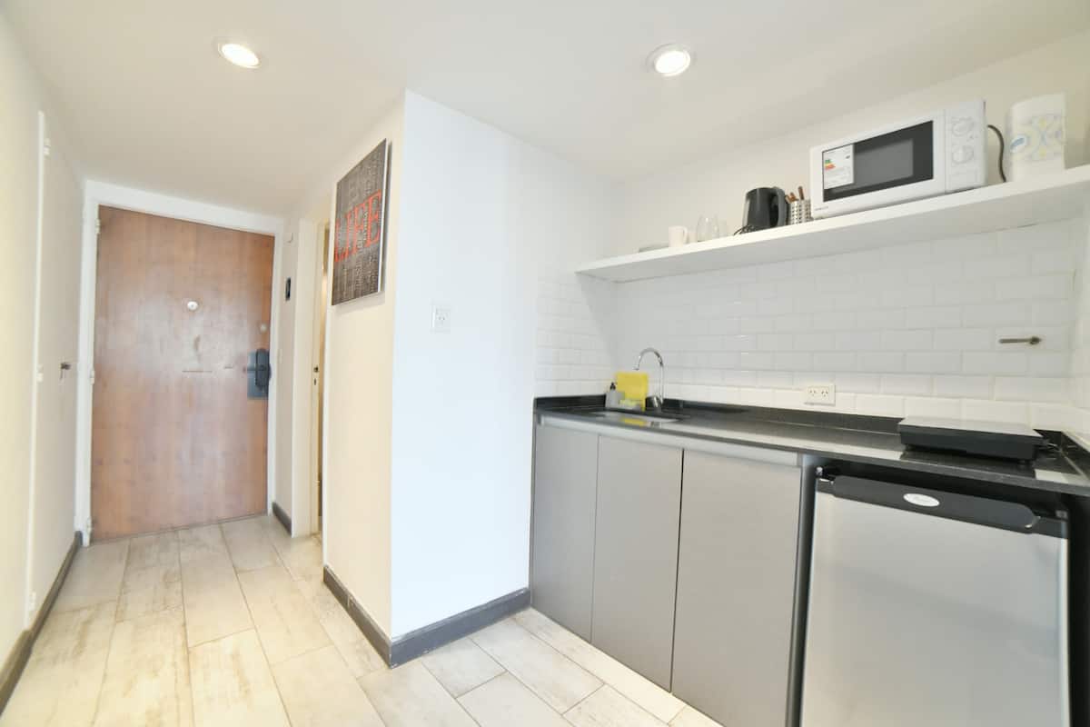 В одном здании размещены 7 независимых квартир. Каждая квартира рассчитана на размещение 2 человек. По описанию, территория относится к Retiro в Buenos Aires и находится в пешей доступности от Av Corrientes и Obelisco, а также от Florida, Casa Rosada, San Telmo, Recoleta и Teatro Colón. Указано, что в каждой квартире ничего не разделяется с другими арендаторами и никто не проживает; услуги включают электричество, интернет и Cable TV.