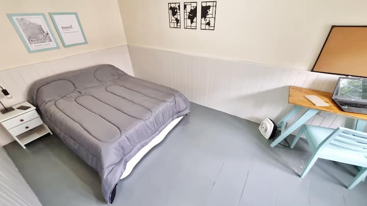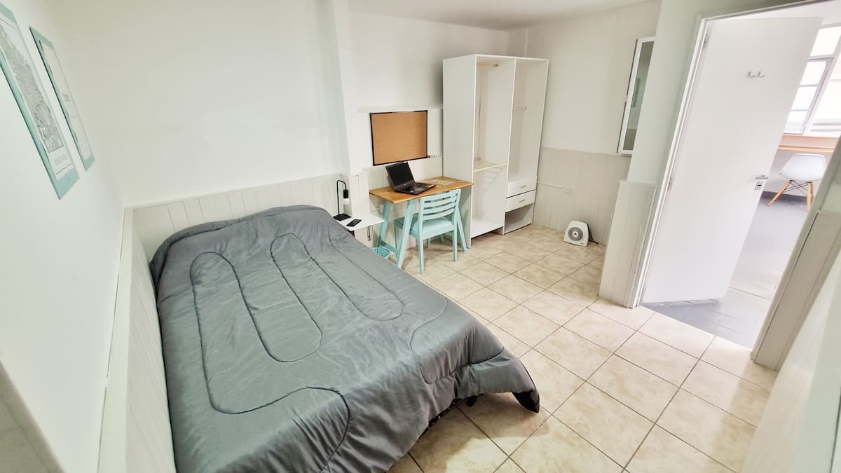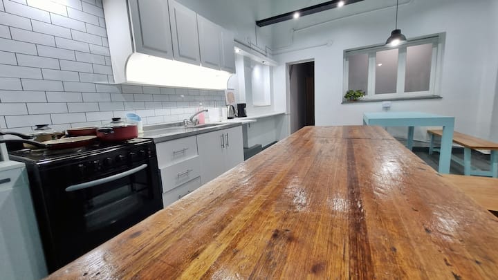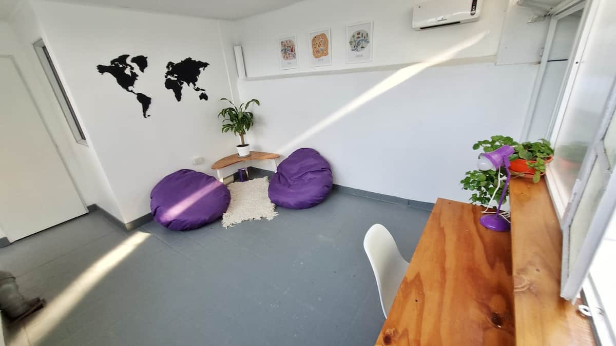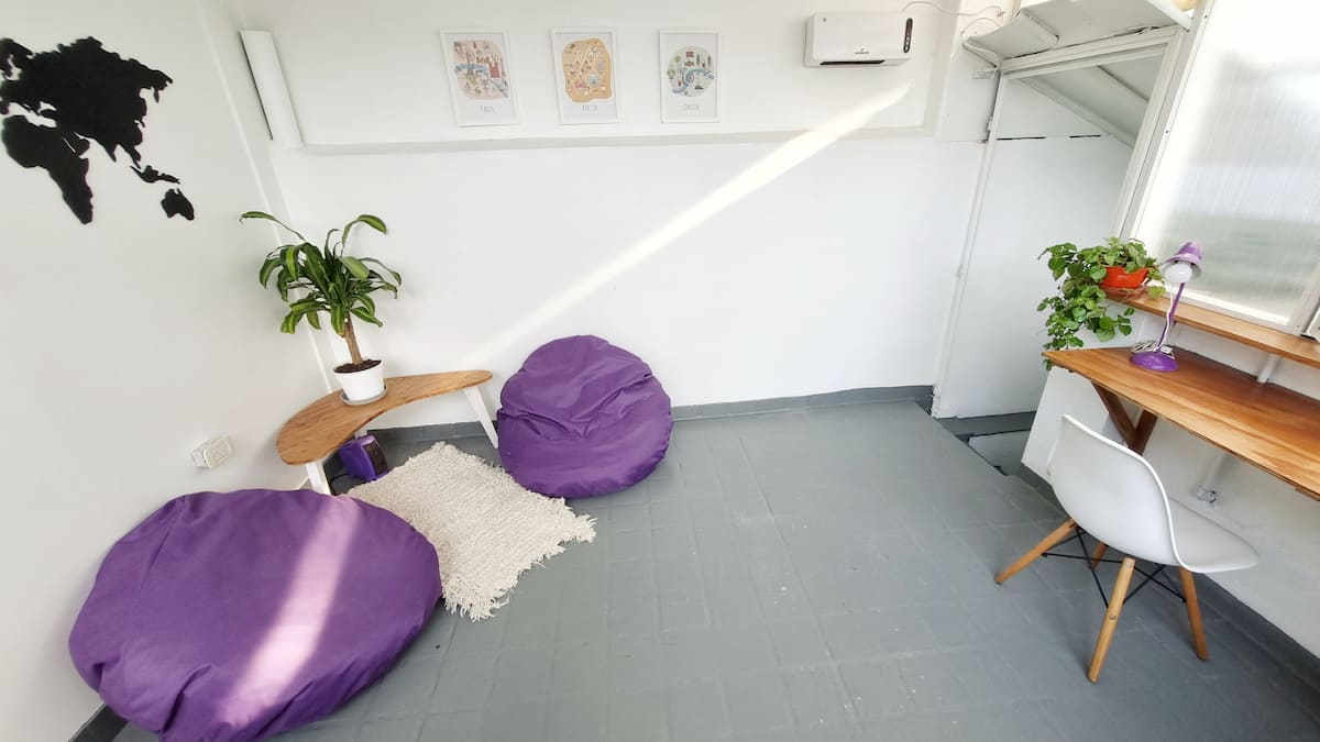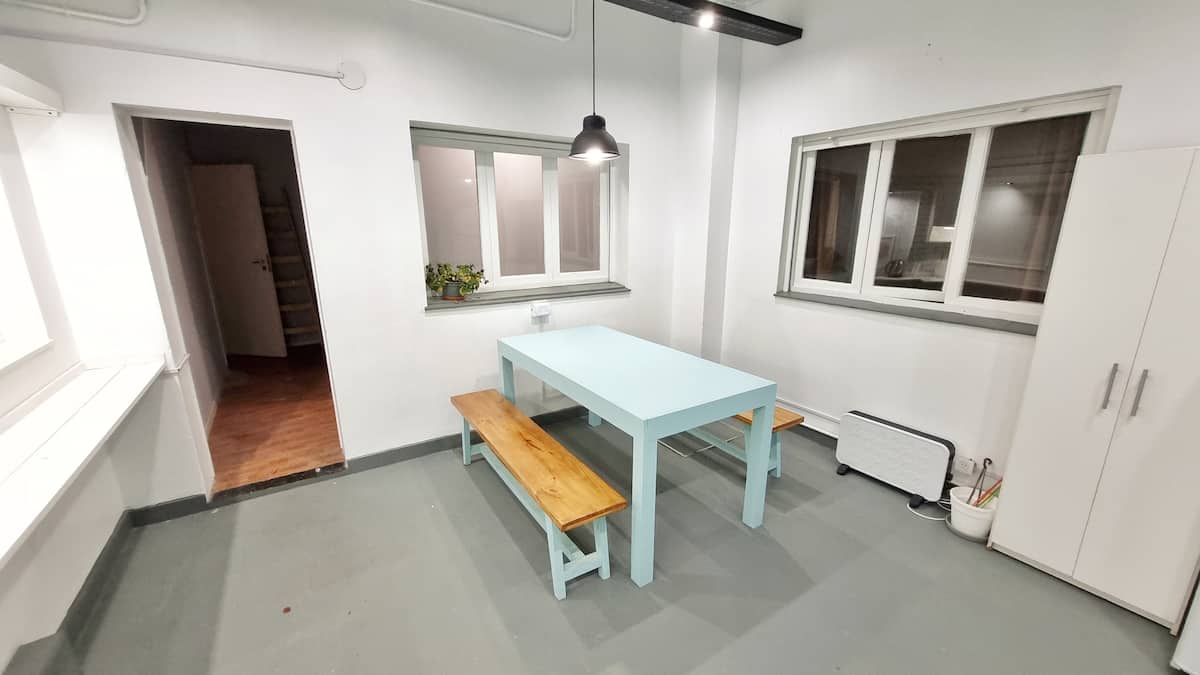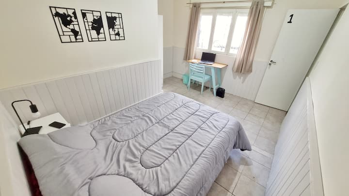 Дом с 7 приватными комнатами: в каждой установлены двуспальная кровать, шкаф, рабочий стол со стулом, вентилятор и отопление. Пять комнат имеют отдельные полные ванные комнаты, ещё одна ванная комната общая. Есть обеденная зона и полностью оборудованная кухня с 2 холодильниками, духовкой, микроволновой печью, стиральной машиной и кухонной утварью, а также холодильник(и) на кухне. На территории дома есть терраса с столами и зоной гриля; на цокольном этаже размещены 2 комнаты с дворовыми окнами и