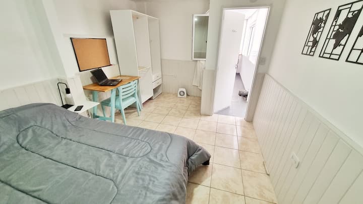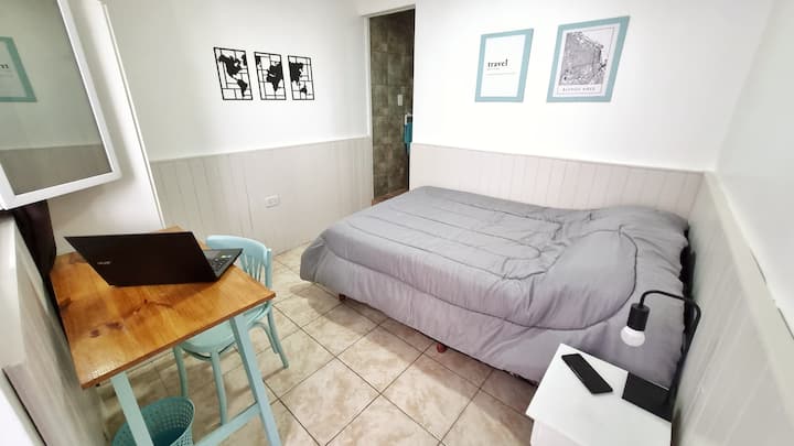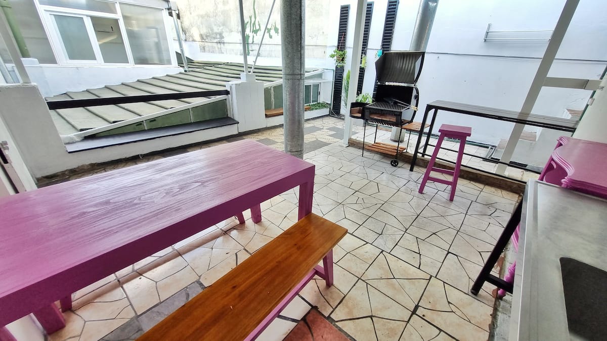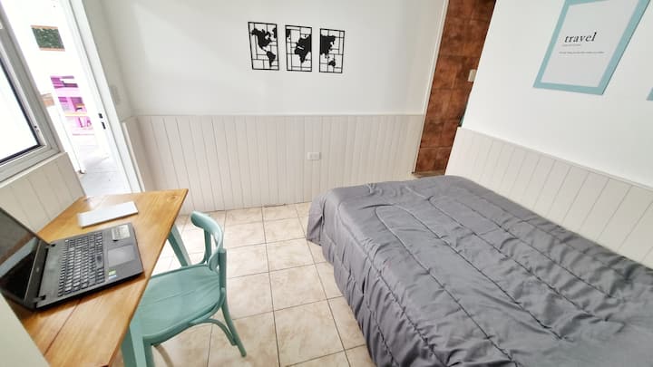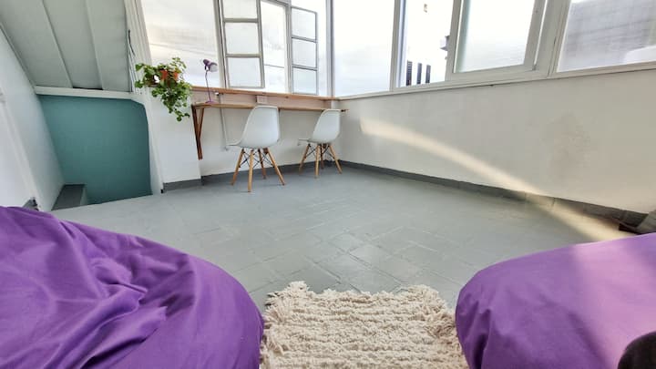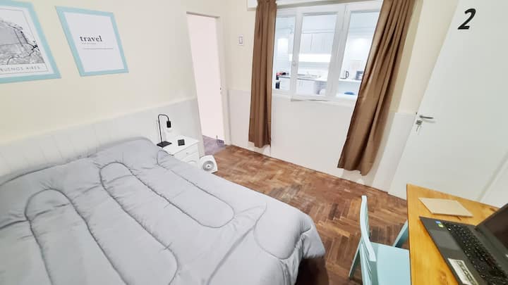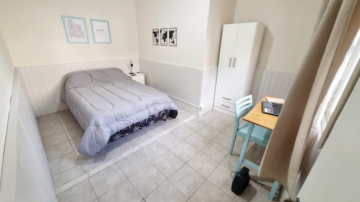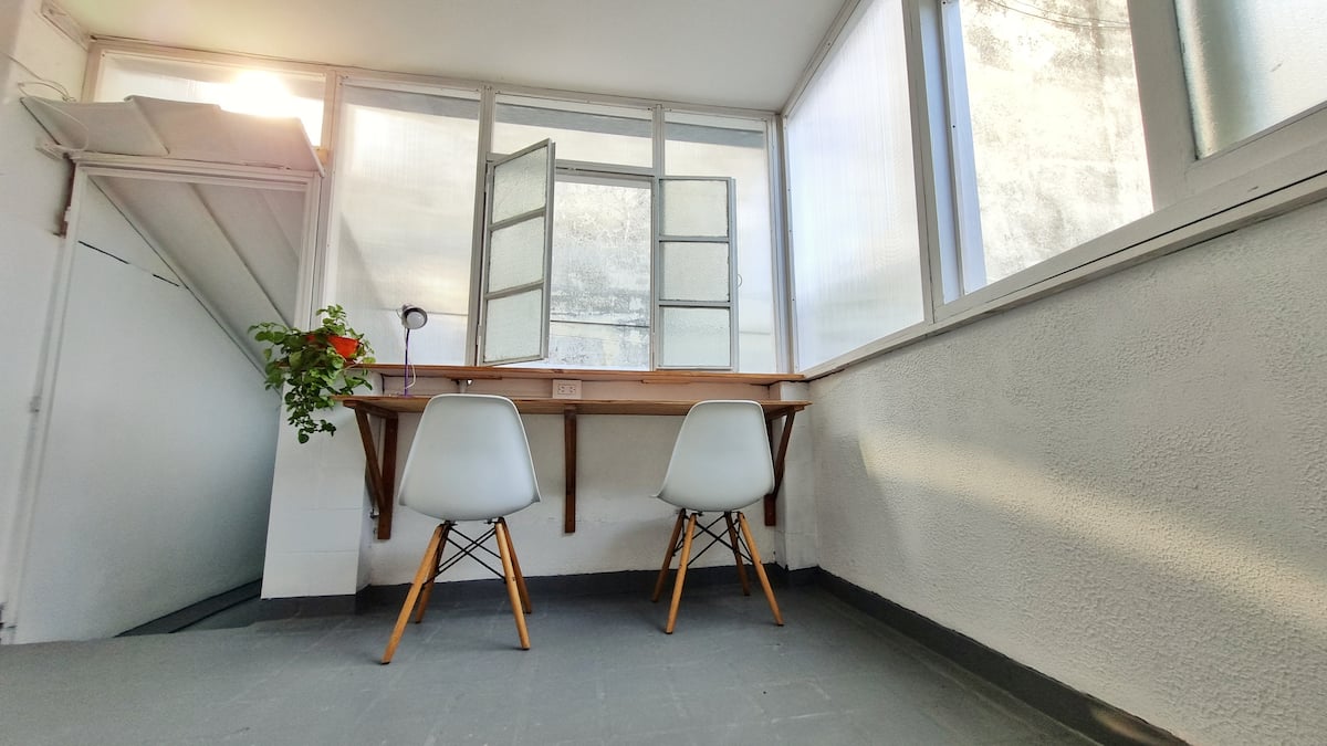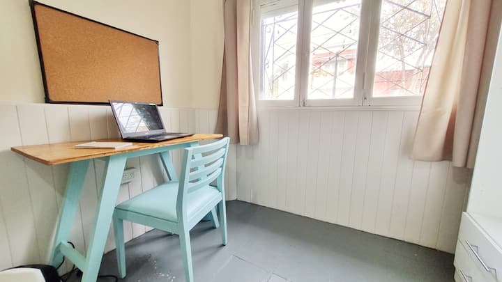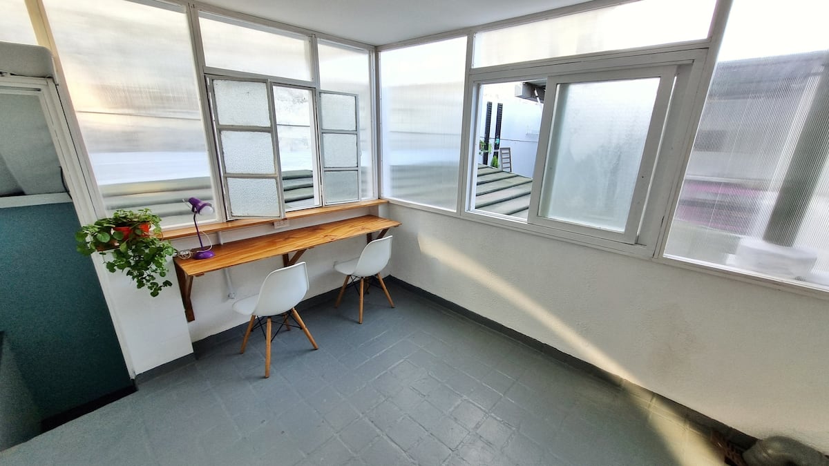 Дом с 7 приватными комнатами: в каждой установлены двуспальная кровать, шкаф, рабочий стол со стулом, вентилятор и отопление. Пять комнат имеют отдельные полные ванные комнаты, ещё одна ванная комната общая. Есть обеденная зона и полностью оборудованная кухня с 2 холодильниками, духовкой, микроволновой печью, стиральной машиной и кухонной утварью, а также холодильник(и) на кухне. На территории дома есть терраса с столами и зоной гриля; на цокольном этаже размещены 2 комнаты с дворовыми окнами и