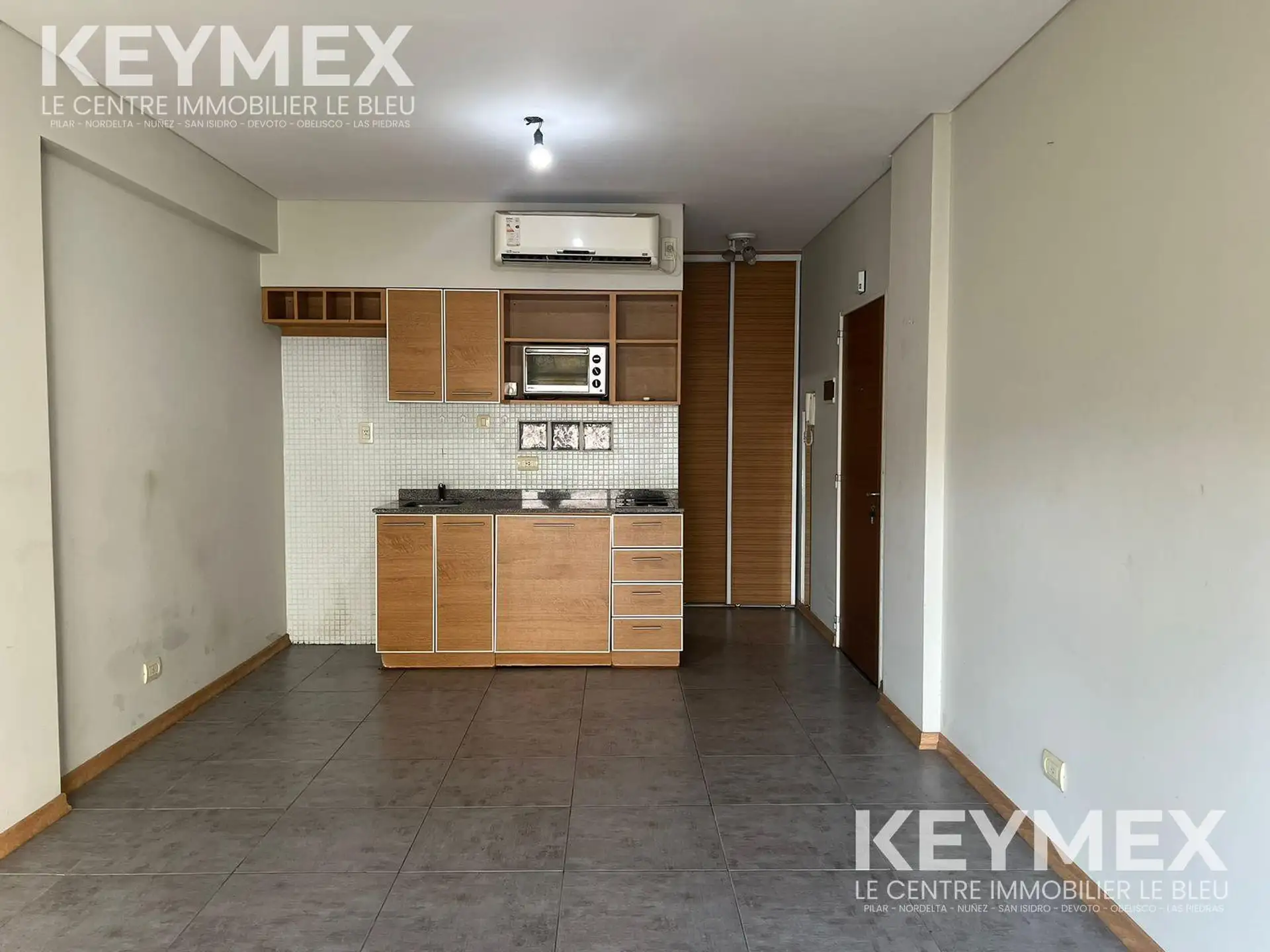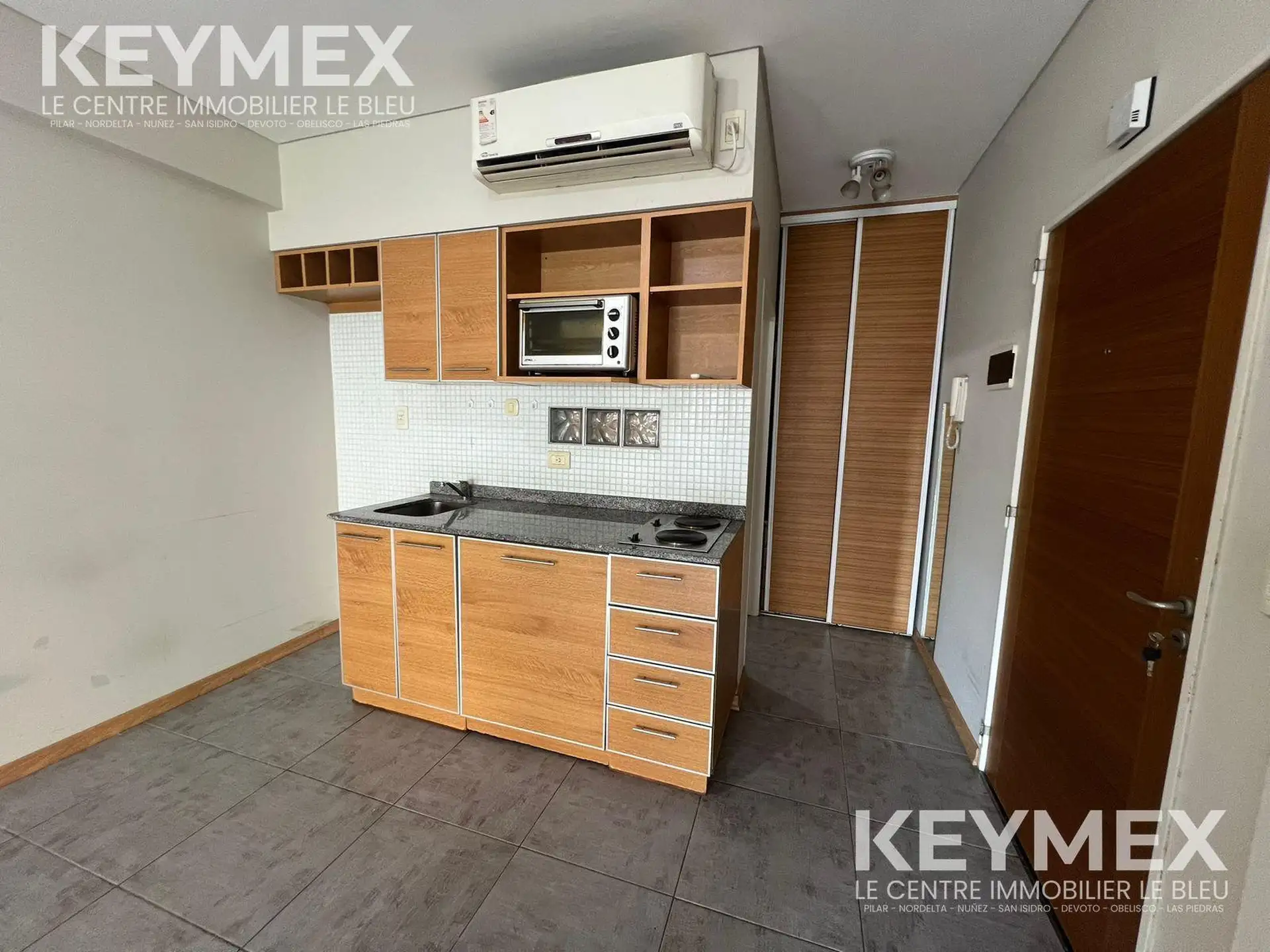 Квартира-студия площадью не указана в Almagro, Río de Janeiro al 800. Пространство с выходом на балкон. Кухня с интегрированными нижними шкафами и навесной секцией, есть место для хранения. Кондиционер, совмещённая ванная комната с ванной.