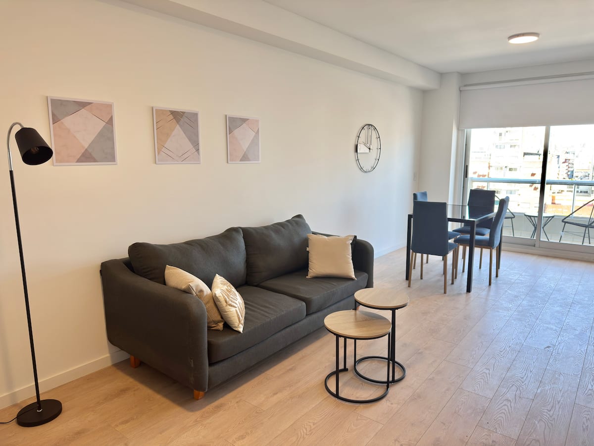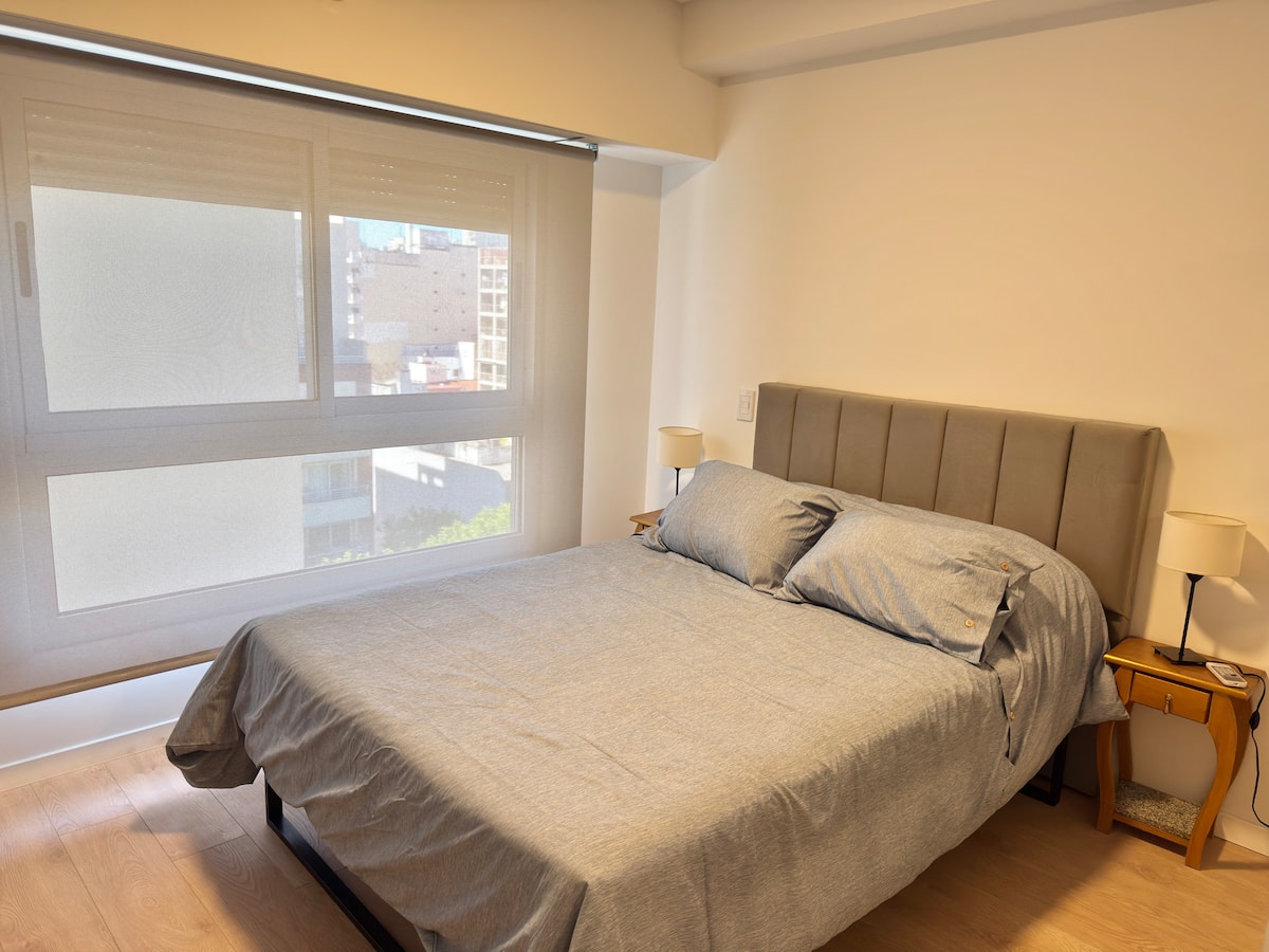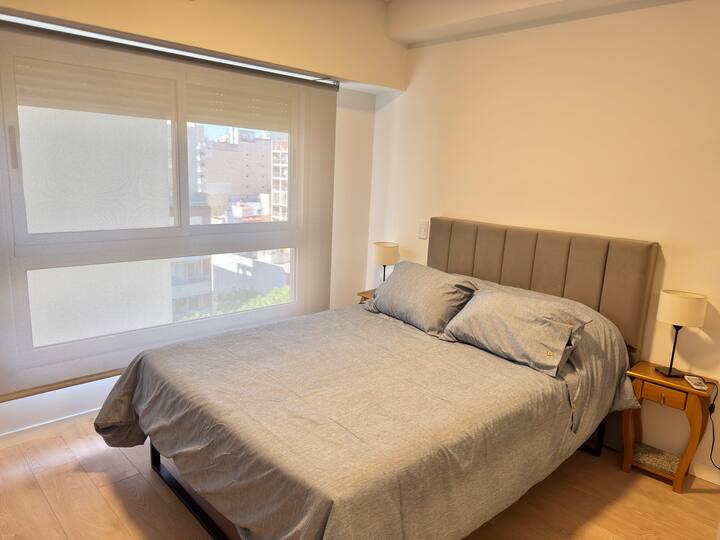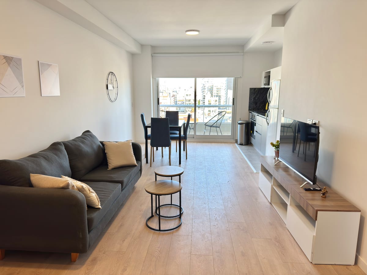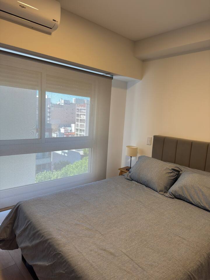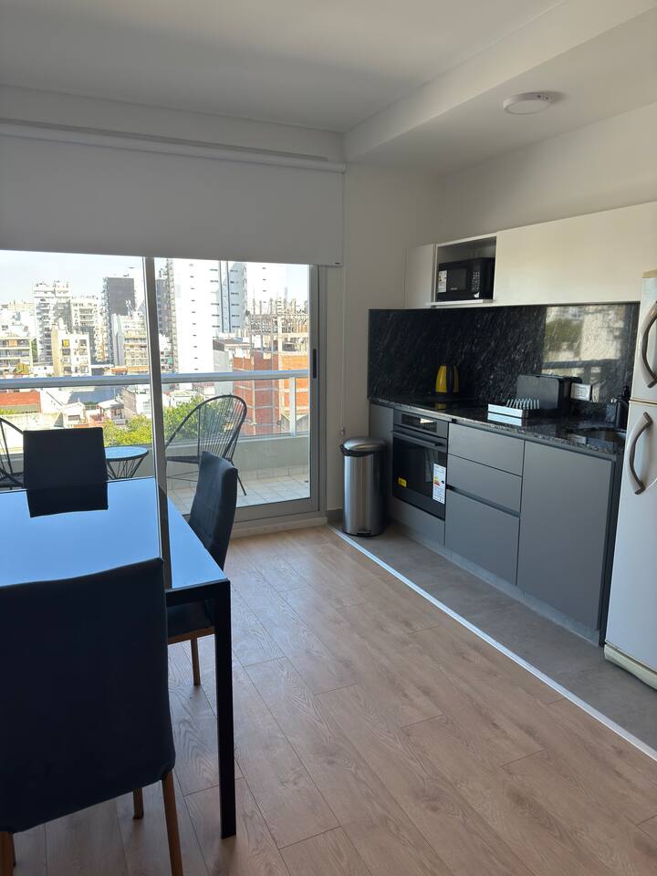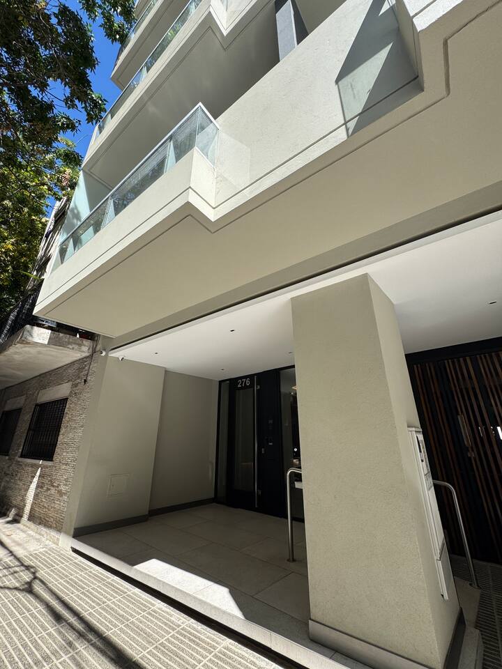 Квартира-студия площадью не указана в Almagro, окна на улицу. В помещении двуспальная кровать, шкаф для хранения, Smart TV, рабочий стол и диван на 2 места, а также кондиционер горячий/холодный. Кухня укомплектована холодильником с морозильной камерой, электрической стеклокерамической плитой и духовкой, микроволновой печью, кофеваркой, тостером и соковыжималкой. Ванная комната с душем. 4 квартала до Av. Corrientes и станции метро Línea B, 2 квартала до Hospital Italiano.
