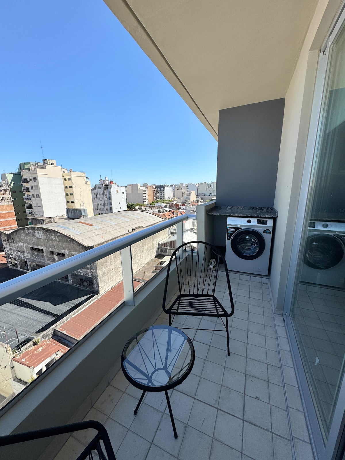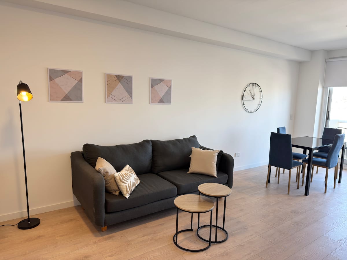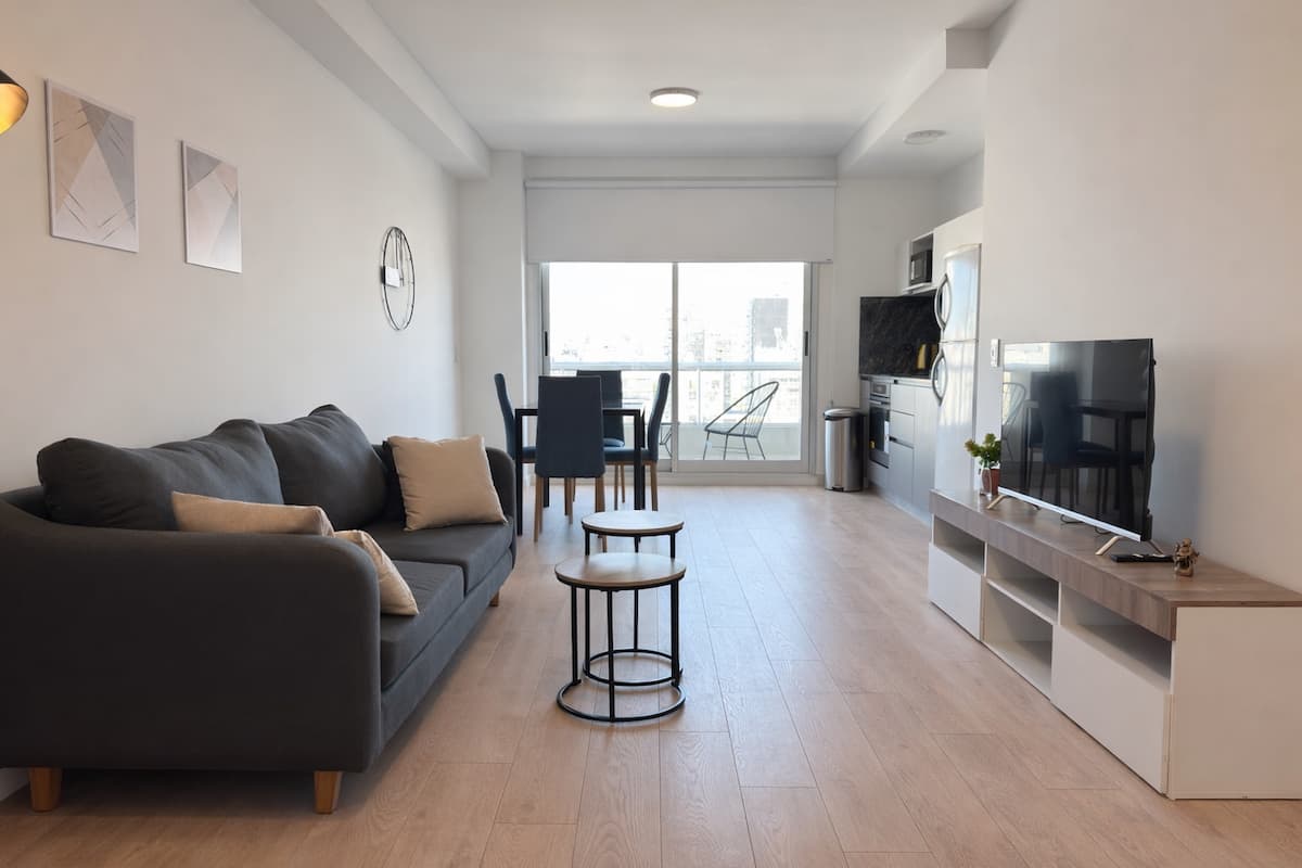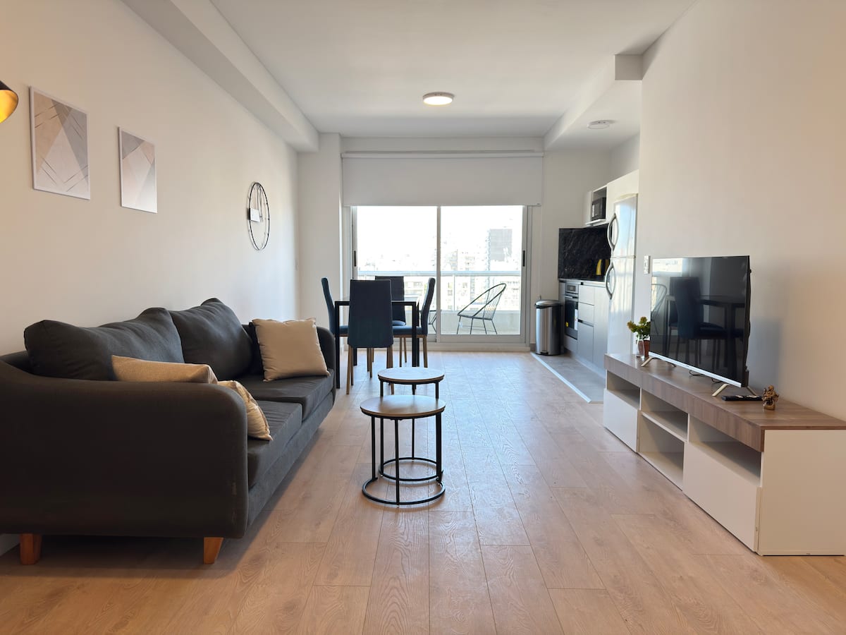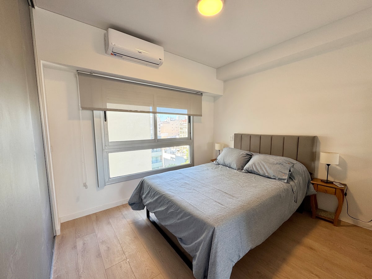Квартира-студия площадью не указана в Almagro, окна на улицу. В помещении двуспальная кровать, шкаф для хранения, Smart TV, рабочий стол и диван на 2 места, а также кондиционер горячий/холодный. Кухня укомплектована холодильником с морозильной камерой, электрической стеклокерамической плитой и духовкой, микроволновой печью, кофеваркой, тостером и соковыжималкой. Ванная комната с душем. 4 квартала до Av. Corrientes и станции метро Línea B, 2 квартала до Hospital Italiano.