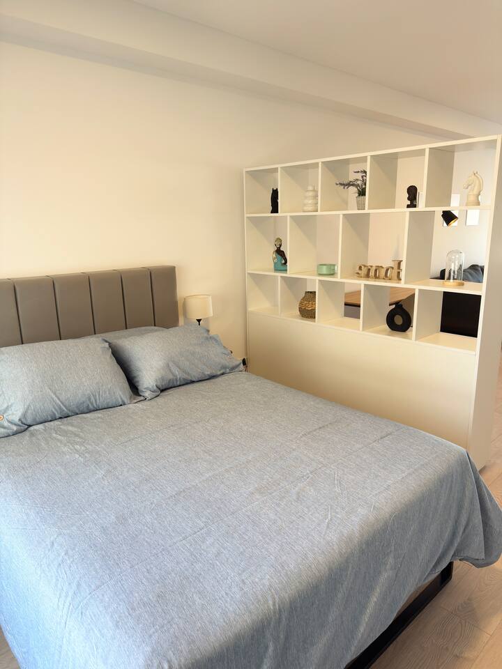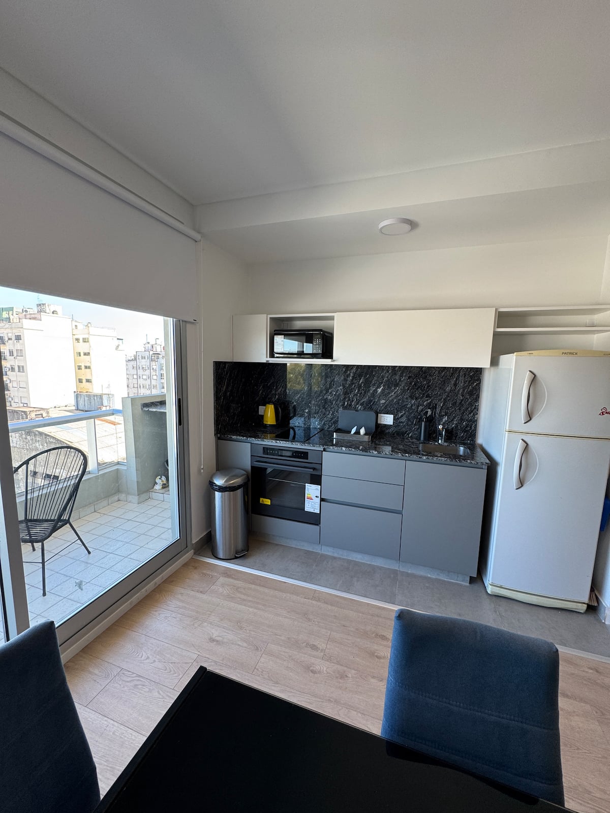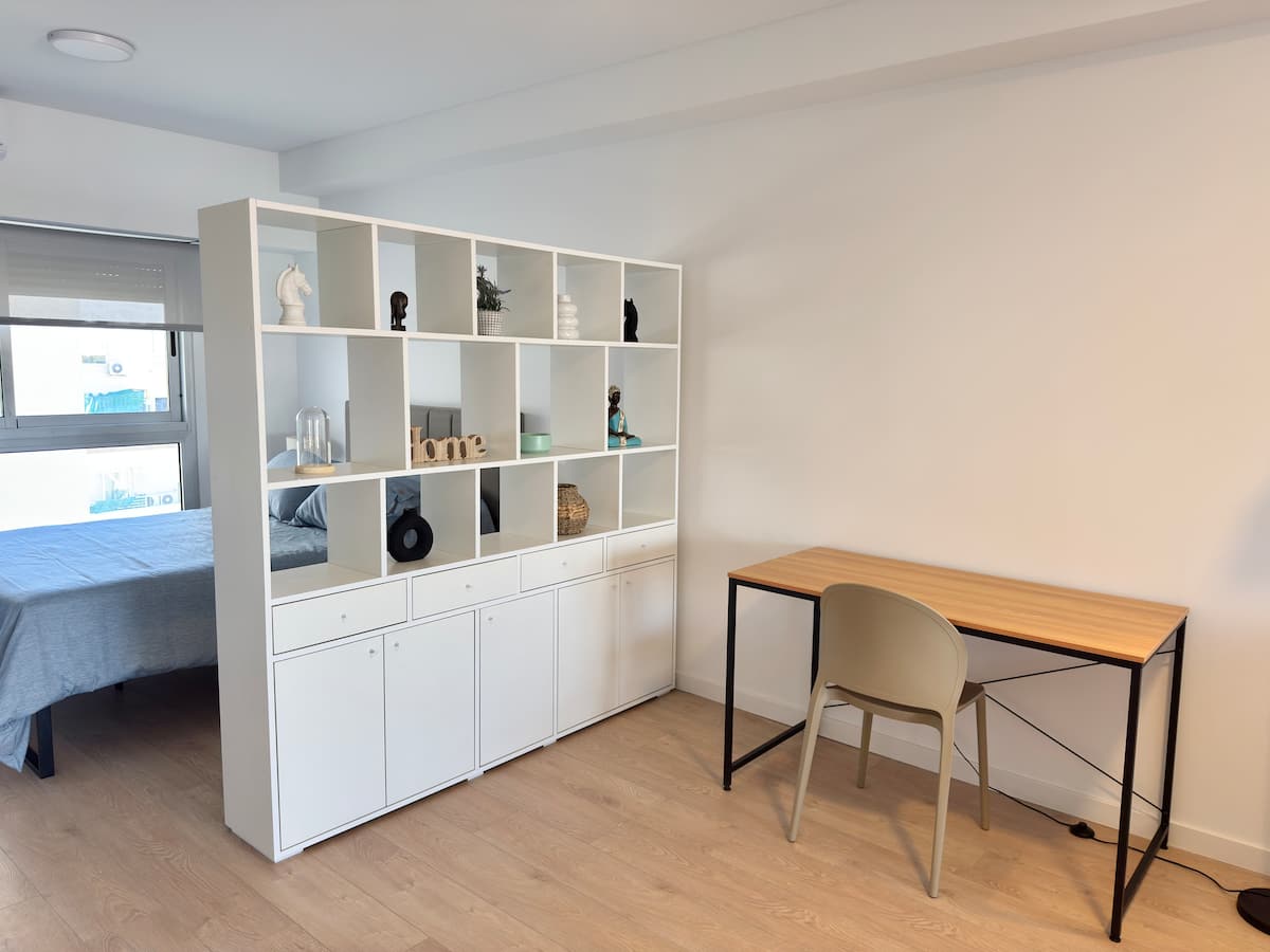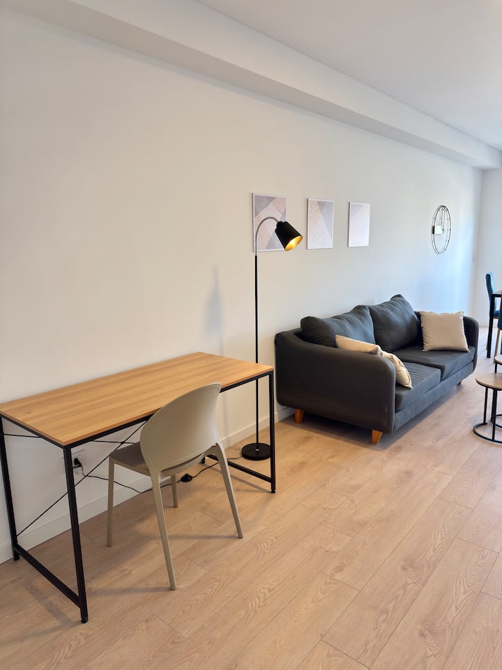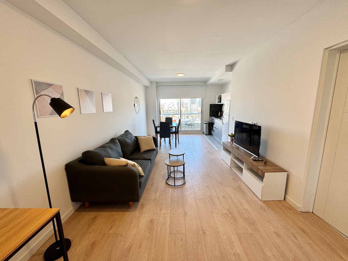 Квартира-студия площадью не указана в Almagro, окна на улицу. В помещении двуспальная кровать, шкаф для хранения, Smart TV, рабочий стол и диван на 2 места, а также кондиционер горячий/холодный. Кухня укомплектована холодильником с морозильной камерой, электрической стеклокерамической плитой и духовкой, микроволновой печью, кофеваркой, тостером и соковыжималкой. Ванная комната с душем. 4 квартала до Av. Corrientes и станции метро Línea B, 2 квартала до Hospital Italiano.