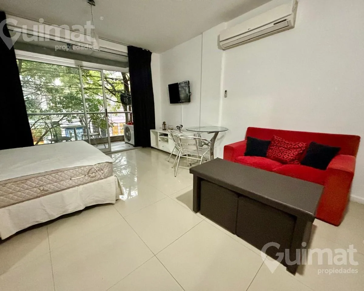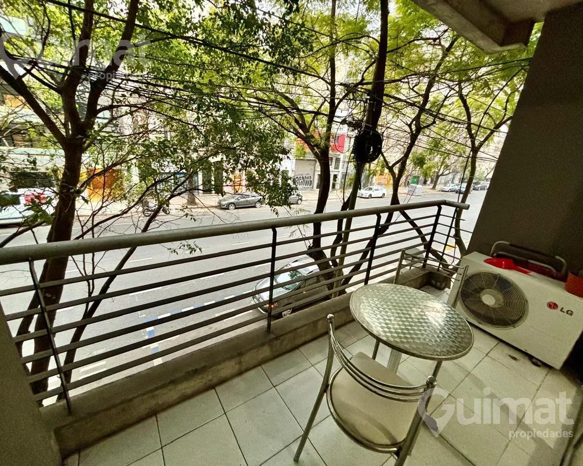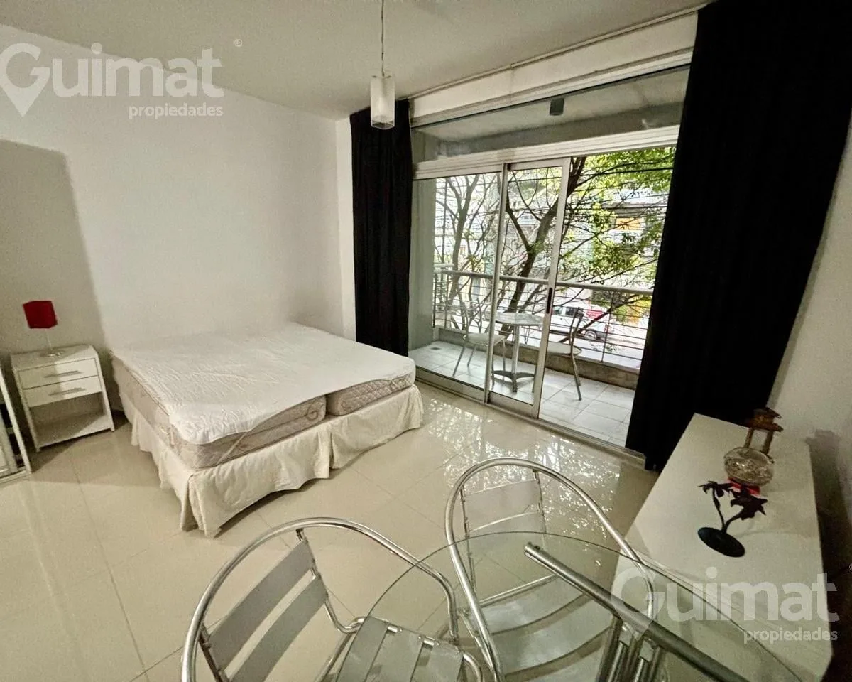 С меблированной квартире-студии площадью не указаны, с балконом на улицу, в Almagro. Временная аренда рассчитана на 2 человека. В здании есть laundry, бассейн и общая гостиная для жильцов (SUM). Стоимость: $650.000; коммунальные платежи здания, вода и AYSA включены, отдельно оплачиваются электричество и интернет. Экспенсы: около $150.000. Транспорт: автобусы 19, 36, 90, 92, 99, 106, 109, 127, 140, 151, 160, 168.