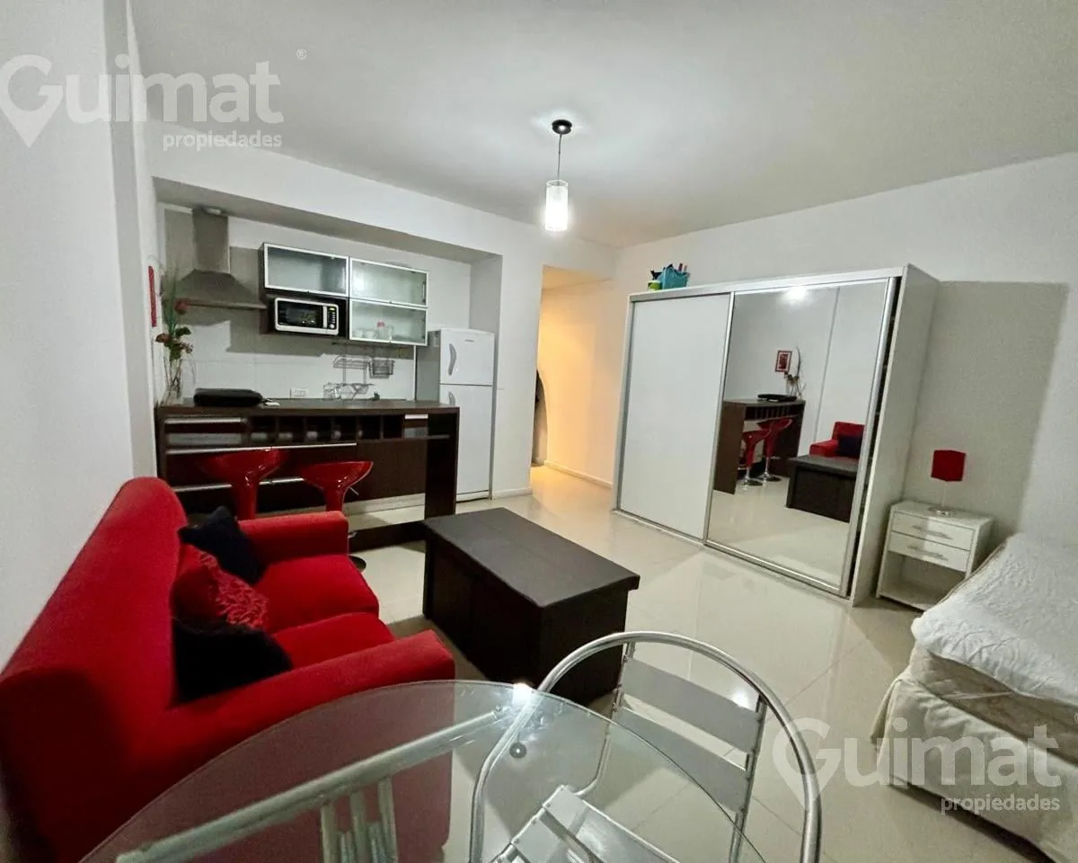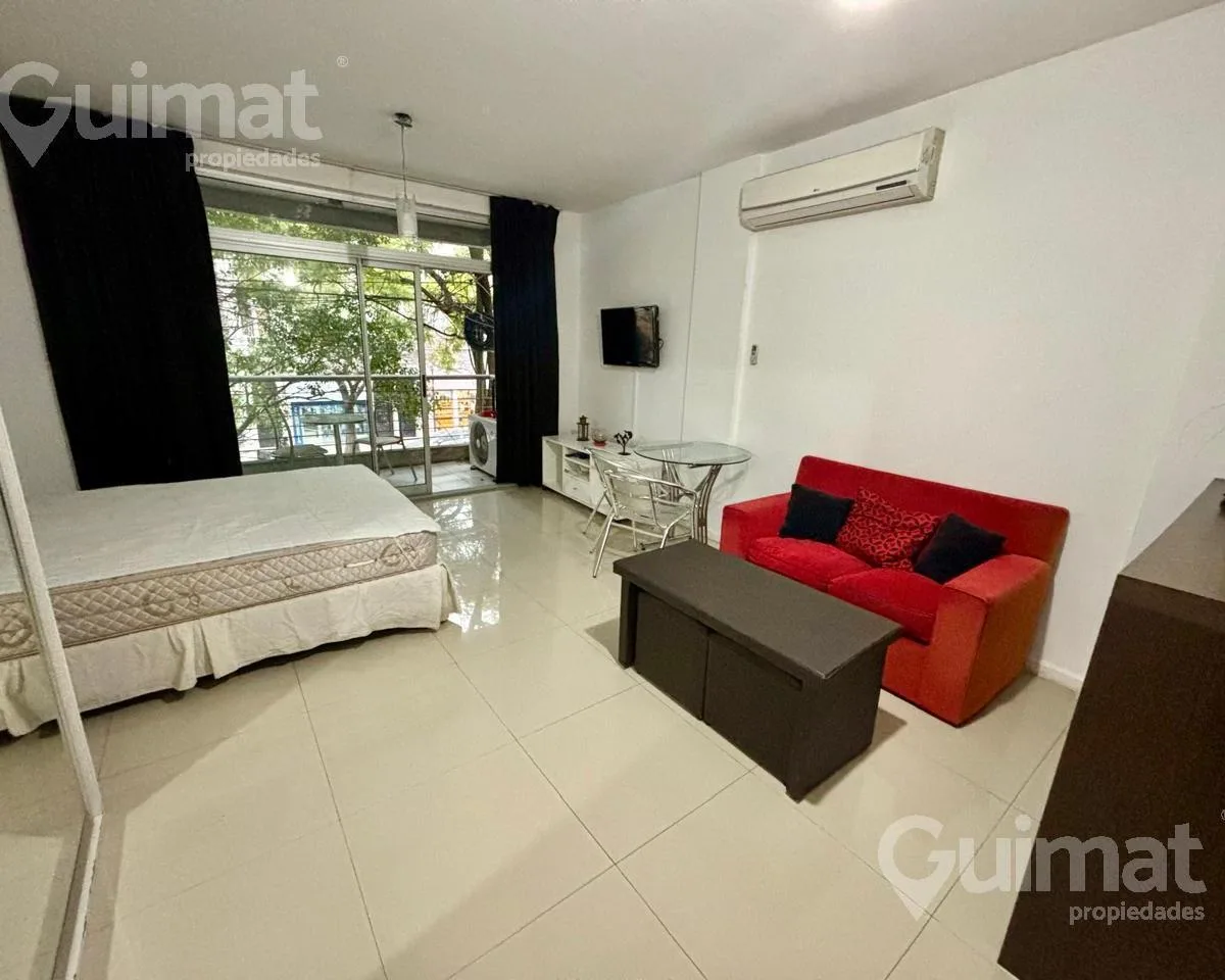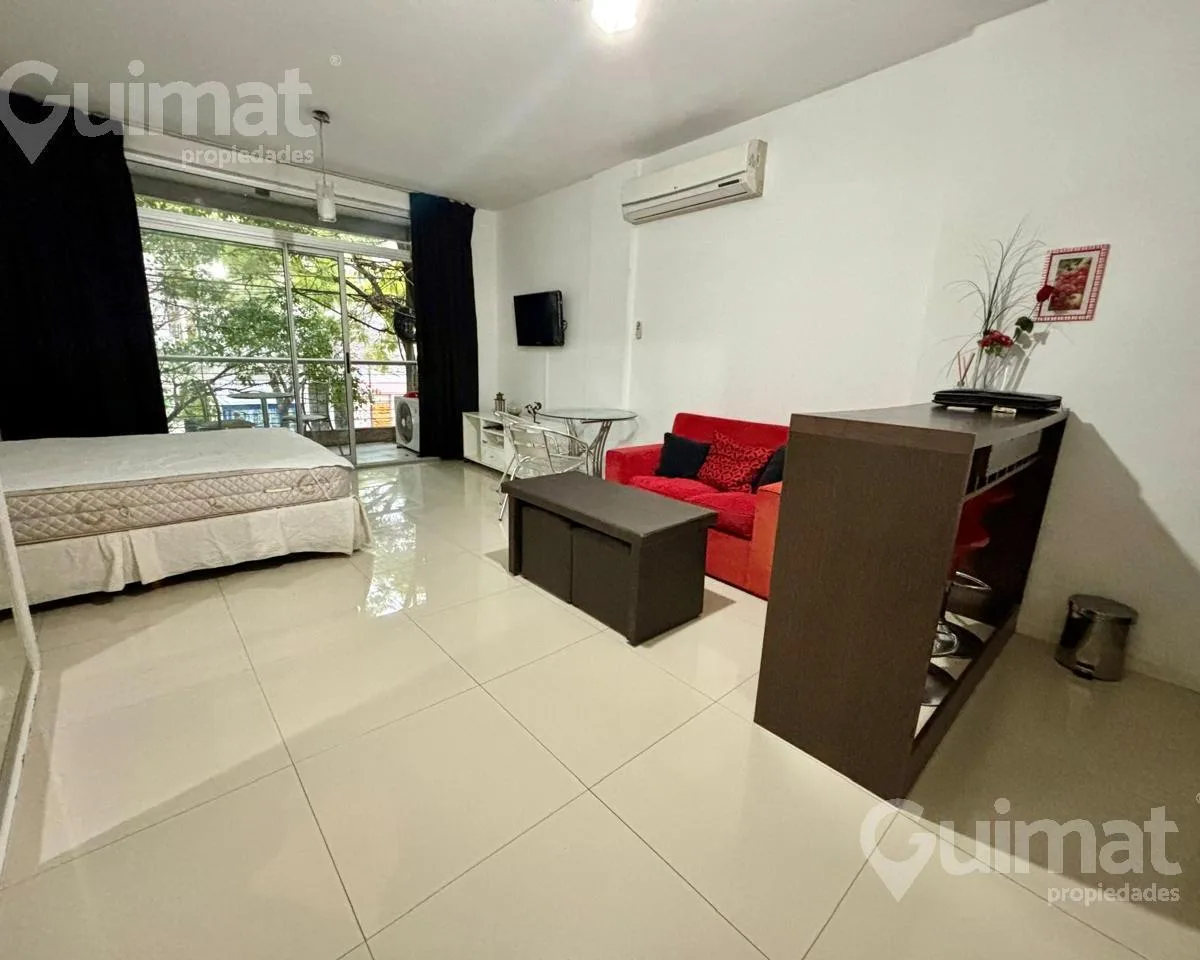 С меблированной квартире-студии площадью не указаны, с балконом на улицу, в Almagro. Временная аренда рассчитана на 2 человека. В здании есть laundry, бассейн и общая гостиная для жильцов (SUM). Стоимость: $650.000; коммунальные платежи здания, вода и AYSA включены, отдельно оплачиваются электричество и интернет. Экспенсы: около $150.000. Транспорт: автобусы 19, 36, 90, 92, 99, 106, 109, 127, 140, 151, 160, 168.