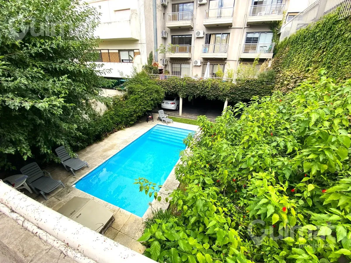 Квартира-студия площадью monoambiente с возможностью перепланировки, встроенный шкаф вдоль стены, интегрированная кухня и отдельная ванная с большим окном. Балкон выходит во двор (con trafrente), окна на внутренний двор и указана открытая видимость. В доме есть laundry, зона гриля, общая гостиная для жильцов и бассейн. Разрешено использование под профессиональные цели; в описании указано, что до Av. Córdoba две улицы. (Закреплённое) парковочное место под навес возможно за $100.000.