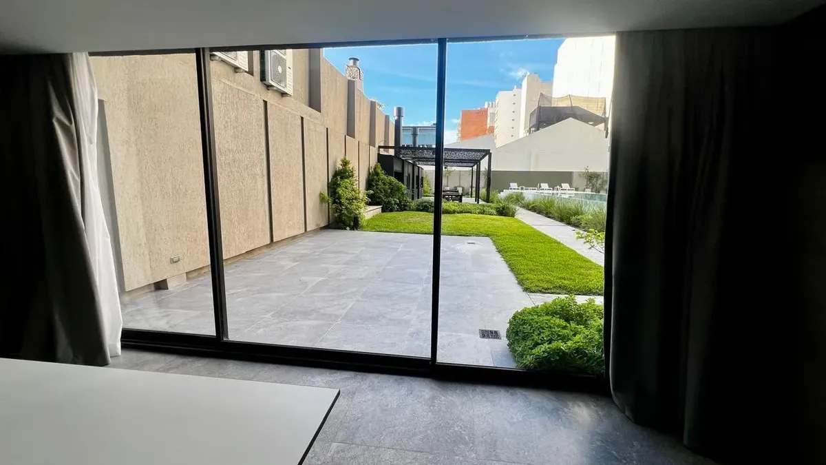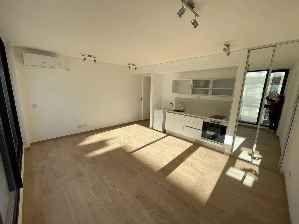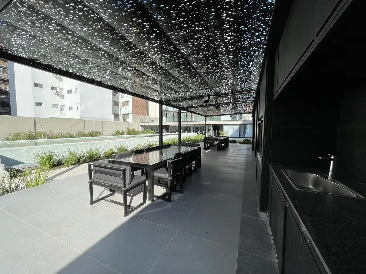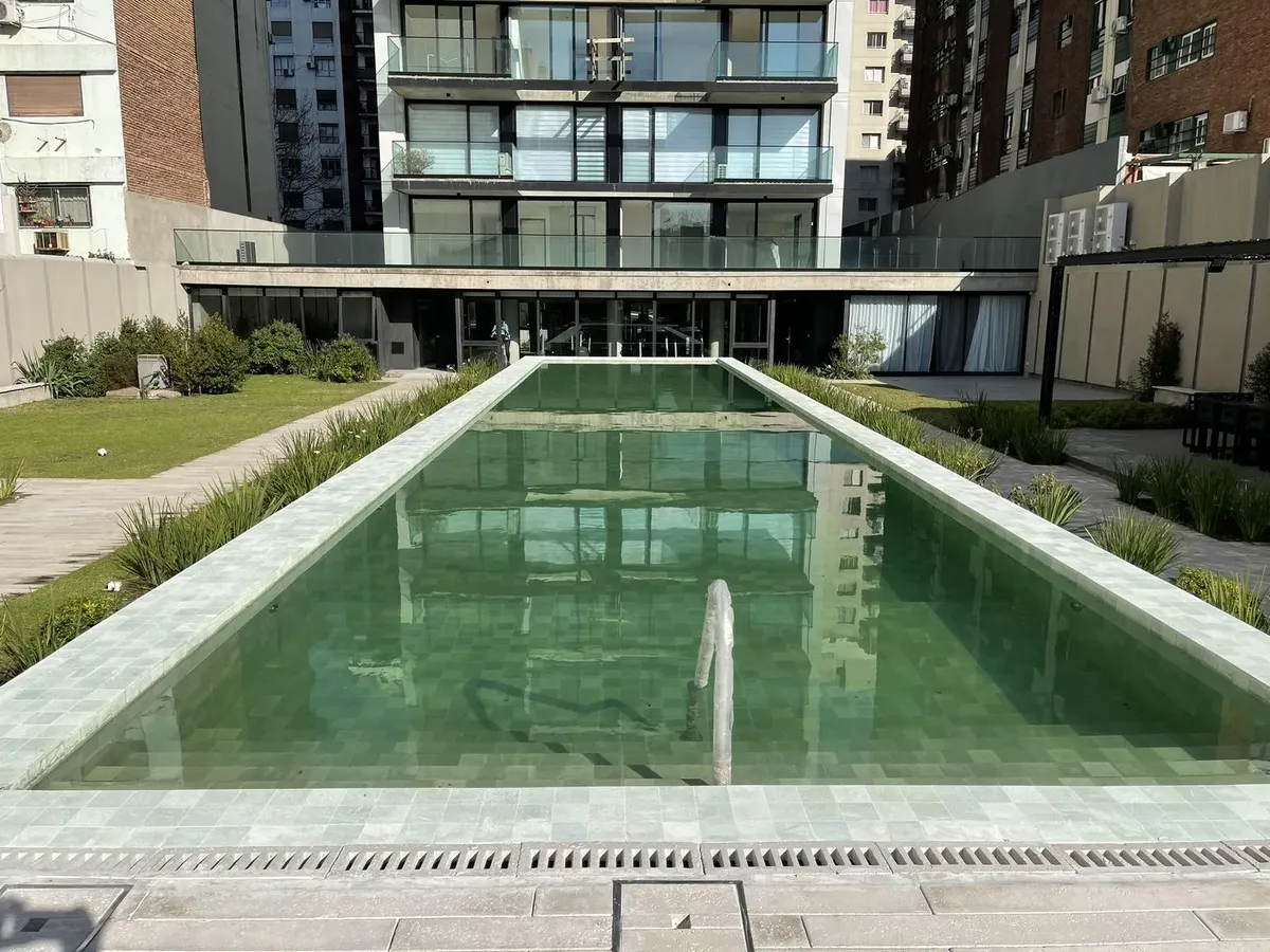 Квартира-студия площадью на 12-м этаже в Almagro, новая (никто не жил), с балконом во внешнем периметре. Кухня интегрирована, есть отдельная ванная комната. Установлены стеклопакеты DVH, индивидуальное радиаторное отопление (losa radiante) и кондиционер холод/тепло. В здании предусмотрены бассейны (открытый полуолимпийский и крытый с подогревом), оборудованный тренажёрный зал, общая гостиная для жильцов (SUM), зоны гриля на открытом воздухе, парк, прачечная и охрана 24 часа. Коммунальные платежи