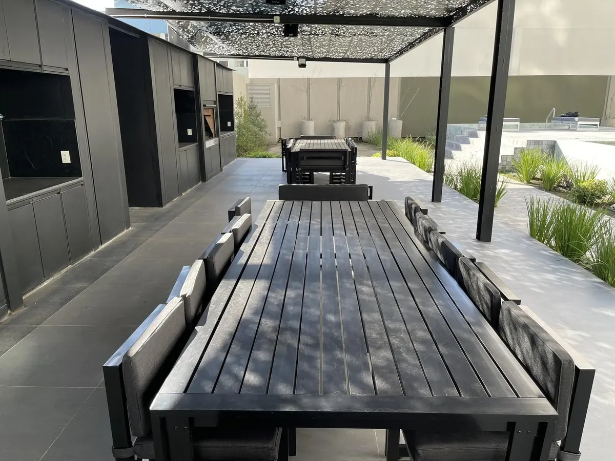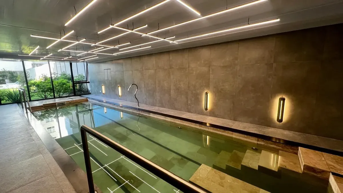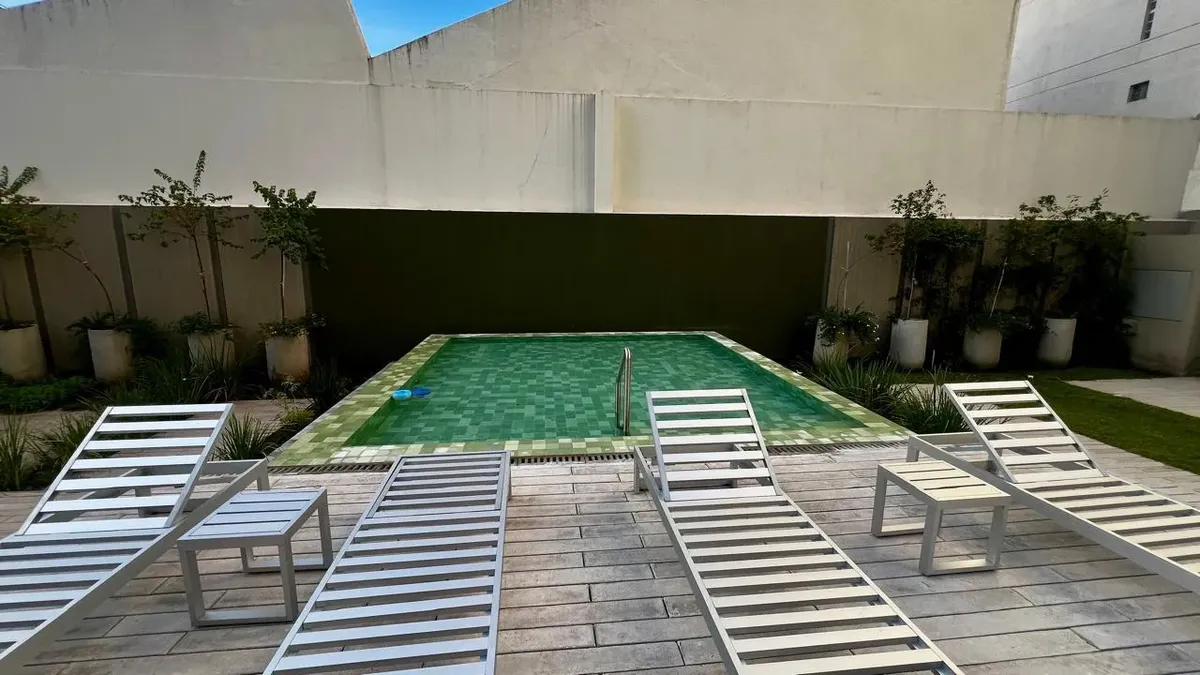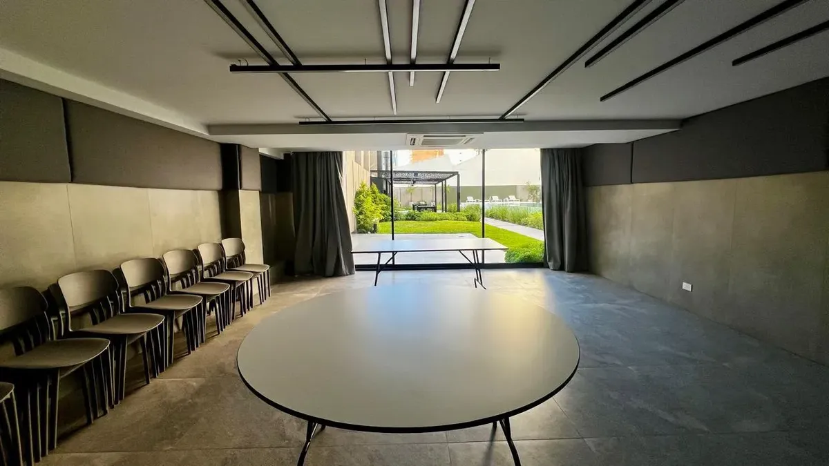 Квартира-студия площадью на 12-м этаже в Almagro, новая (никто не жил), с балконом во внешнем периметре. Кухня интегрирована, есть отдельная ванная комната. Установлены стеклопакеты DVH, индивидуальное радиаторное отопление (losa radiante) и кондиционер холод/тепло. В здании предусмотрены бассейны (открытый полуолимпийский и крытый с подогревом), оборудованный тренажёрный зал, общая гостиная для жильцов (SUM), зоны гриля на открытом воздухе, парк, прачечная и охрана 24 часа. Коммунальные платежи