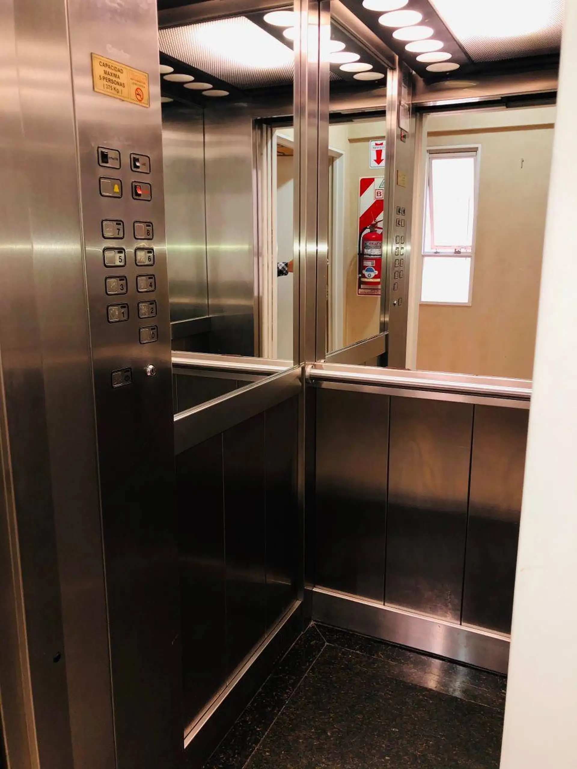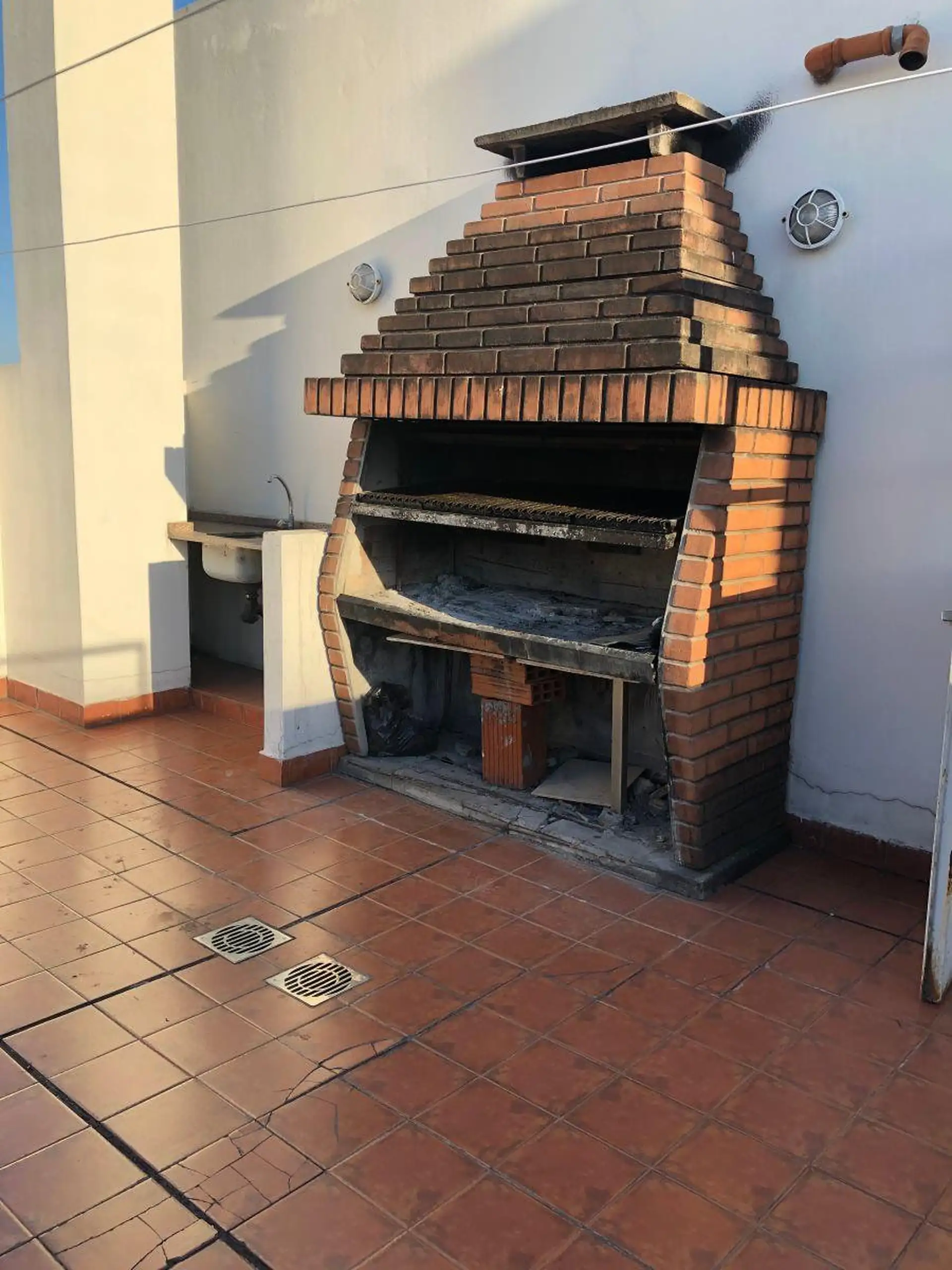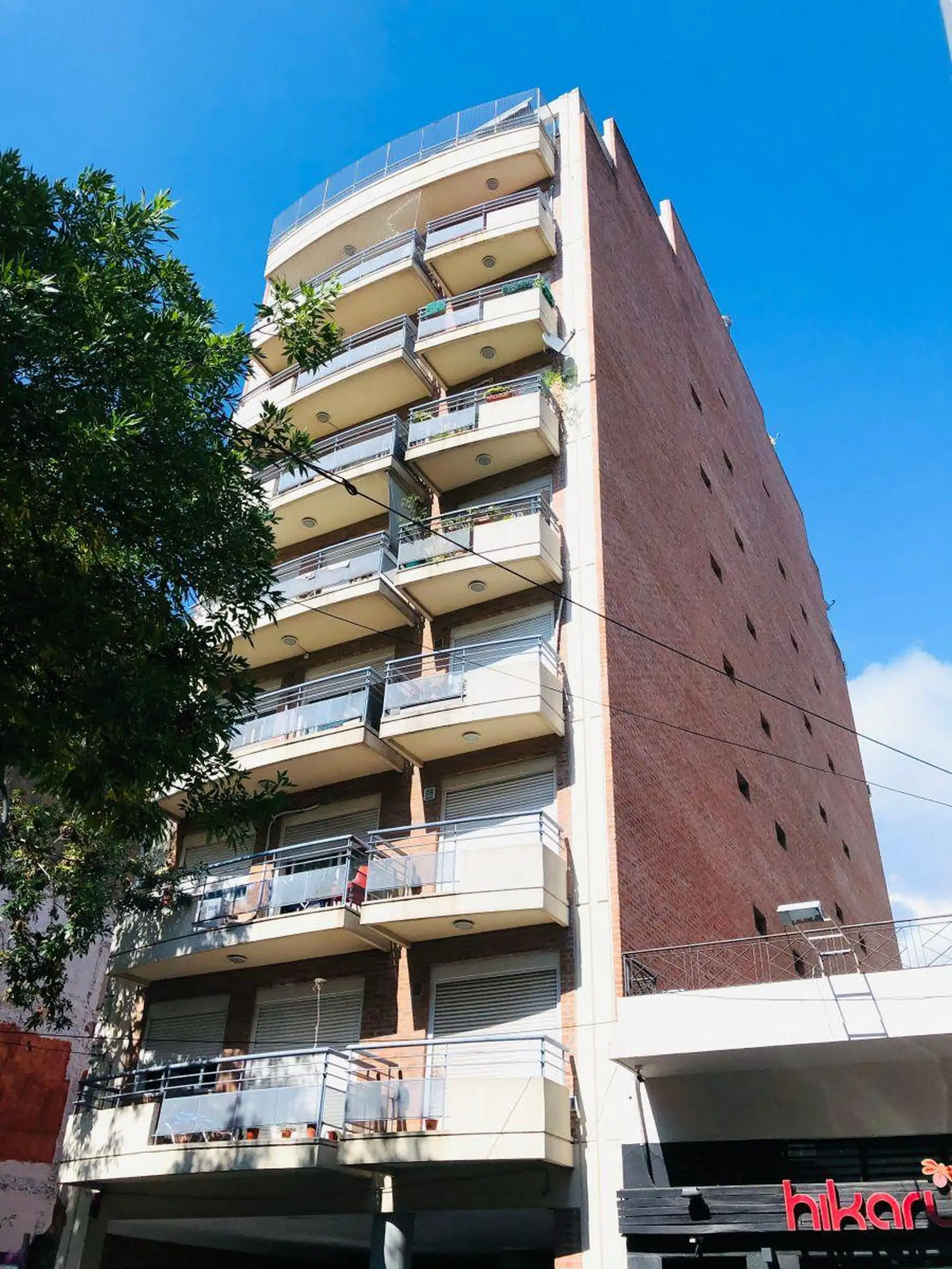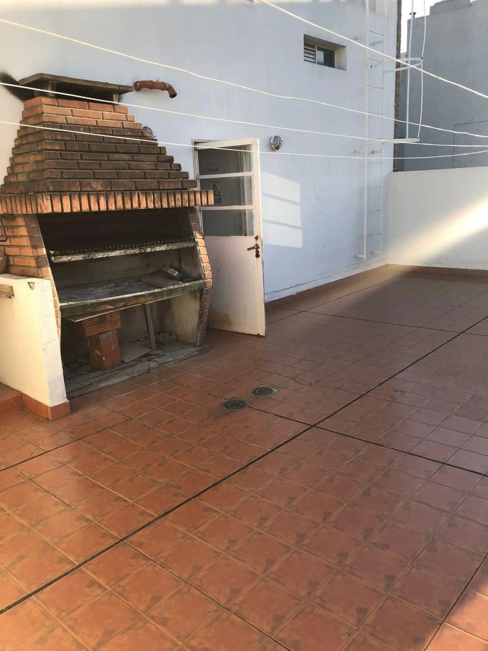 Квартира-студия с окнами во двор (contrafrente) и выходом на балкон. Внутри предусмотрены полноценная ванная, полуинтегрированная кухня с отдельным размещением, разделённым барной стойкой-подсобной зоной, и место для холодильника. Установлены встроенный шкаф с двухстворчатой зеркальной дверцей, паркетные полы; горячая вода — централизованная через котёл. Квартира сдаётся с покраской в белый цвет; в здании есть зона гриля (parrilla).