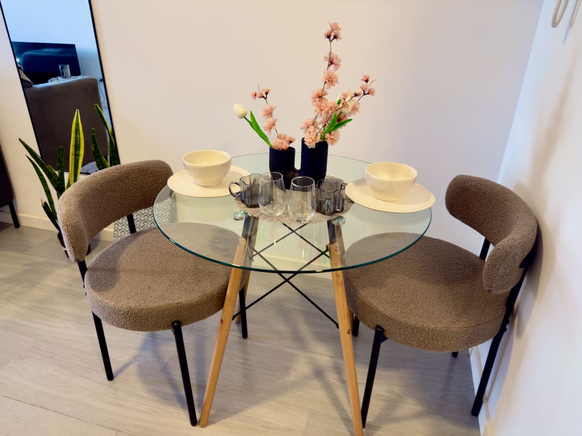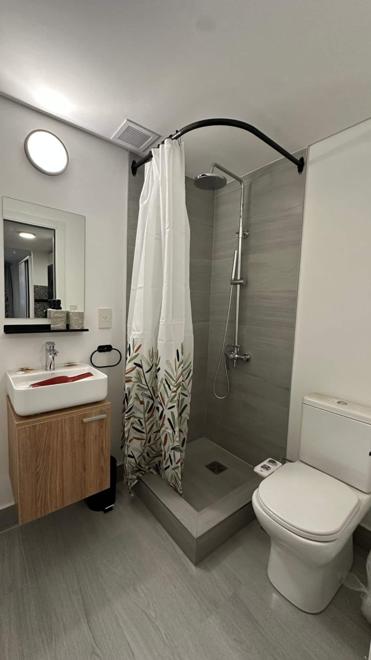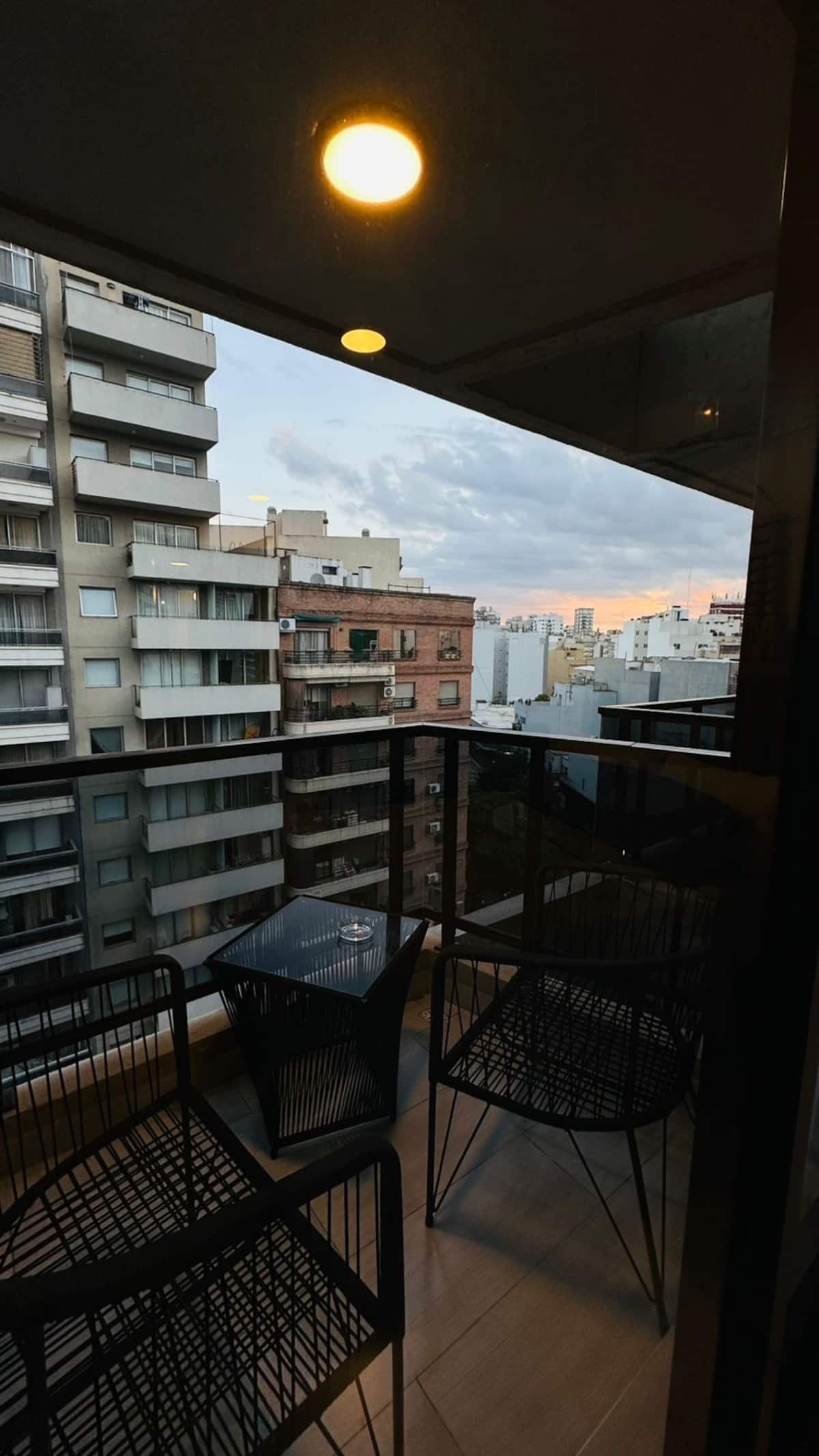 Квартира-студия на 9-м этаже в Palermo, с мебелью. Установлены холодильник Samsung, кондиционер и стиральная машина, в зоне гостиной телевизор TCL ULED 43” с поворотным креплением. В квартире 2 спальных места: кровать с матрасом Serta и раскладной односпальный диван-кровать. На кухне есть 2-конфорочная инфракрасная стеклокерамическая плита, большой аэрогриль на столешнице, тостер, кофеварка, чайник. В ванной угловой душ, фен, утюг и место для хранения; туалет с встроенным биде. Предусмотрены мес
