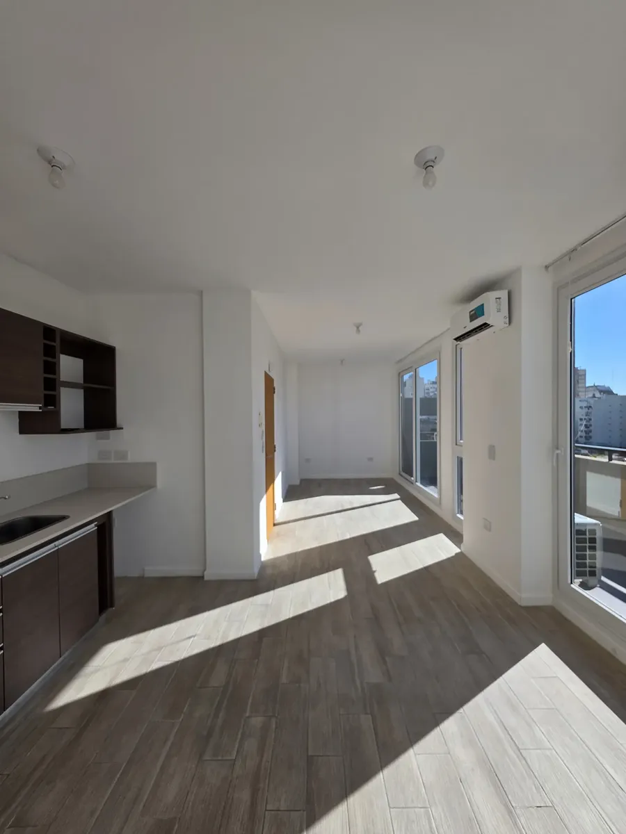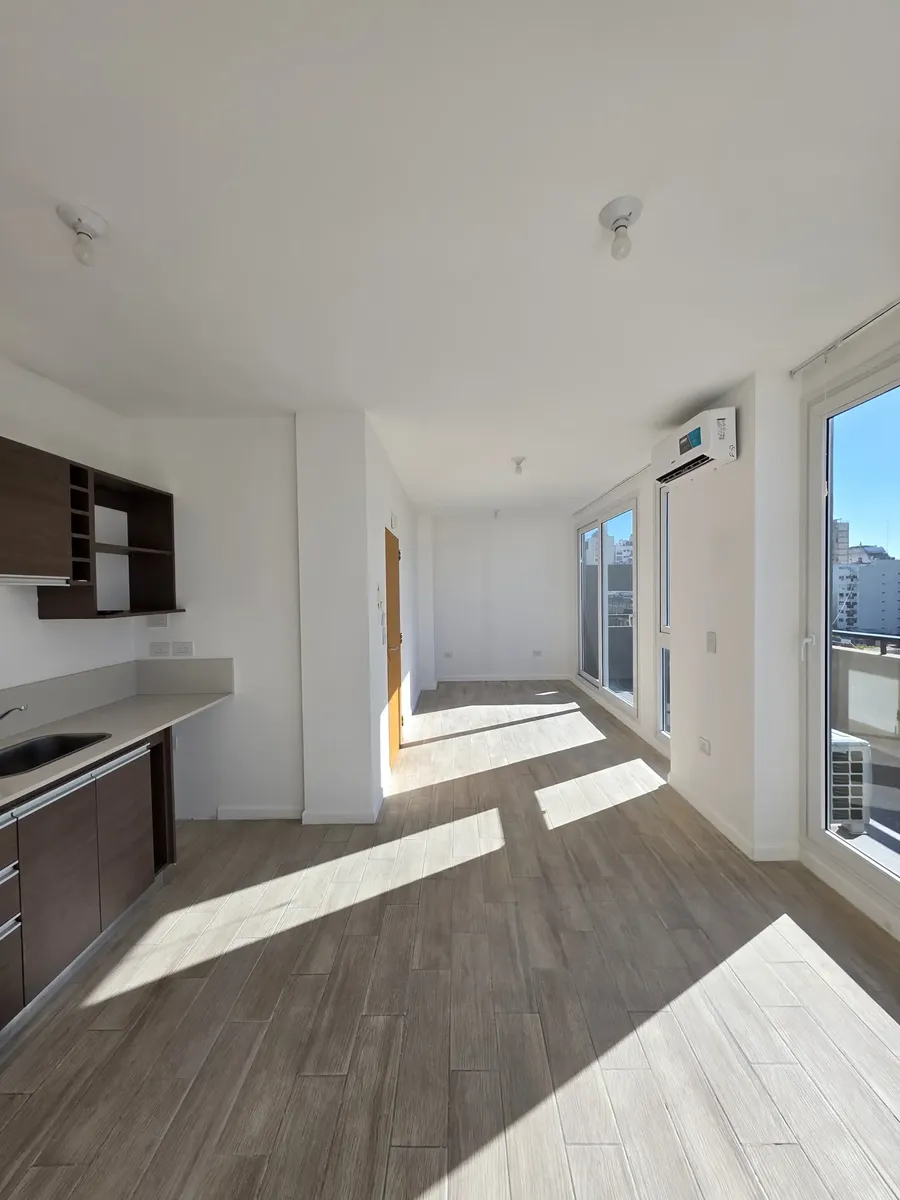 Квартира-студия в аренду в Almagro, 42 m². Есть балкон-терраса. В помещении отдельная кухня и полностью оборудованная ванная комната. В здании предусмотрены laundry и SUM. Стоимость аренды: $650.000 плюс расходы; коммунальные платежи здания — около $118.000. Адрес: Palestina 500.
