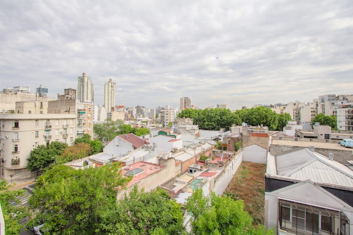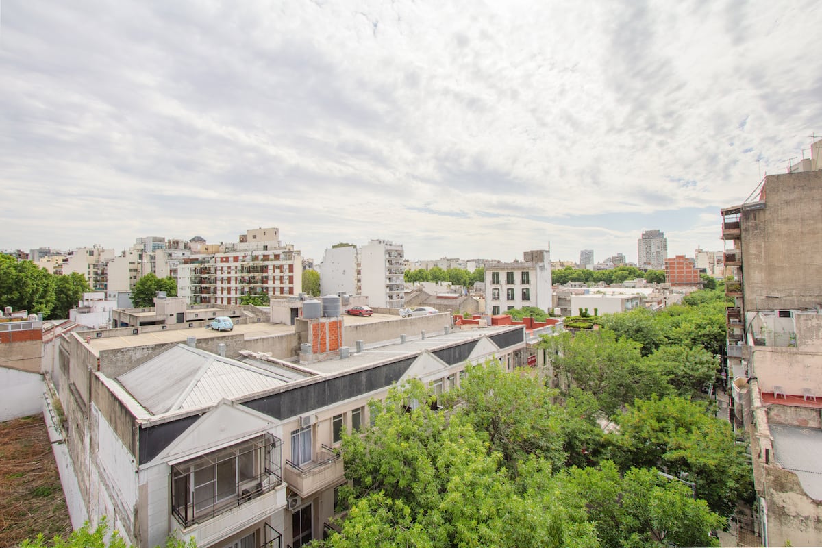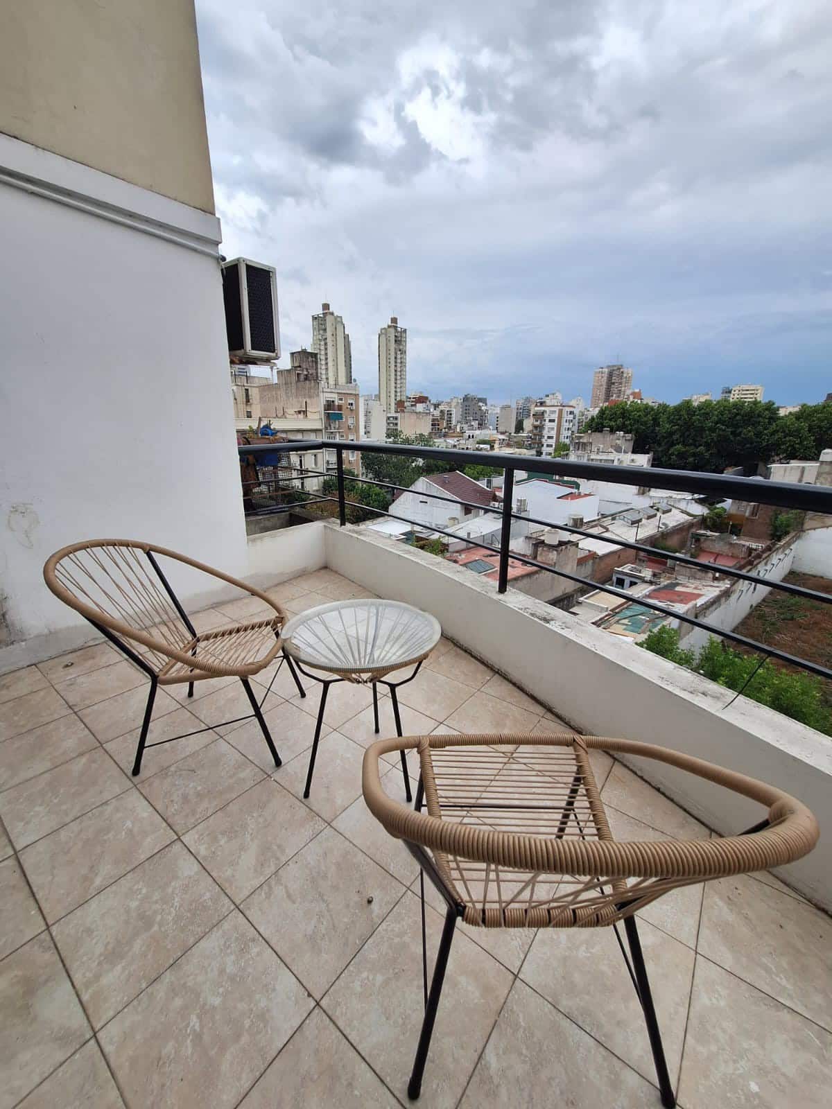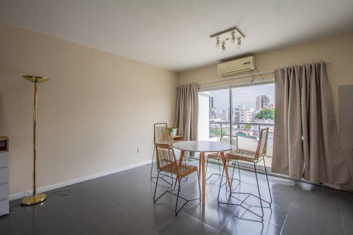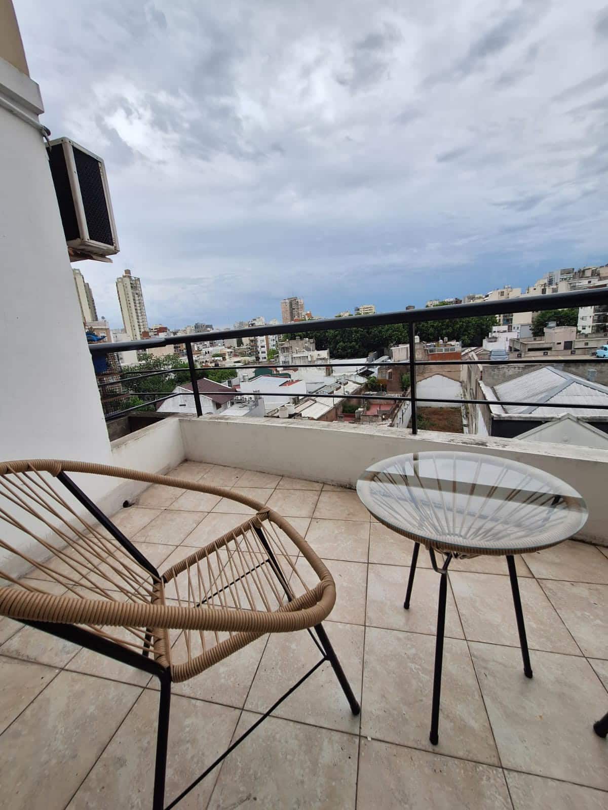 Квартира-студия площадью не указана, с террасой и видом. Окна выходят на террасу; в студии есть двуспальная кровать, обеденная зона, оборудованная кухня и полноценная ванная комната. В здании предусмотрена прачечная (laundry). Квартира оборудована и рассчитана на проживание 1–2 человек.