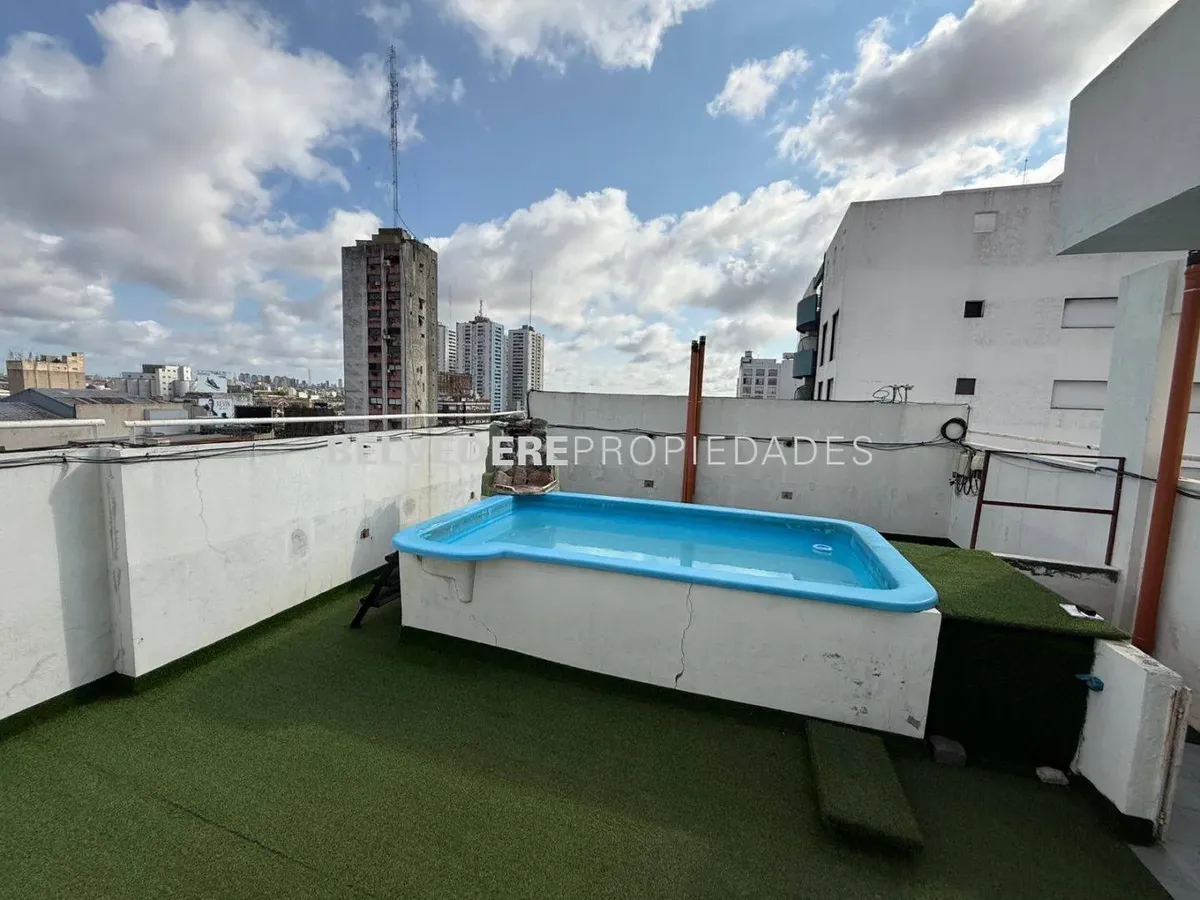 Квартира-студия в аренду в центре Avellaneda, на высоком этаже, окна во двор. В здании есть общая гостиная для жильцов (SUM) и бассейн. Указан адрес: Mariano Acosta 129.