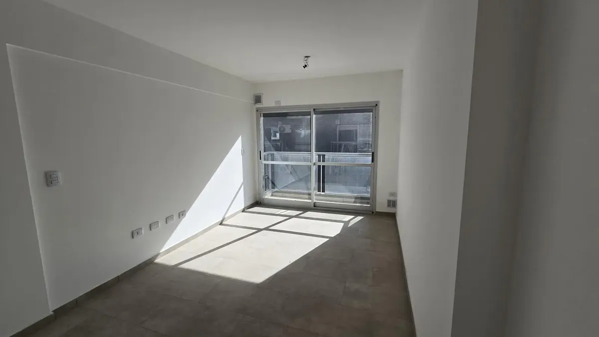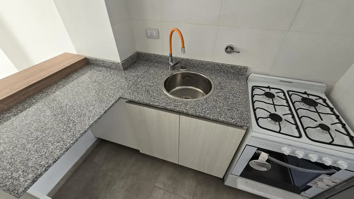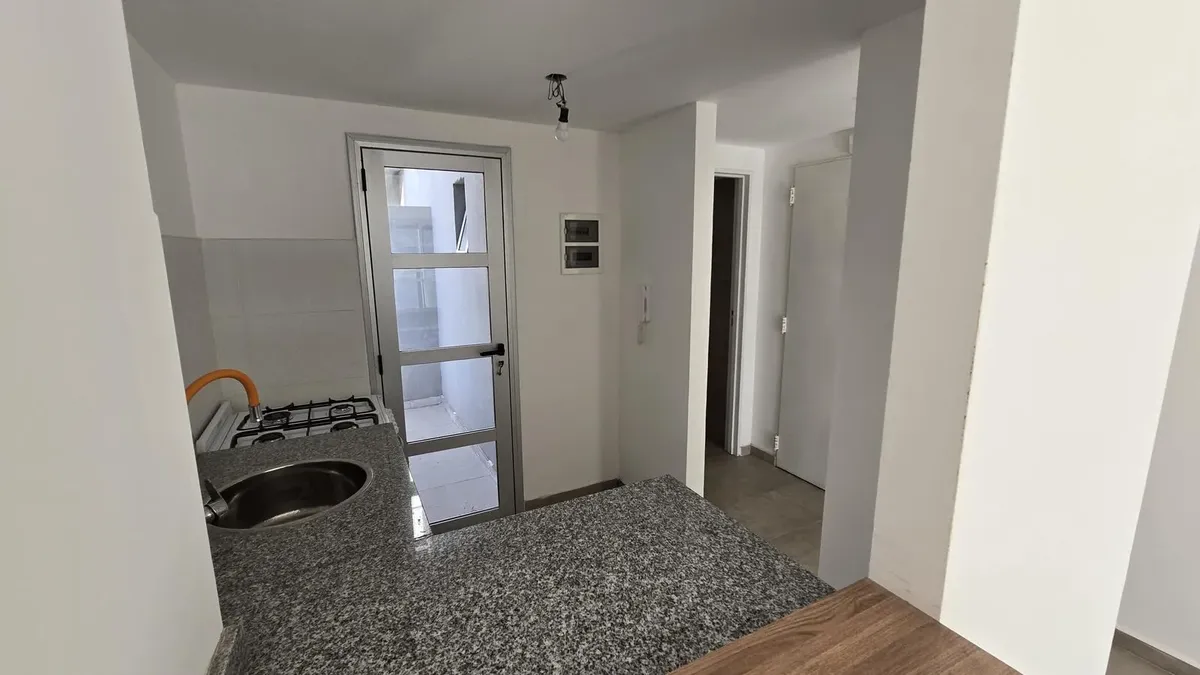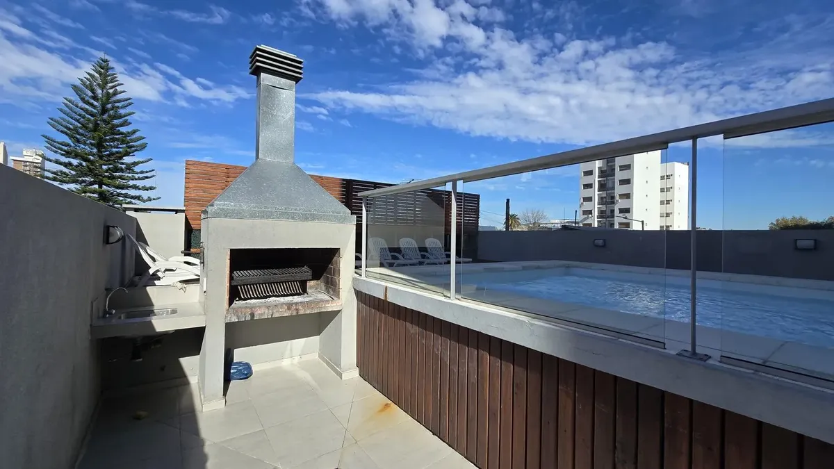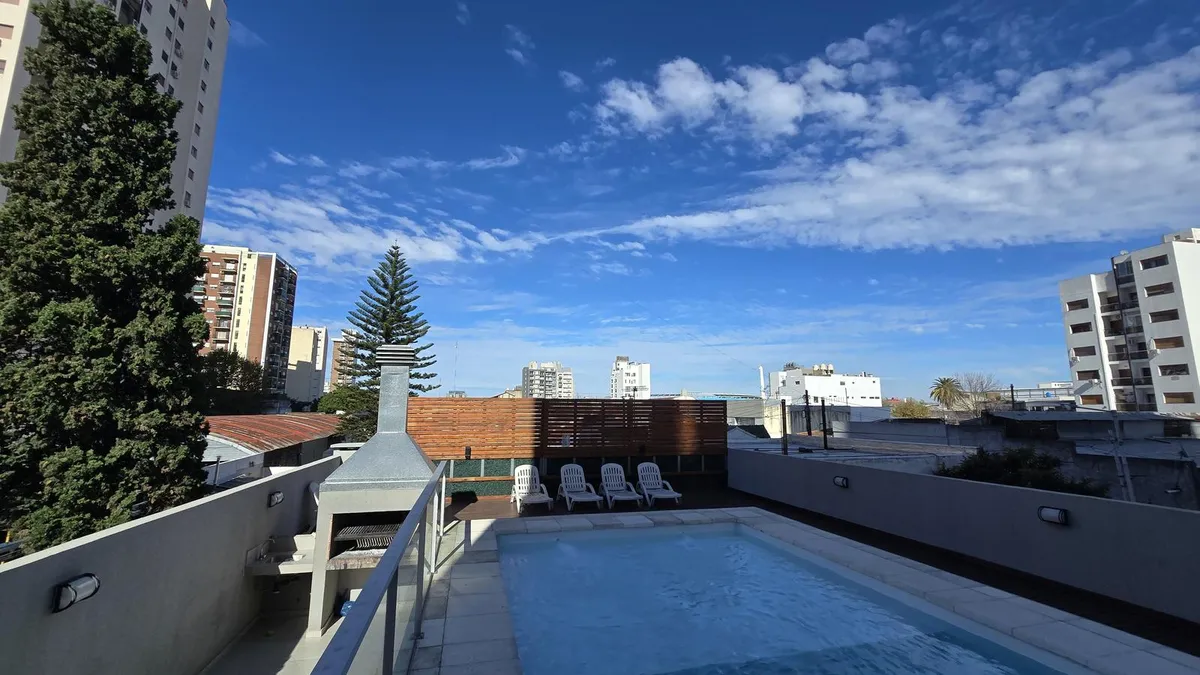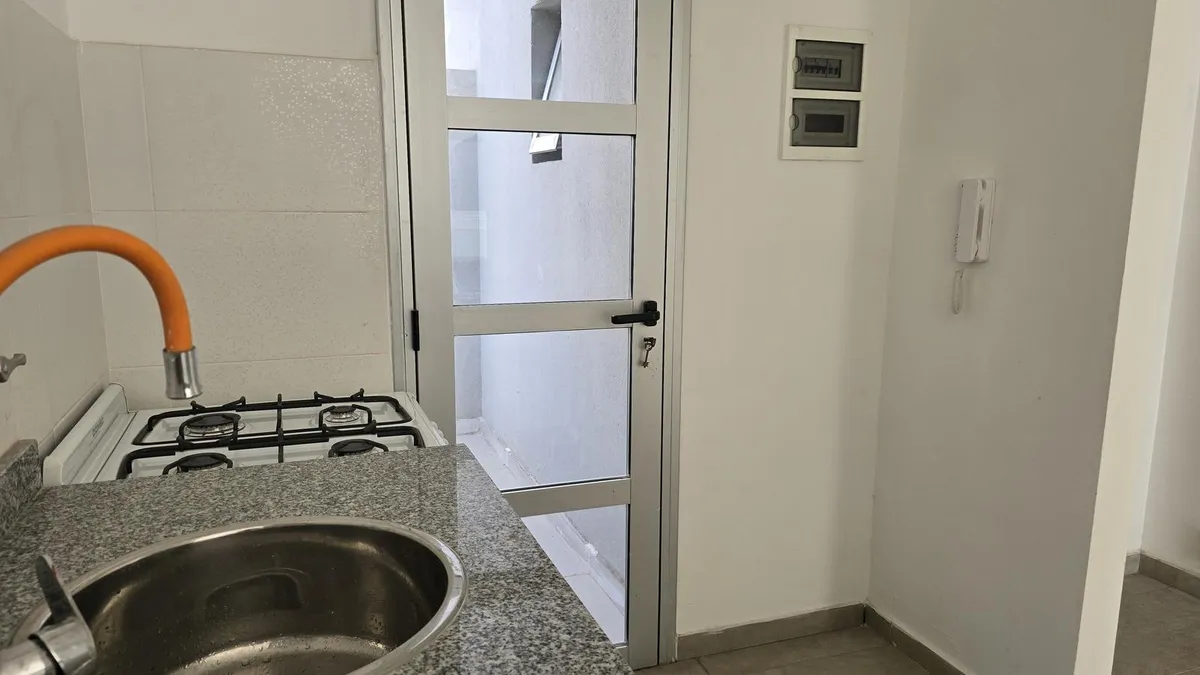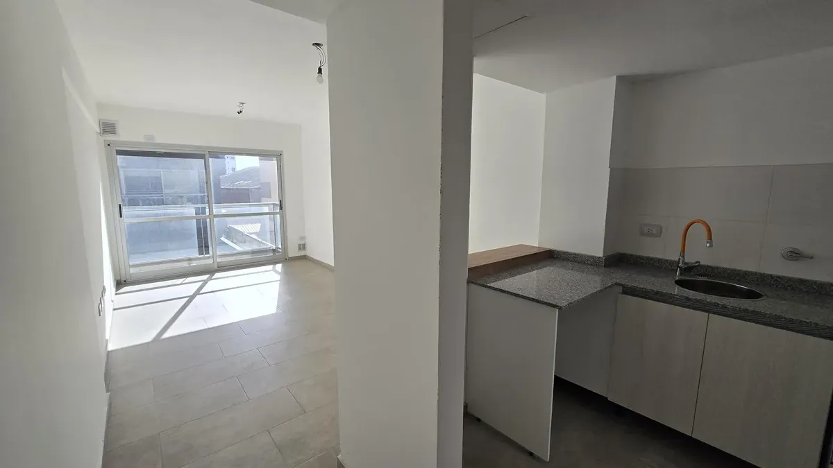 Квартира-студия в Avellaneda, новая (никто не жил), с балконом. В описании указаны кухня, интегрированная с мебелью, и отдельная ванная комната. Из дома предусмотрены бассейн, зона гриля, общая гостиная для жильцов (SUM) и пространство для коворкинга; (закреплённые) парковочные места и кладовые указаны как опциональные. Условия аренды: договор на 36 месяцев, квартальная индексация по IPC, залог-страховка аренды или гарантия собственника, оплата за первый месяц и депозит.